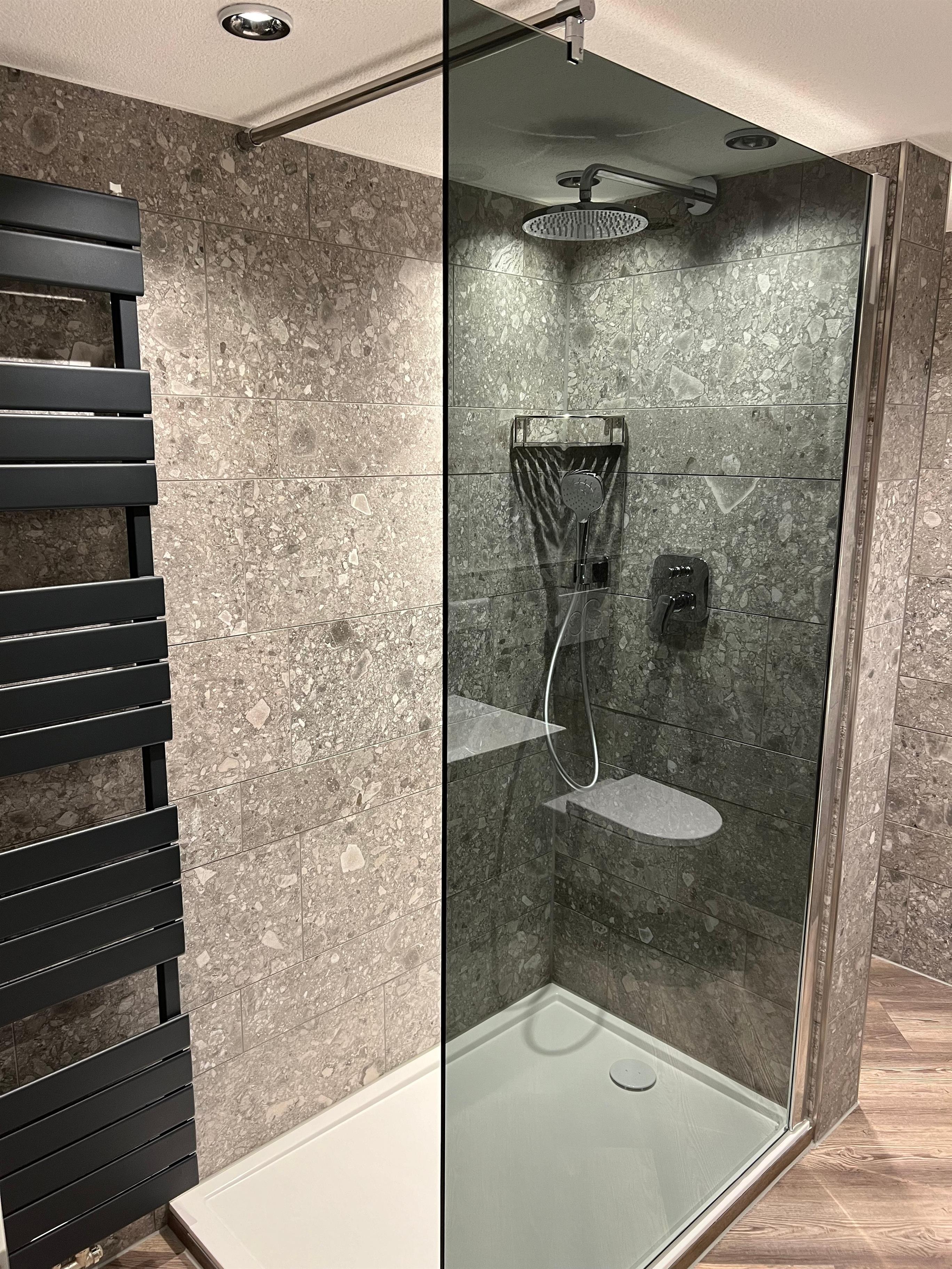 Das Badezimmer ist modern gestaltet mit einer Walk-in Dusche. Zum abstellen eines PKW's steht ein kostenfreier Stellplatz zur Verfügung.