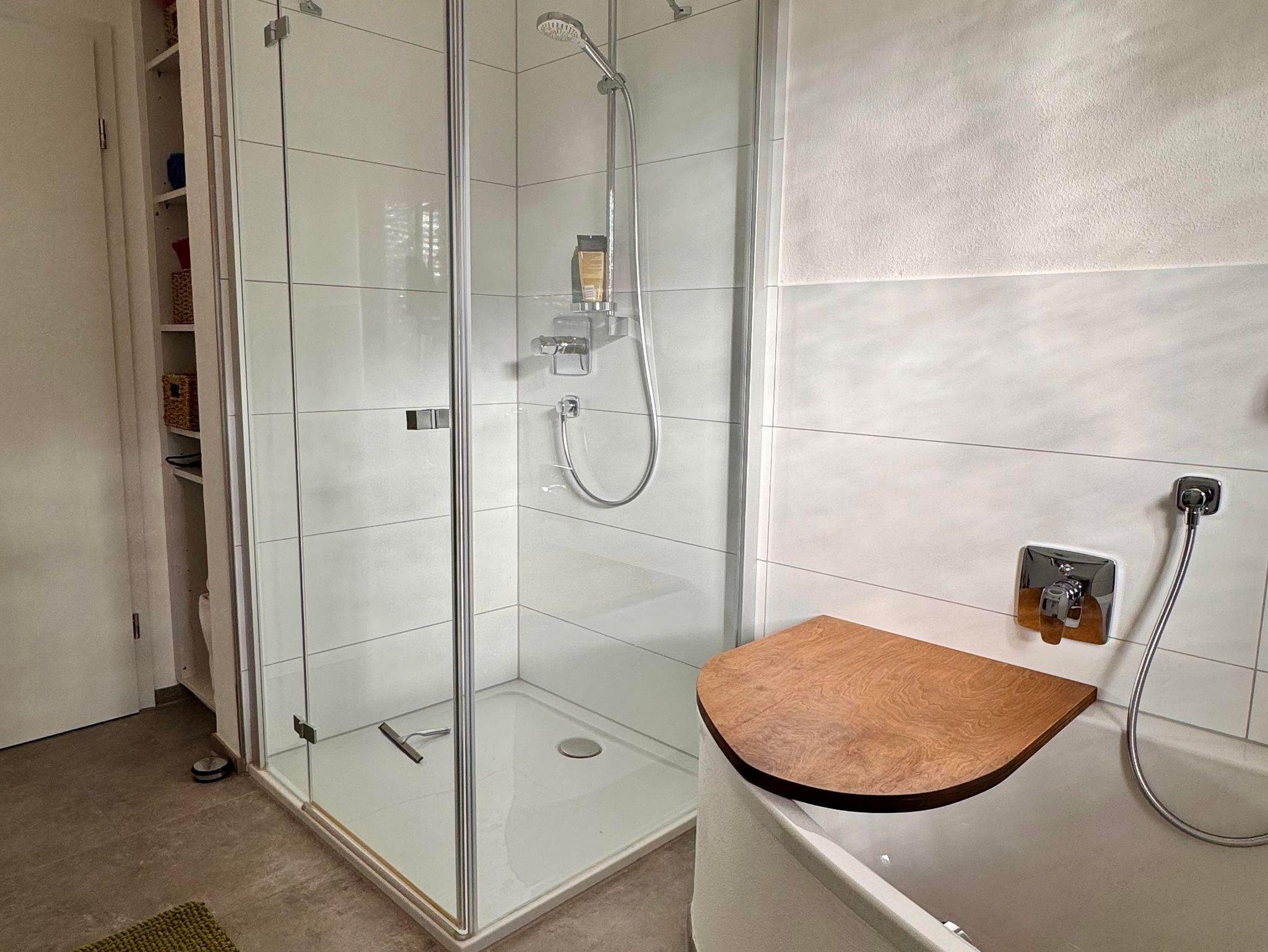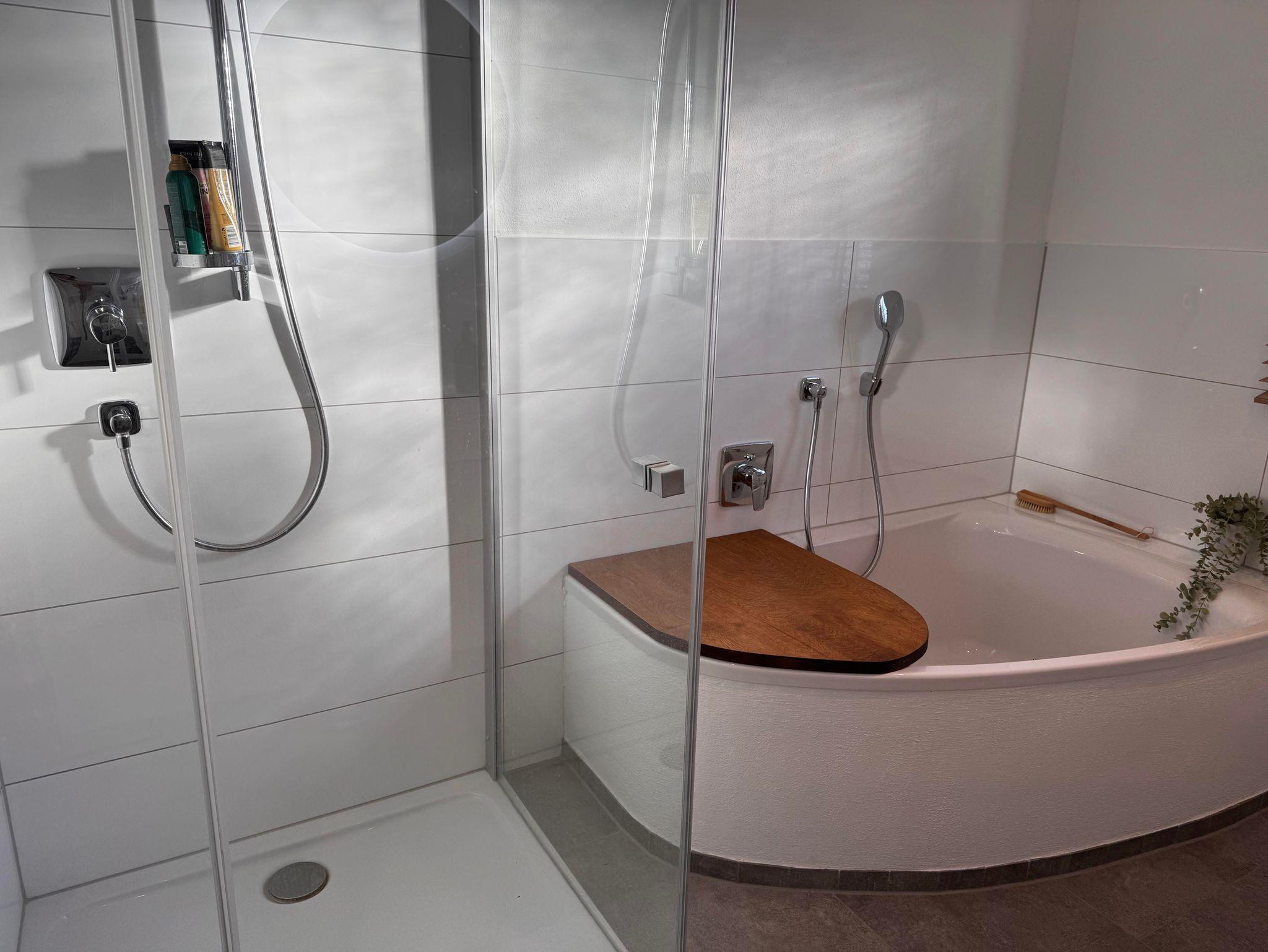 Genießt die Annehmlichkeit einer sehr großen und hellen Wohnung (96 qm) mit einem großen, überdachten Balkon, auf dem ihr die frische Luft und den Blick auf die umliegenden Wälder inhalieren könnt. Die Unterkunft ist hochwertig eingerichtet und bietet alle Annehmlichkeiten, um euren Aufenthalt unvergesslich zu machen - moderne, komplett eingerichtete Küche - hell und mit allen wichtigen Küchengeräten ausgestattet (Miele Backofen und Spülmaschine, Induktionskochfeld von Bora), großer Lebens-Raum (Wohnen, Essen, Kochen), großzügiges Bad mit Badewanne mit extra Dusche, WC und Fussbodenheizung, Gäste-WC mit Fussbodenheizung, 2 Schlafzimmer mit je 1x King-Size-Bett und sowie 1 ausziehbares Sofa im Wohnzimmer. WLAN und Smart-TV sind vorhanden.