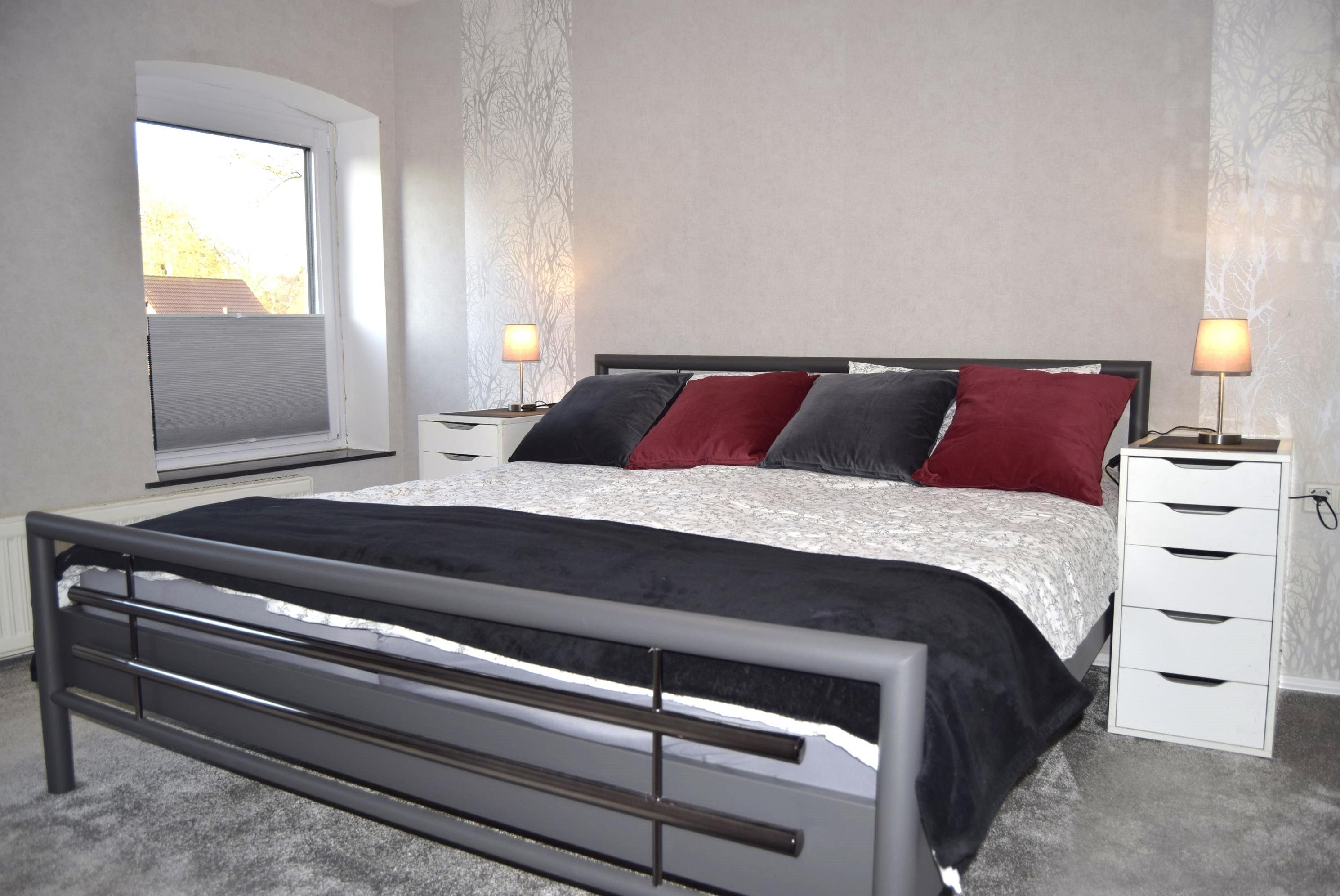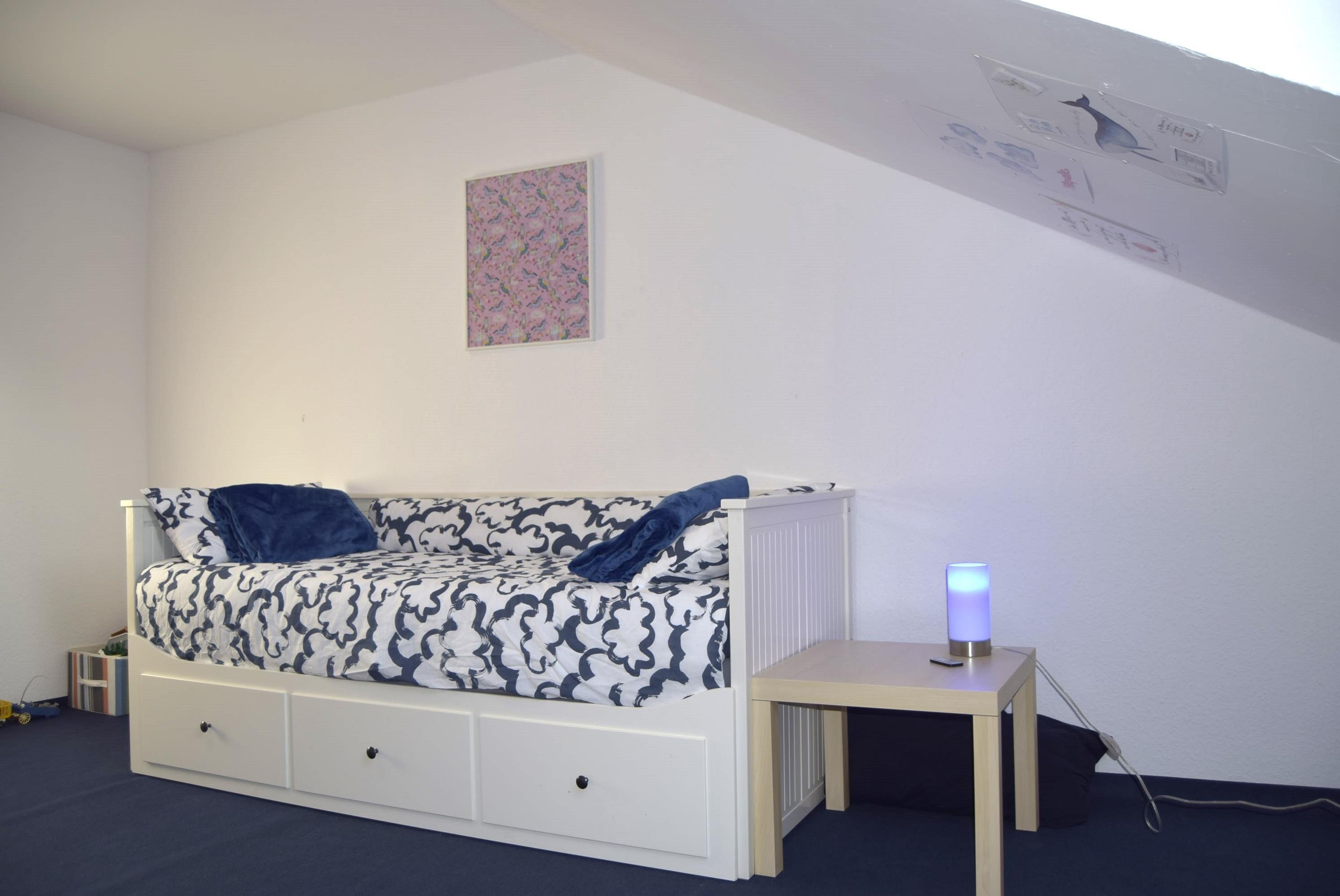 Hier befinden sich zwei Schlafräume. Ein Schlafraum mit Doppelbett sowie ein weiteres Kinderzimmer mit ausziehbarem Einzelbett.