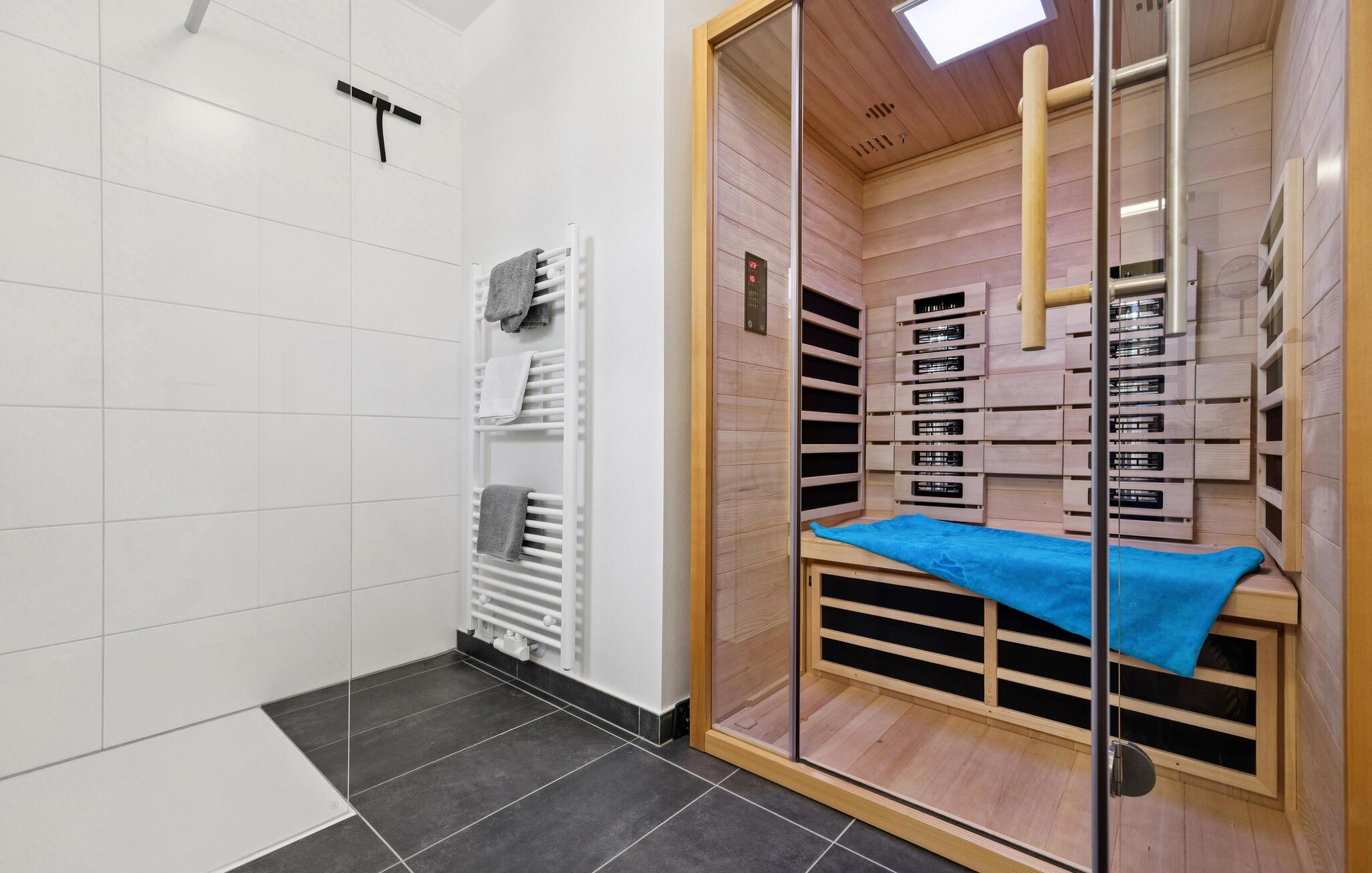 Indkvarteringen har to soveværelser, der begge er kærligt indrettet. Det ene soveværelse har en komfortabel dobbeltseng, mens det andet er møbleret med to enkeltsenge. Begge værelser har også et Smart TV, så I kan nyde jeres yndlingsprogrammer. Wellness-badeværelset kan prale af en bruseniche og en infrarød sauna. Et sted at slappe af og koble fra efter en begivenhedsrig dag.