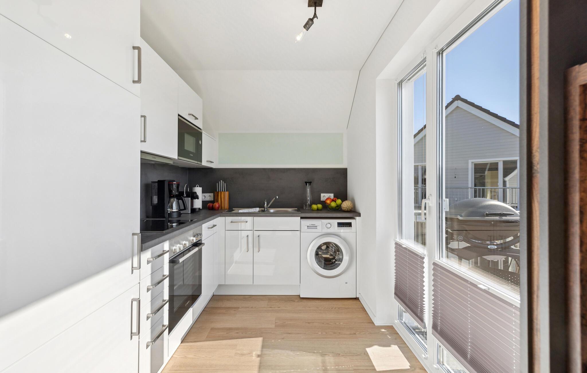 Køkkenet er af højeste standard, fuldt udstyret og klar til kulinariske eventyr. Fra dette område har I adgang til den rummelige balkon, hvor endnu en strandstol og en grill venter på jer ved siden af ??balkonbordet. Her kan I nyde den friske luft under åben himmel og få mest muligt ud af jeres ferie. En anden overdækket balkon kan nås via gangen.