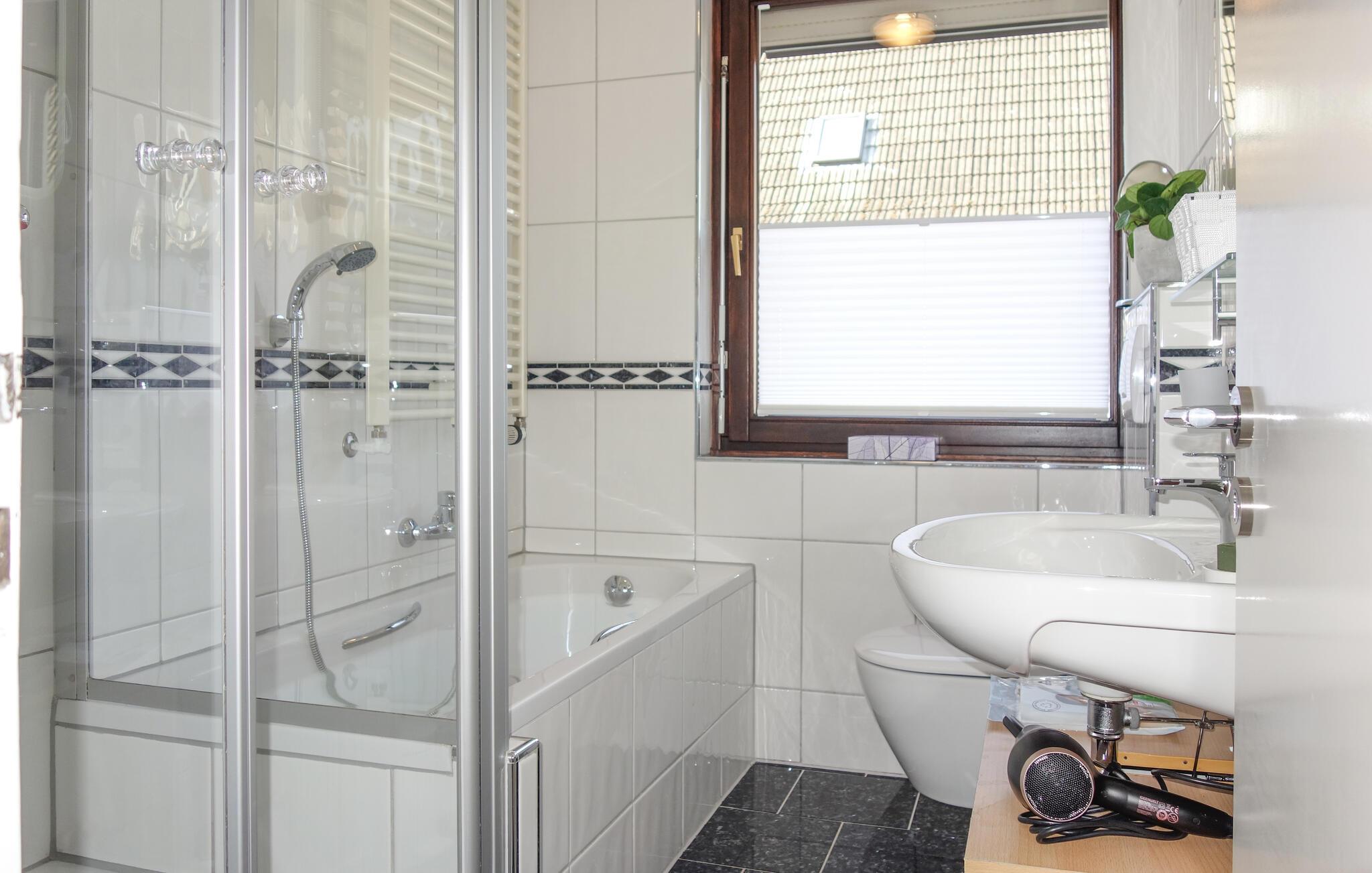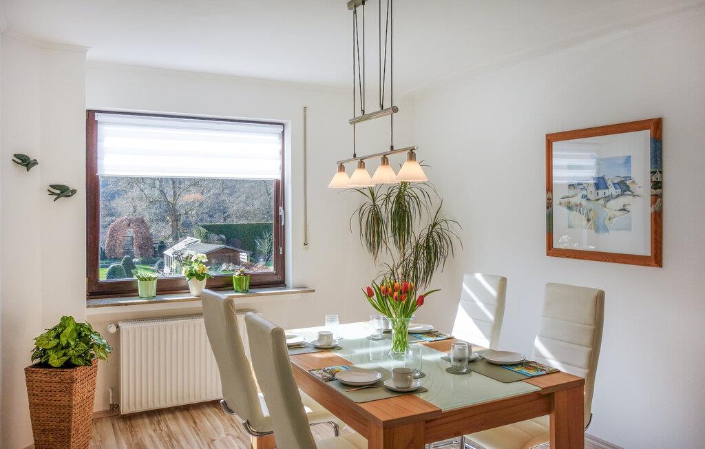 I denne lejlighed får I den bedst tænkelige beliggenhed for en ferie med det helt rette mix af afslapning og spændende udflugter i det sydlige Sauerland. Indretningen fremtræder lyst og komfortabelt og er udsmykket med flere finurlige detaljer, der giver boligen en hjemlig atmosfære, der er rar at være i. Vend tilbage hertil efter en dejlig vandretur og kræs om livretterne i køkkenet, inden I nyder aftensmaden med en smuk udsigt over området.