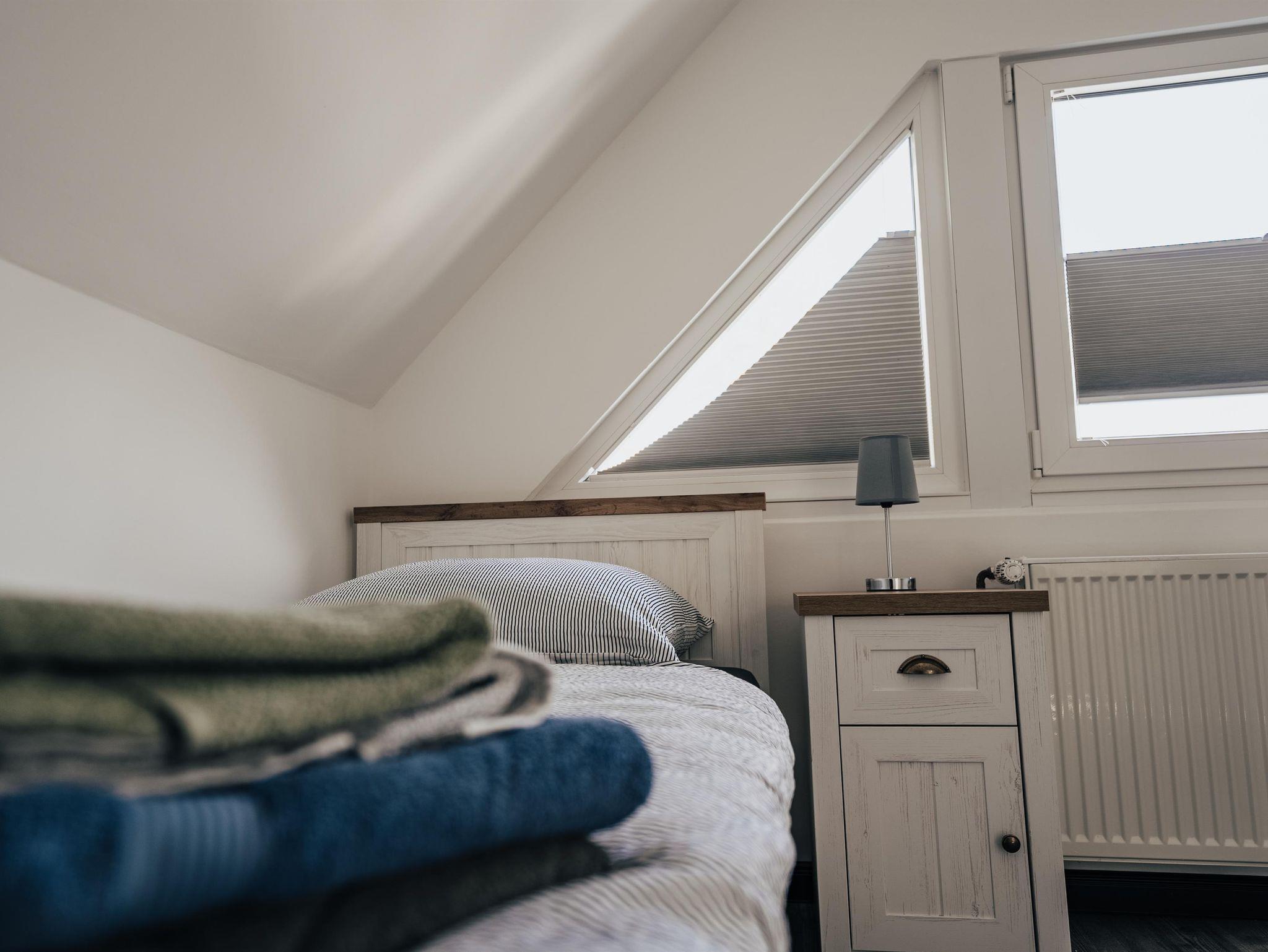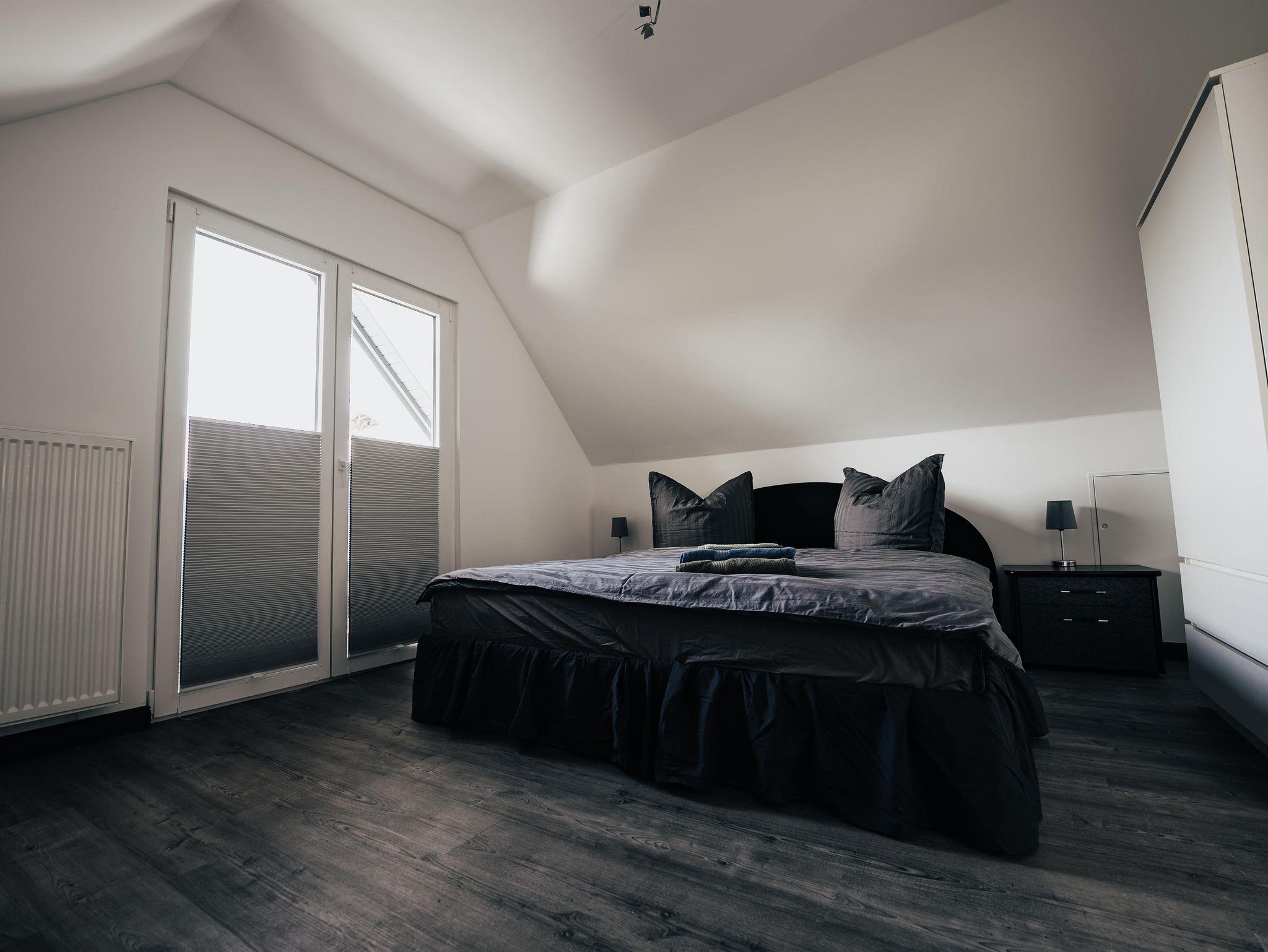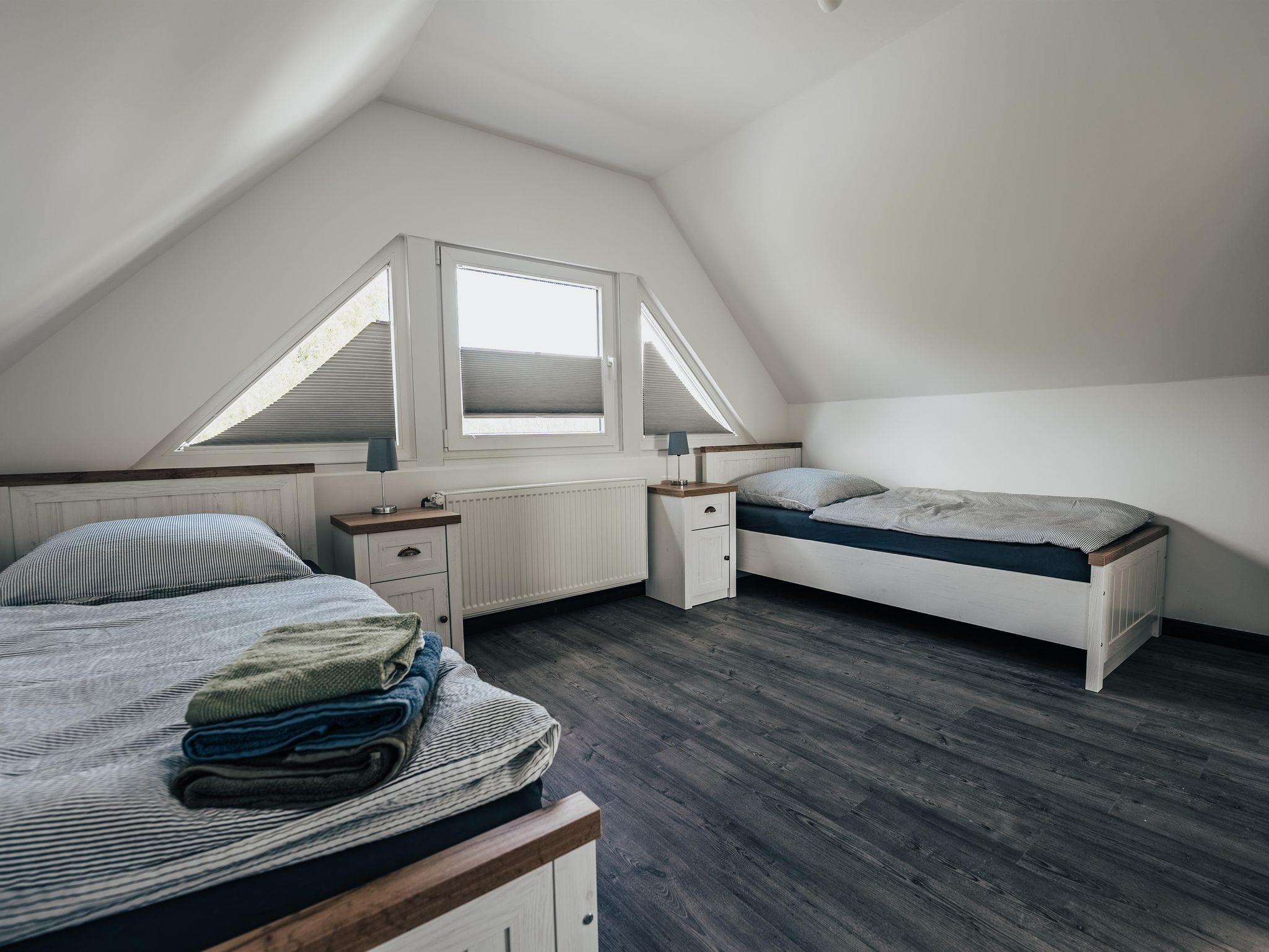 Das hell und modern eingerichtete Ferienhaus bietet ausreichend Platz für 4 Personen. Es verfügt im Erdgeschoss über eine komplett ausgestattete Wohnküche mit Essgelegenheit und ein Bad mit Dusche und WC. Im ersten Stock befinden sich ein Schlafzimmer mit Doppelbett und zusätzlichem Balkon, ein Schlafzimmer mit zwei Einzelbetten sowie ein separates WC.