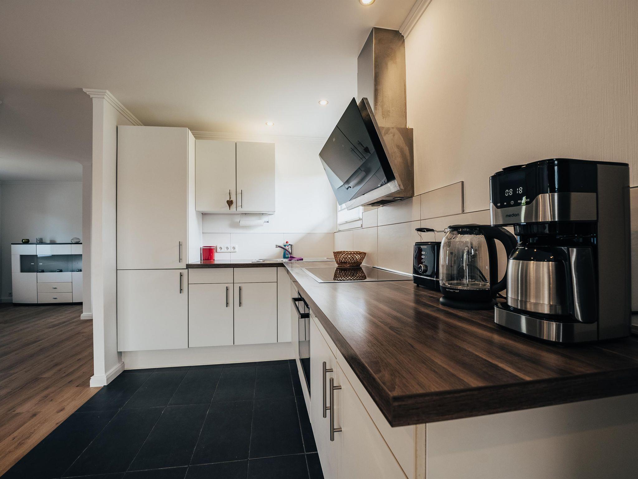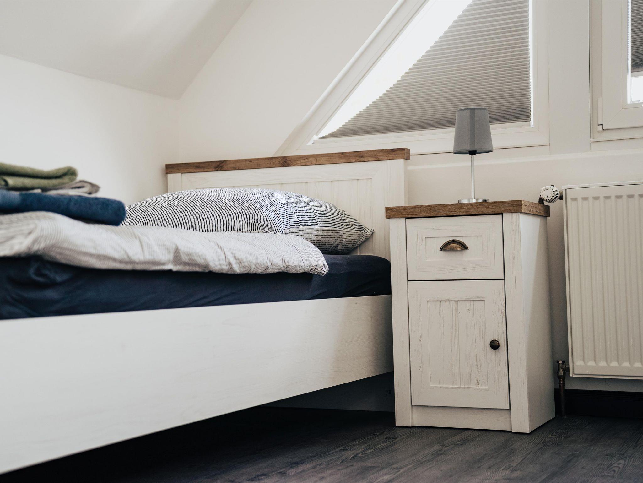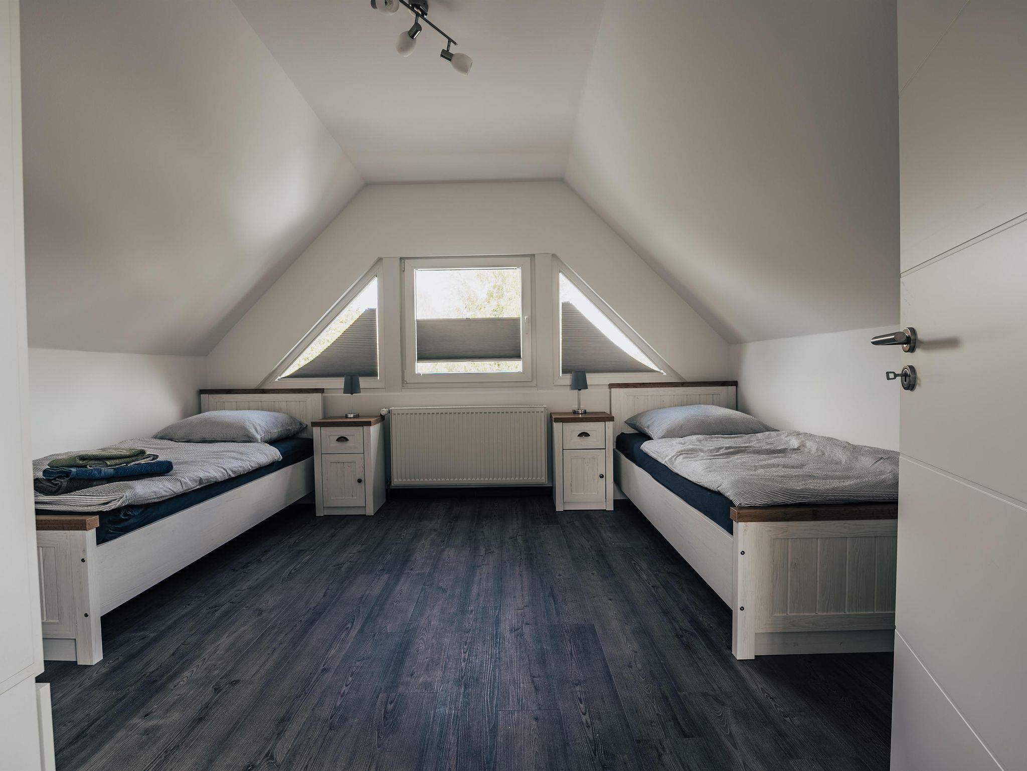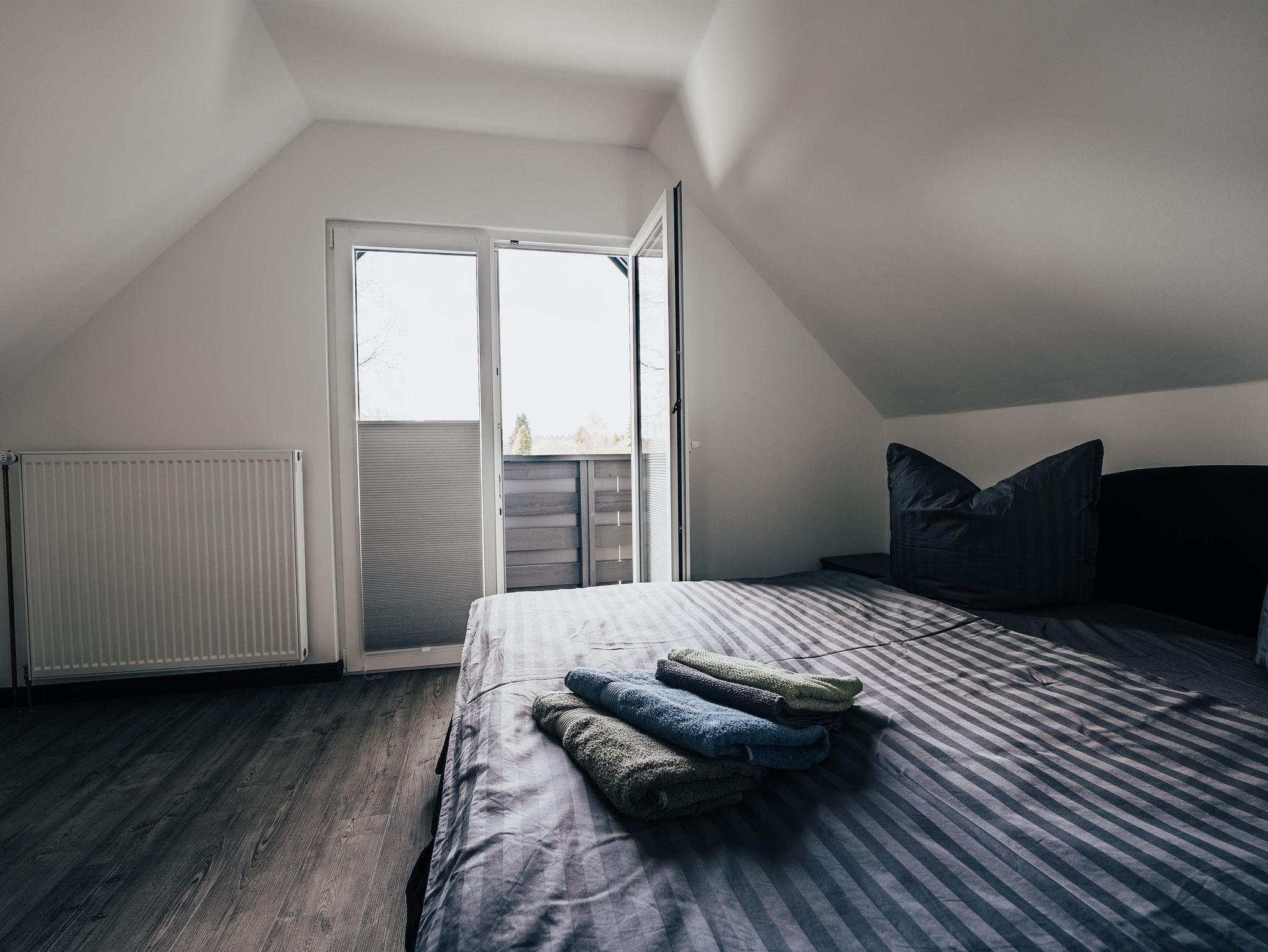 Das hell und modern eingerichtete Ferienhaus bietet ausreichend Platz für 4 Personen. Es verfügt im Erdgeschoss über eine komplett ausgestattete Wohnküche mit Essgelegenheit und ein Bad mit Dusche und WC. Im ersten Stock befinden sich ein Schlafzimmer mit Doppelbett und zusätzlichem Balkon, ein Schlafzimmer mit zwei Einzelbetten sowie ein separates WC.