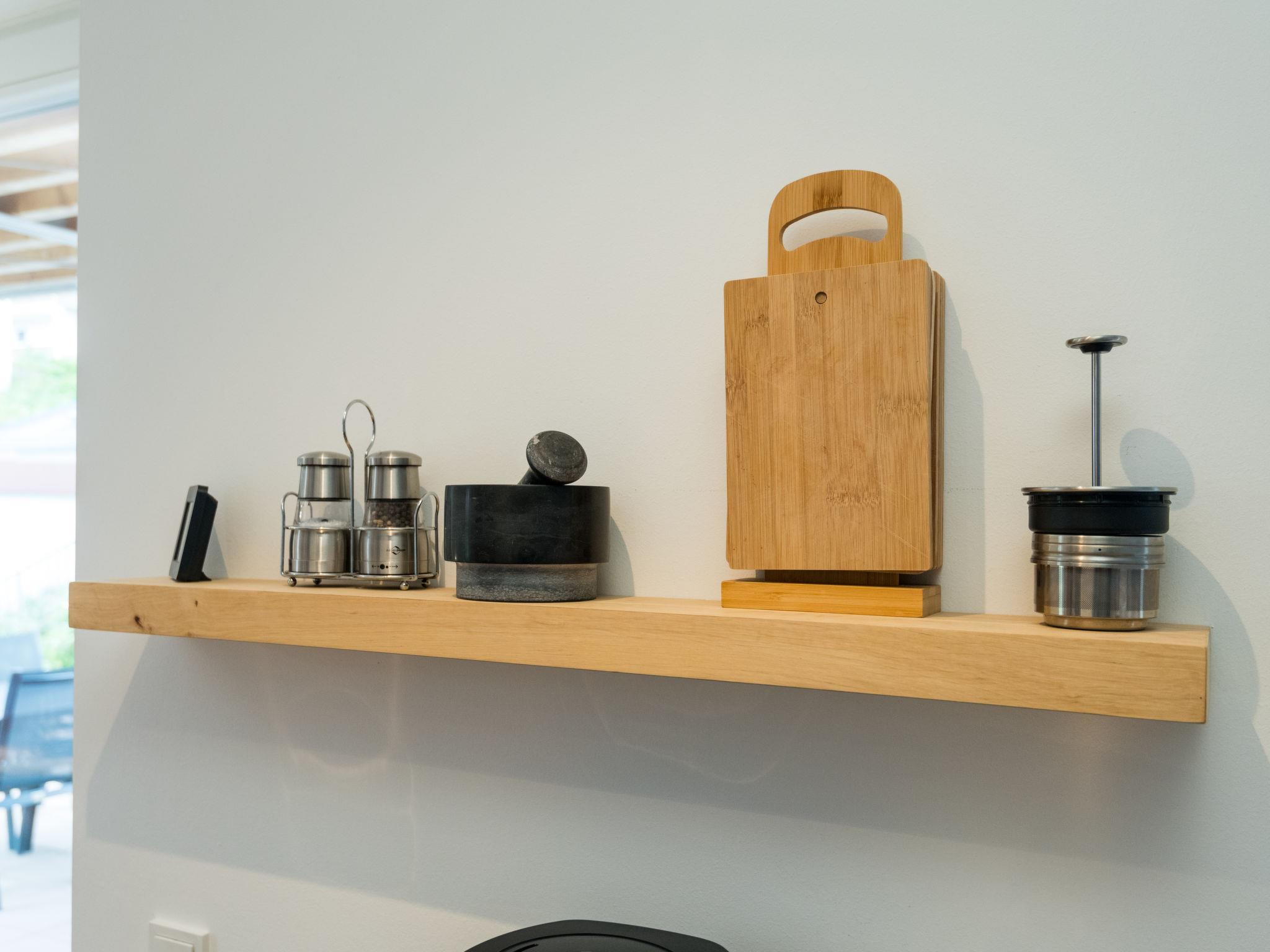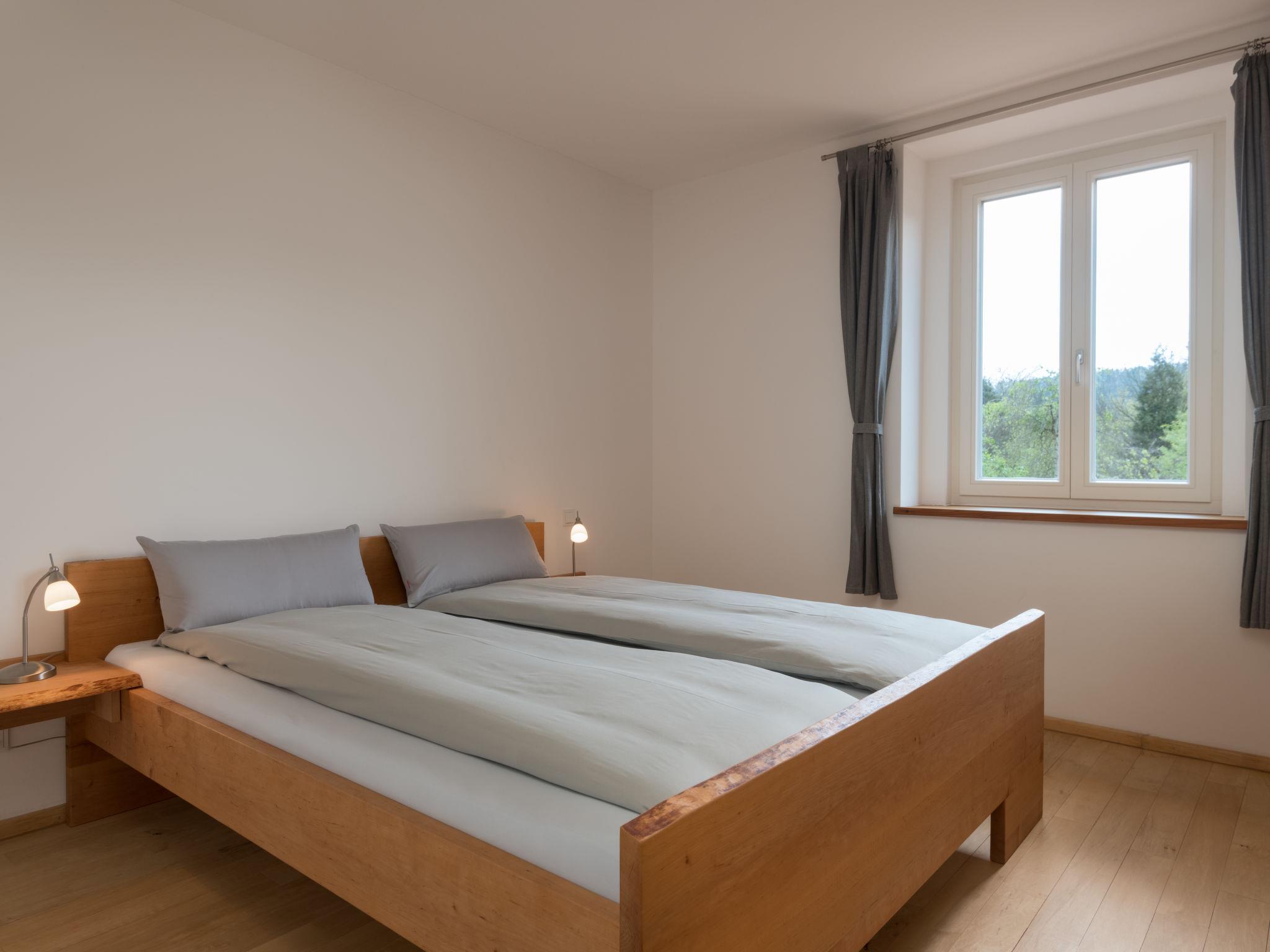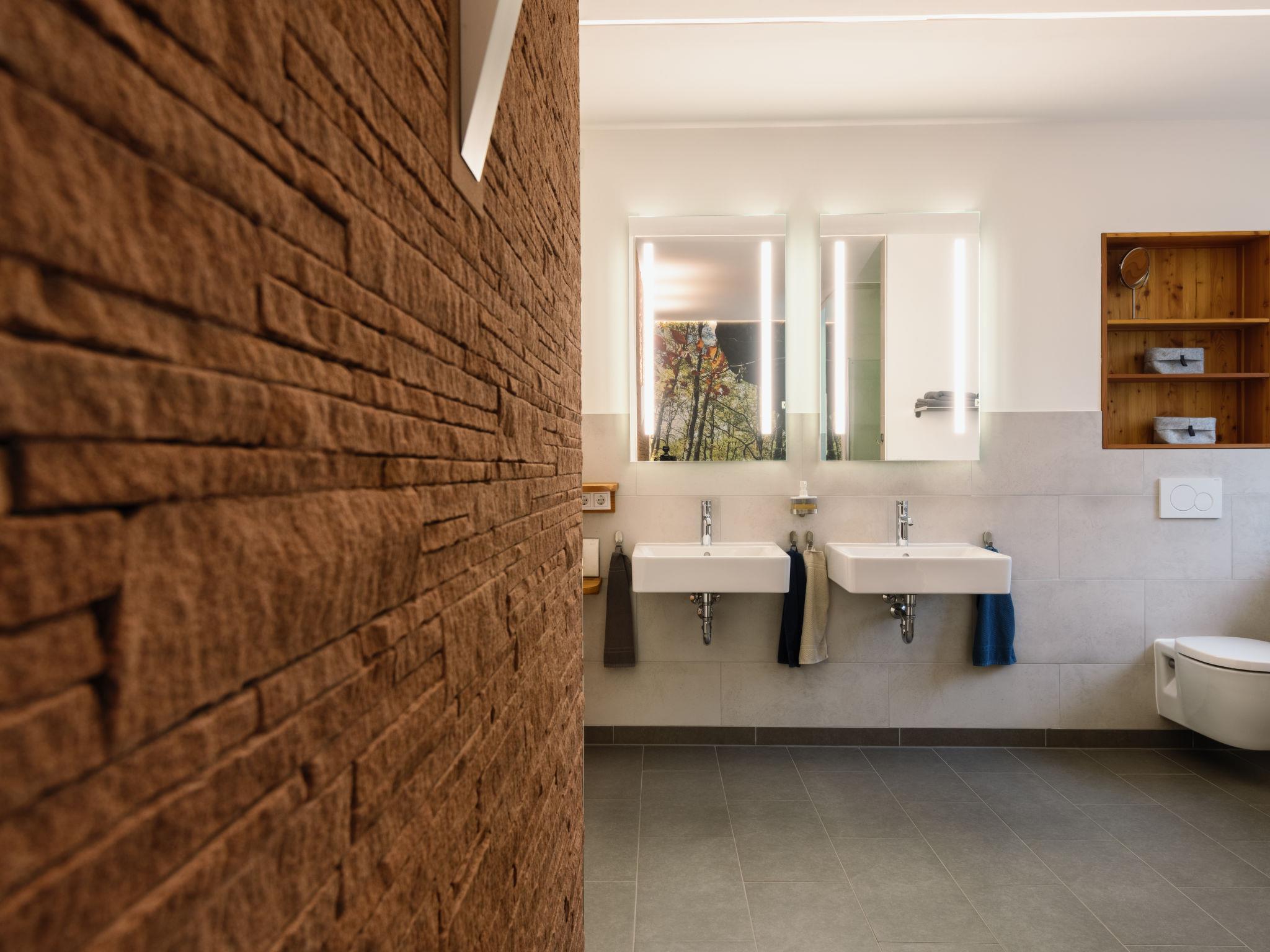5-room apartment 180 m2, on the ground floor. Bright, fully renovated in 2018, comfortable and modern furnishings: large living room with cable TV (flat screen). Exit to the terrace. 4 rooms, each room with 1 double bed (2 x 90 cm, length 220 cm). Open kitchen (oven, dishwasher, 4 induction hot plates, toaster, kettle, microwave, electric coffee machine) with dining table. Shower/WC, bath/shower/WC. Heating. Solar power. Terrace. Terrace furniture. Facilities: Internet (WiFi, free). Parking (roofed, 1 car). Please note: non-smokers only. Smoke alarm. This apartment is barrier-free and you can enter the house via a ramp. One bathroom is barrier-free. Bookings accepted for holiday purposes only.