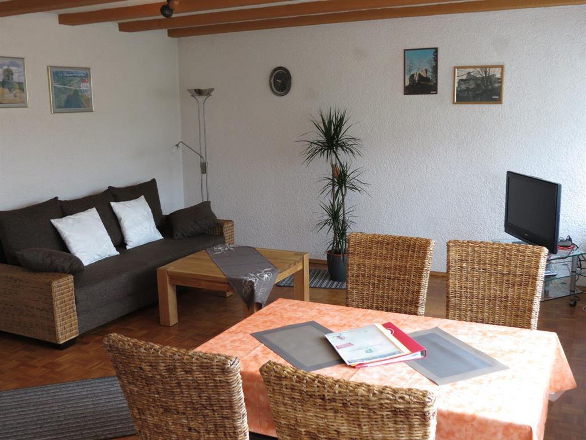 Wohnung Blumenstein - 70 qm: Große Wohnung, Wohnzimmer mit Doppelbett, Sat-TV, Radio, Telefon, W-Lan, 1 Doppelschlafzimmer, kleine Küche, DU/WC, Terrasse mit Kamin.