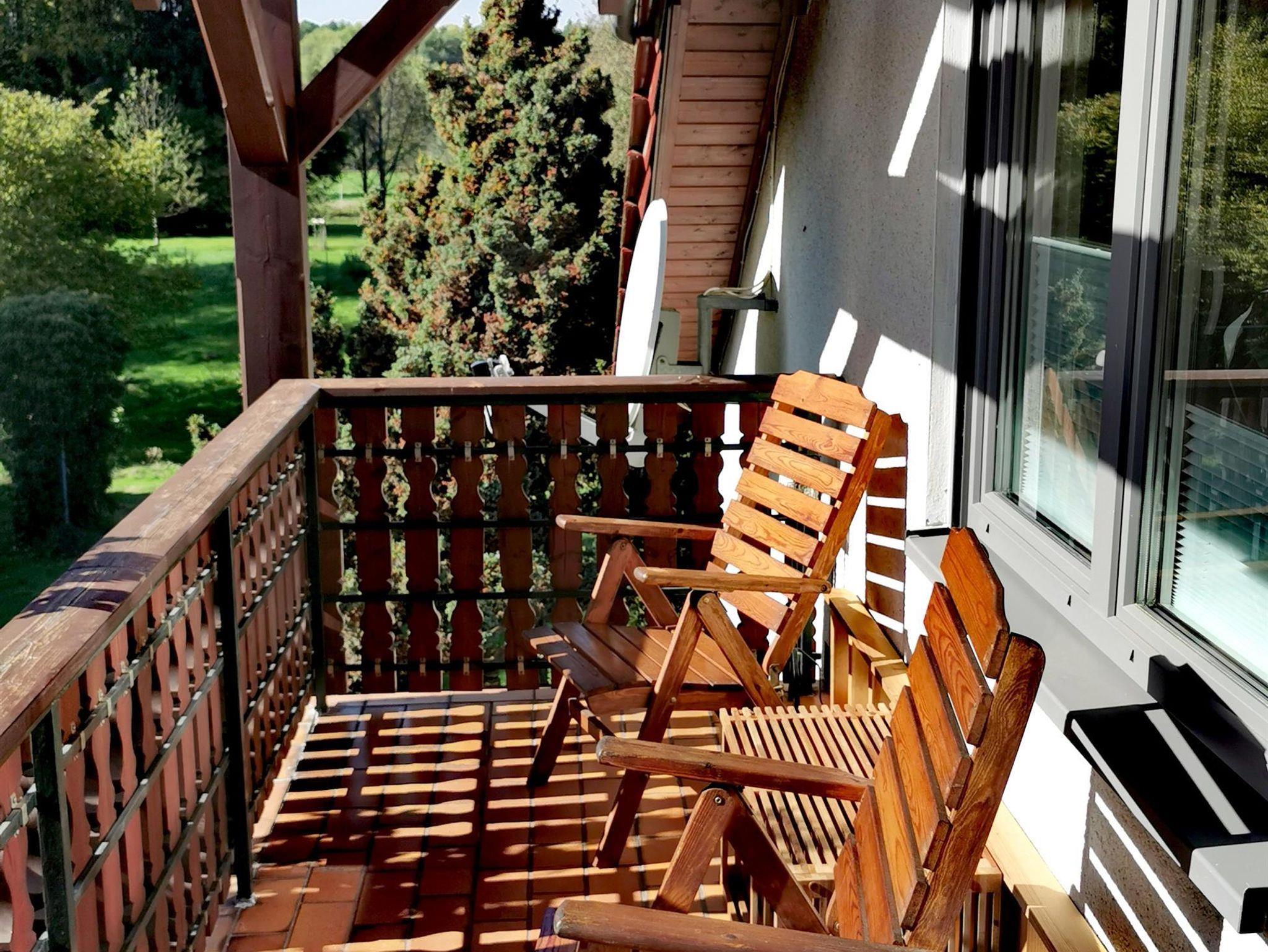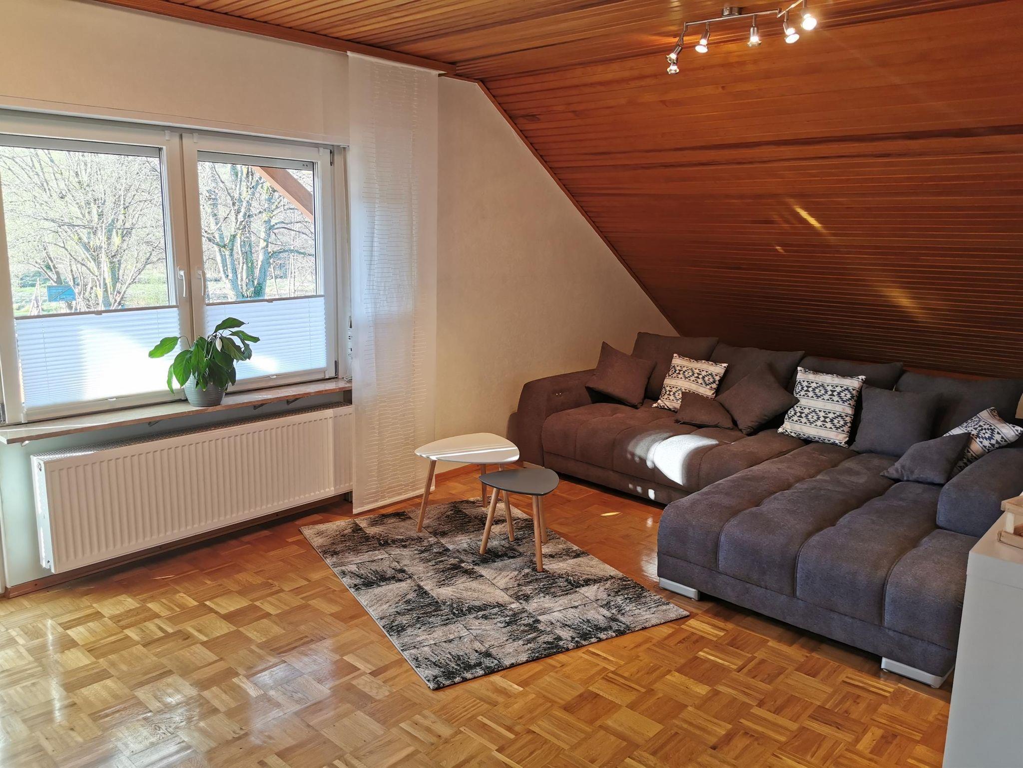 Eine Terrasse und ein Balkon bieten direkten Zugang und Blick in den großen Garten mit Bachlauf. Den Garten als Ausgangspunkt nutzend, können Premiumwege wie der Felsenland Sagenweg, die Wasgau SeenTour und der Brunnen- und Quellenweg bewandert werden. Sie finden darin allerdings auch genügend Platz zur Entspannung, Möglichkeiten zum Grillen und außerdem ausreichende Spielmöglichkeiten für kleine Gäste.