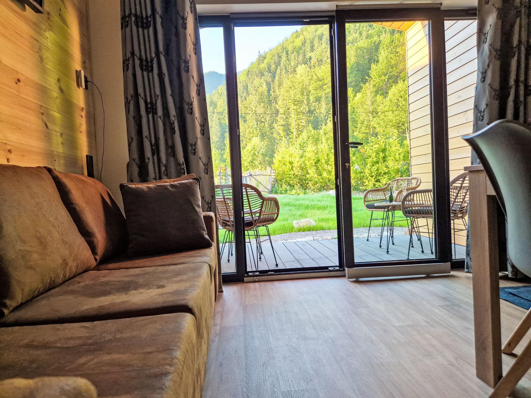 "Tiny Haus Glockenalm-Villa Maria", 3-room mobile home 33 m2 on 2 levels. Object suitable for 2 adults + 3 children. Tasteful and cosy furnishings: living/dining room with satellite TV and air conditioning. 1 room with 1 double bed (160 cm, length 200 cm). Open kitchen (2 ceramic glass hob hotplates, kettle, electric coffee machine). Shower/WC. Upper floor: (steep stair), 1 open room with sloping ceilings, ceiling height 50 - 110 cm with 3 sleeping facilities (3 x 80 cm, length 200 cm). Electric heating. Terrace. Terrace furniture. Beautiful view of the mountains. Parking (1 car) at the house. Please note: maximum 1 pet/ dog allowed. Smoke alarm.