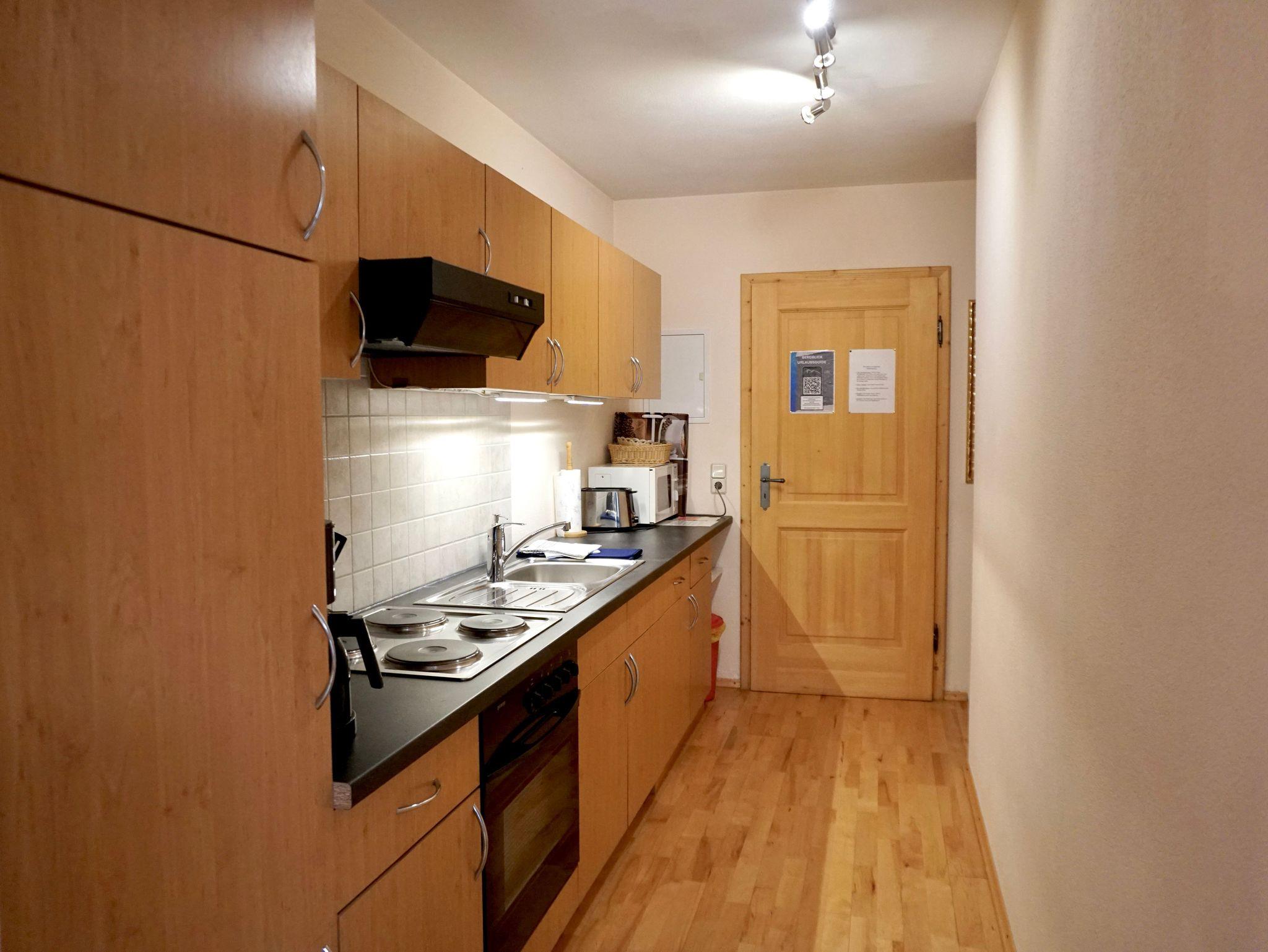 Die Ferienwohnung besteht aus einem Wohnschlafraum, einer großen, gut eingerichteten Küche und einem komfortablen Bad.