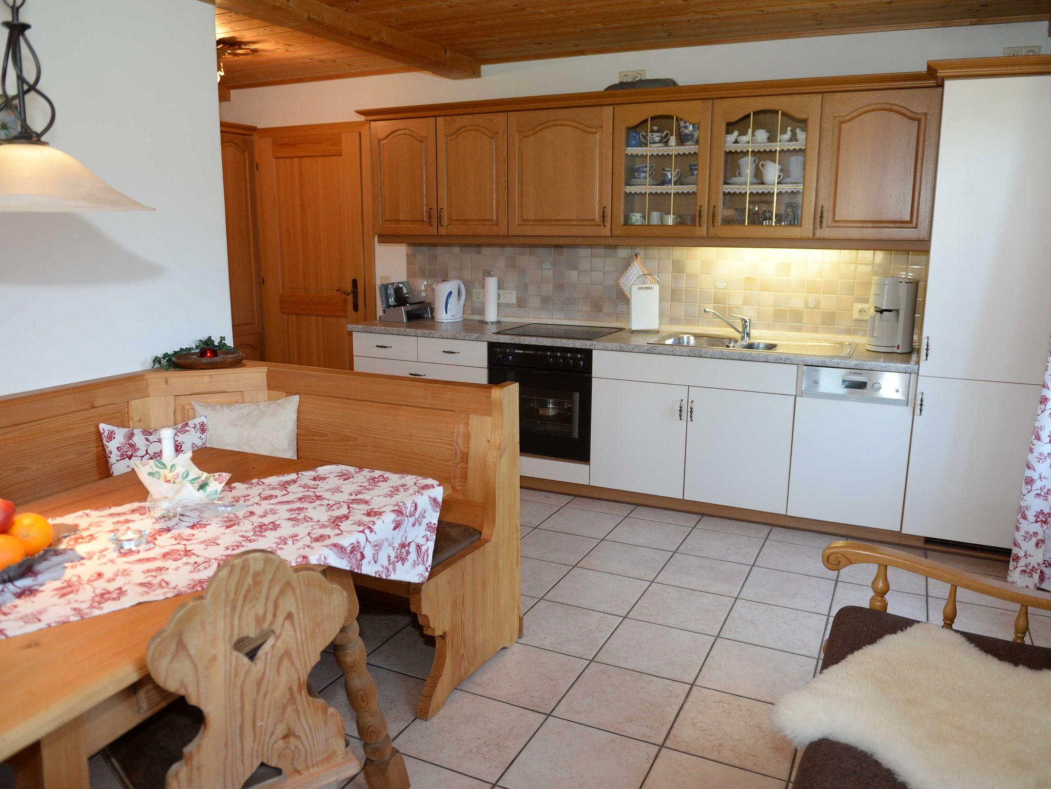 Die Wohnung liegt im 1. Stock, Südbalkon, alpenländische Einrichtung, Fliesen und Laminatböden ? Nichtraucher.
