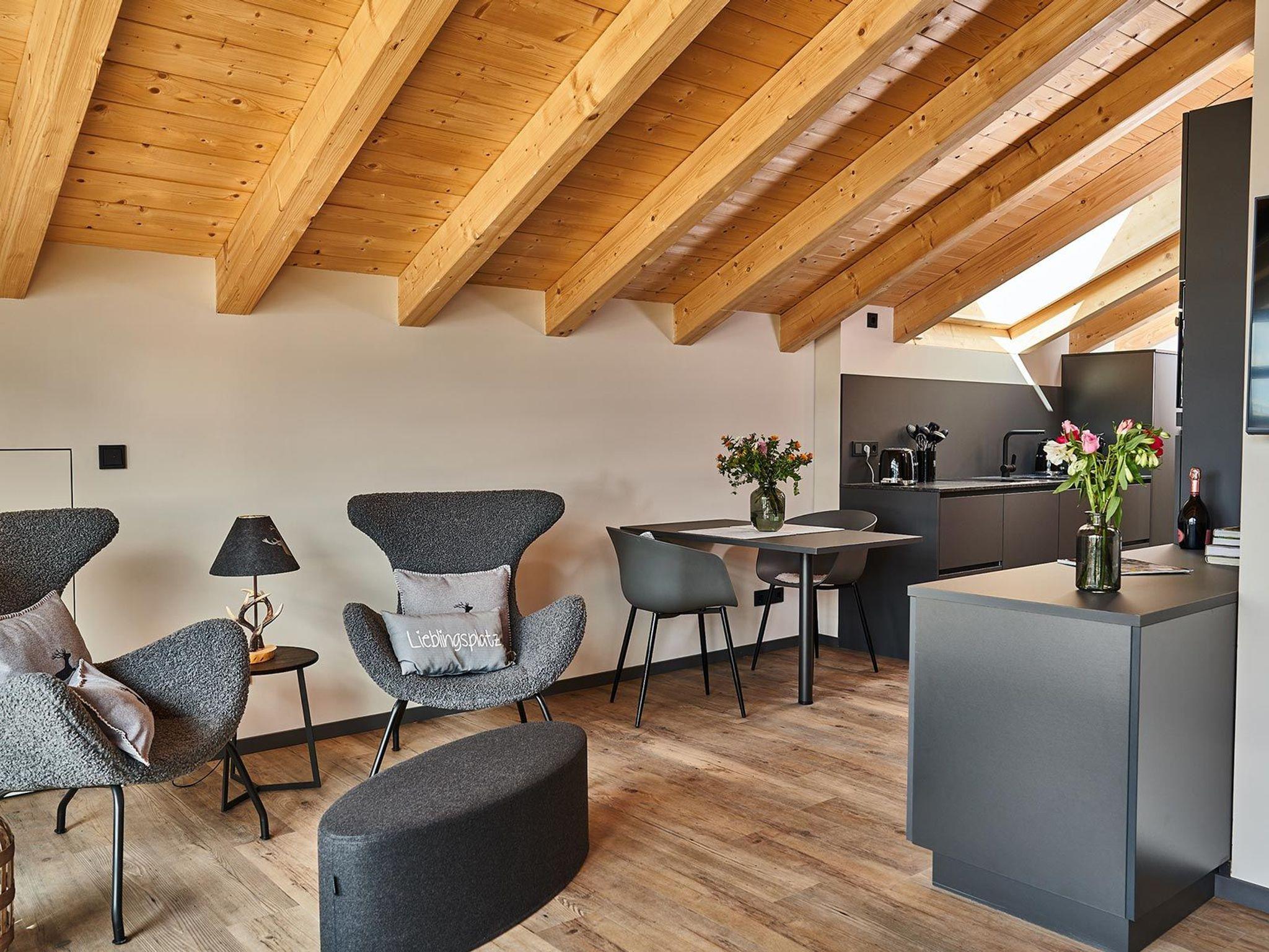 Unsere Apartments sind bestens ausgestattet: mit Flachbild-TV, Sonos, Schreibtisch (außer Apartments Hofidyll und Auszeit), Boxspringbetten, vollausgestatteter Küche, Kuscheldecken (auch für nette Stunden im Garten) sowie einem Safe. Alles komplett. Für Deinen komplett gelungenen Urlaub.