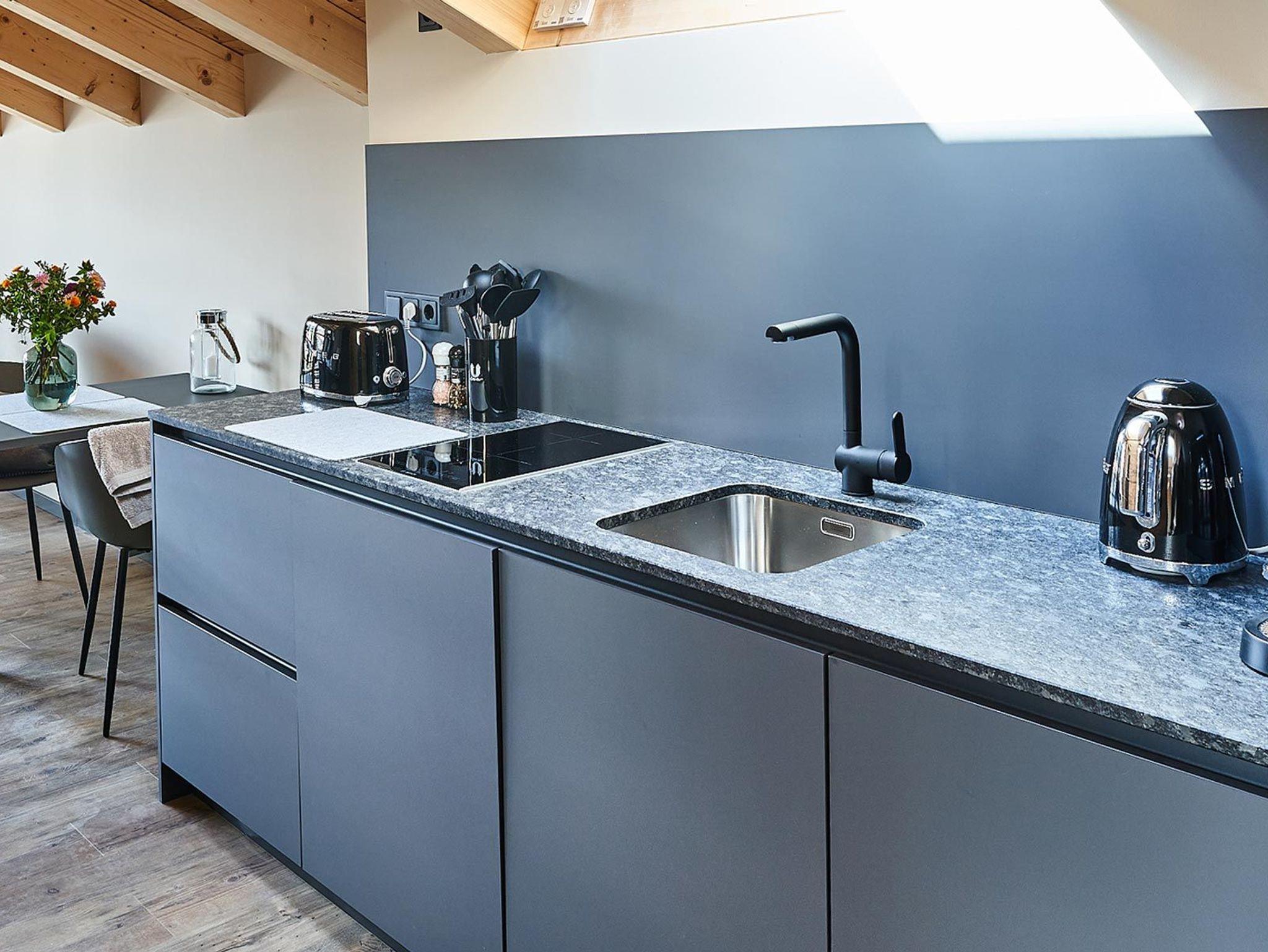 In unseren Küchen musst Du kein Hobbykoch werden, aber Du kannst. Denn hier ist alles drin: Spülmaschine, Backofen, Mikrowelle, Kühlschrank mit Tiefkühl-Fach, Nespresso-Maschine, Wasserkocher und Toaster. Selbst an die Kleinigkeiten haben wir gedacht: Küchenrolle, Küchentücher, Abfallbeutel, Spülmittel u. -tabs, Servietten, Salz und Pfeffer sowie einer Auswahl Kaffeekapseln und Teebeutel.