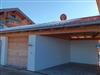 Ein überdachter Carport für dein Auto ist direkt neben Haus und für Fahrräder oder Ski