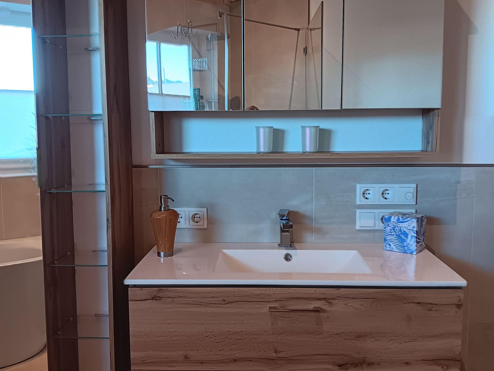 mit Bergblick ausgestattet.Vom Schlafzimmer geht es direkt in ein sehr großes Badezimmer mit