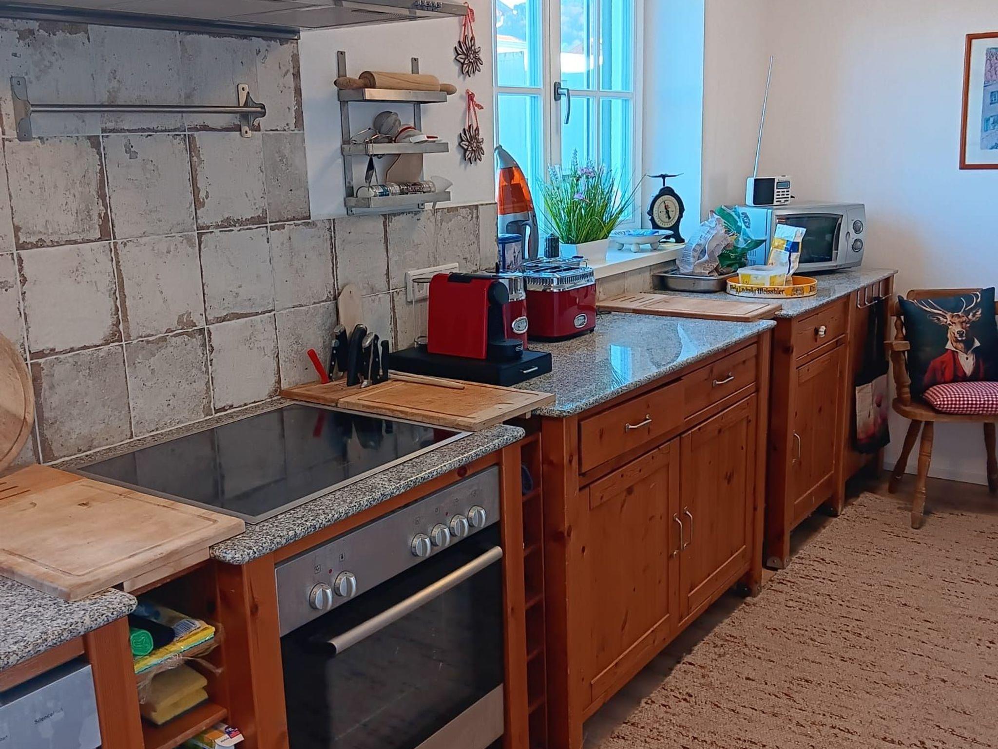 Die Küche ist voll ausgestattet mit Kühlschrank (Gefrierfach), Herd mit Backofen, Spülmaschine,