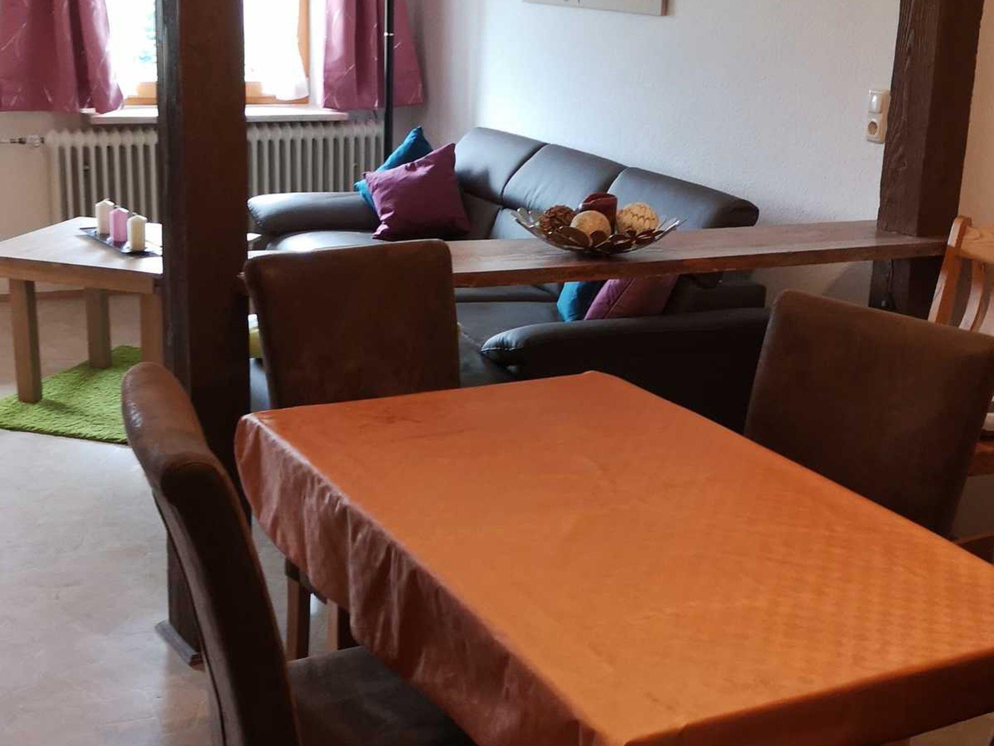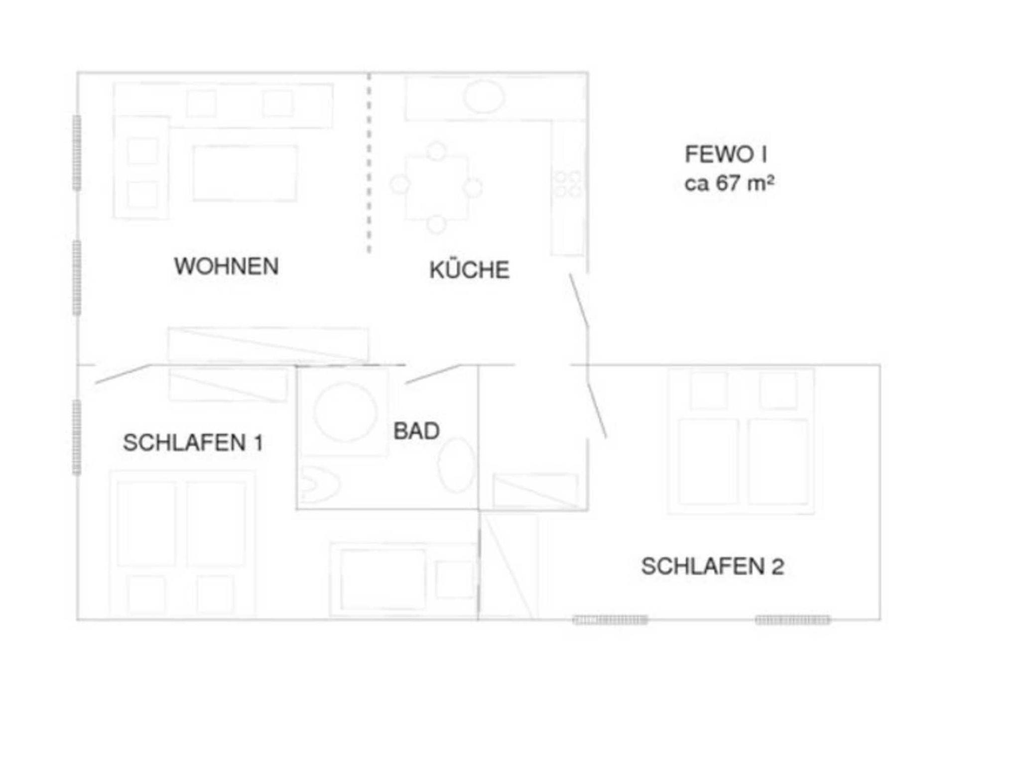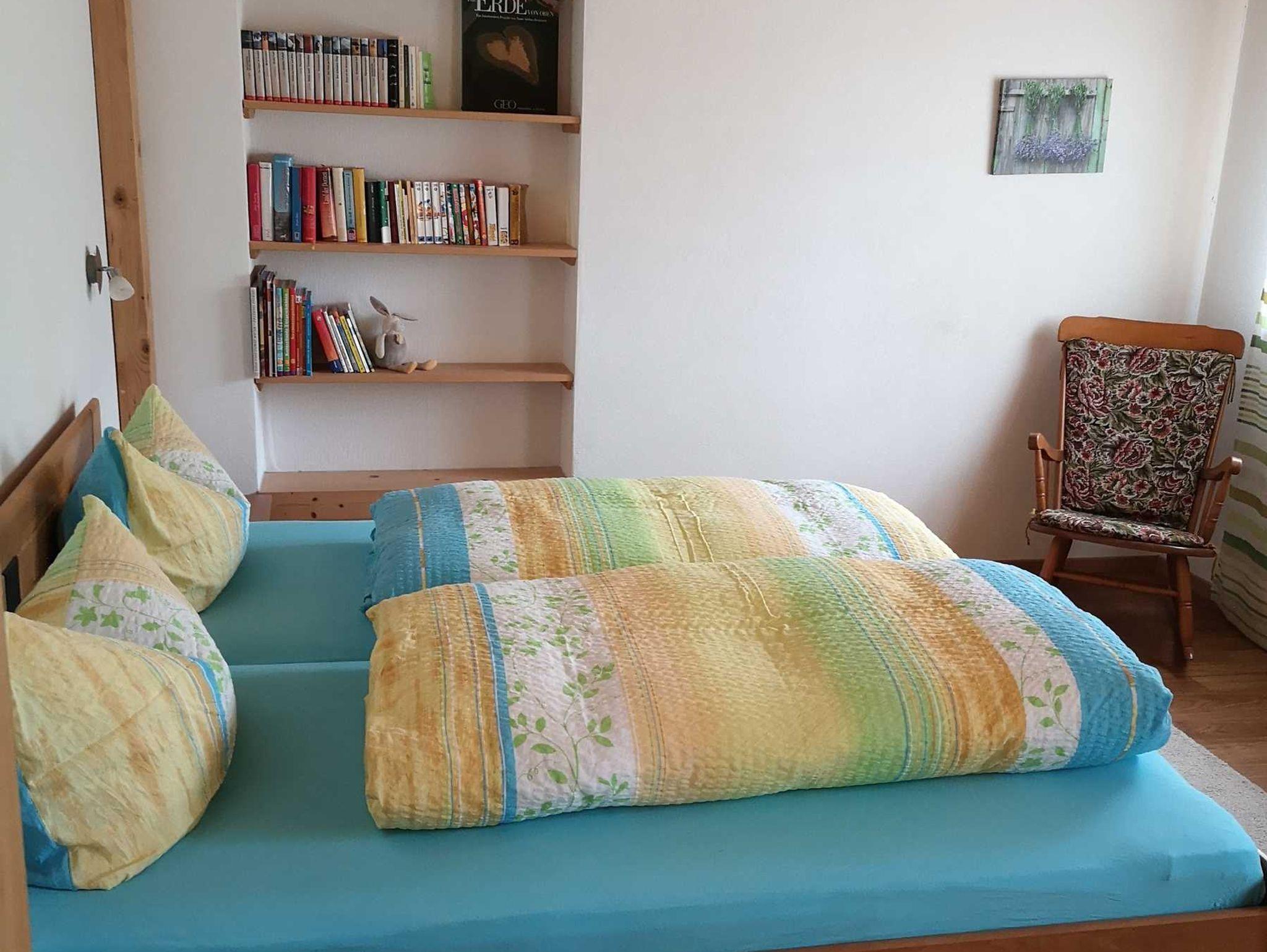 Die gemütliche 3 Zimmer-Wohnung befindet sich im 1. Stock und bietet Platz für bis zu 4 Personen. Sie verfügt über 2 Schlafzimmer (Doppelbett und 2 Einzelbetten), einen Wohnraum mit komplett eingerichteter Küche sowie ein Bad mit Dusche und WC.