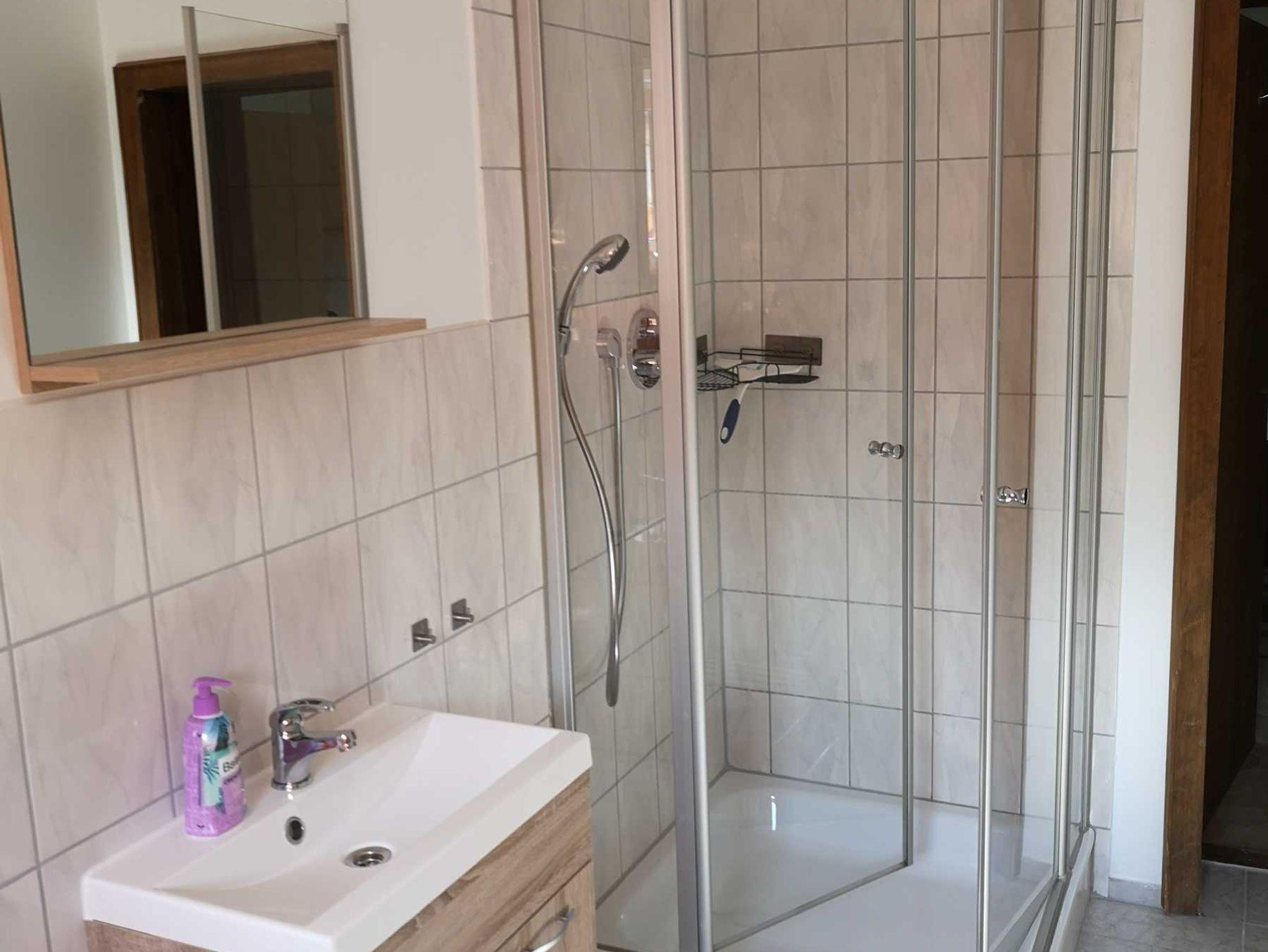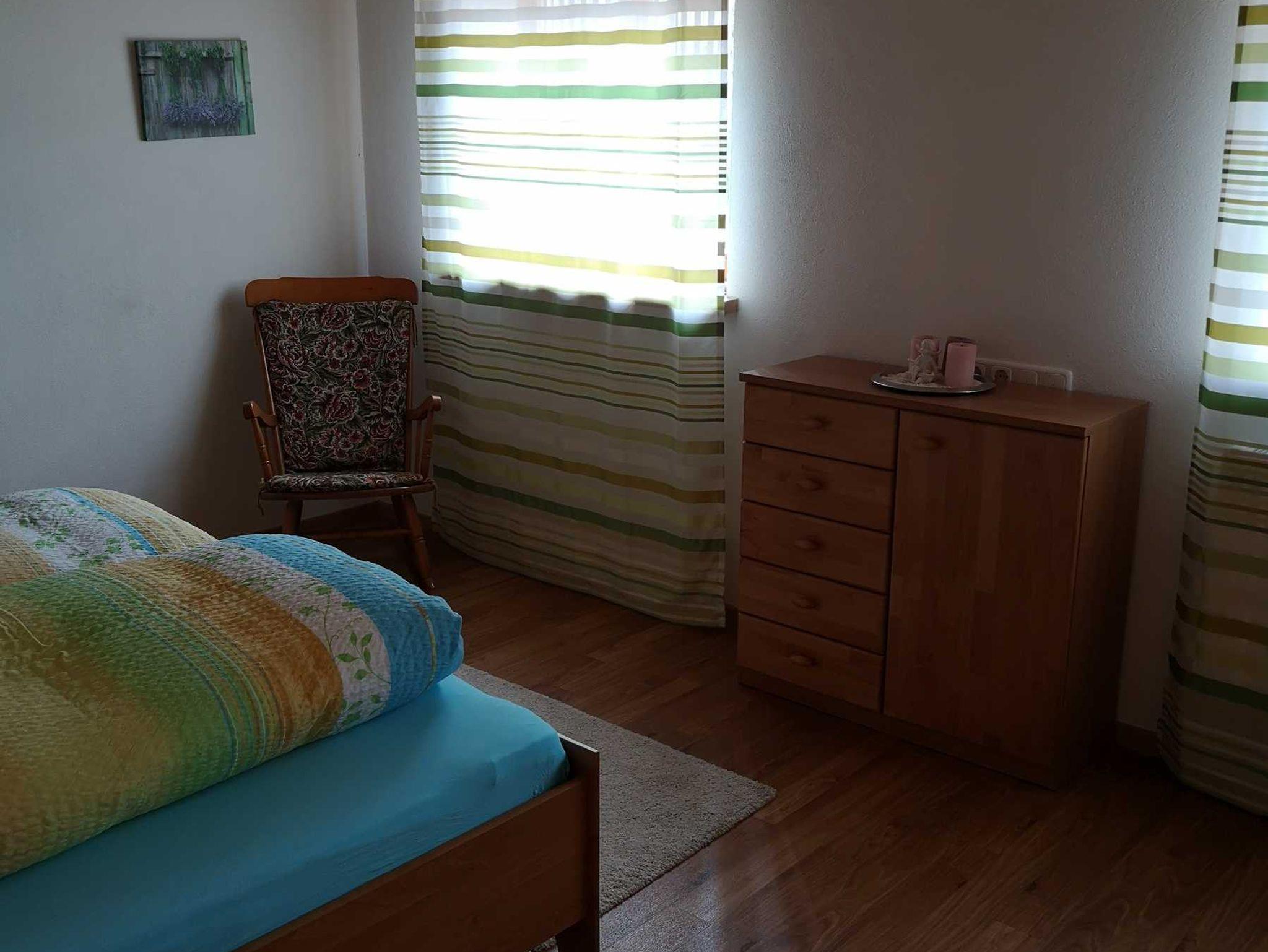gemütliche Wohnung mit zwei Schlafzimmern, Wohnzimmer mikt Schlafcouch u. Küche, Badezimmer mit Wanne, Dusche und WC.