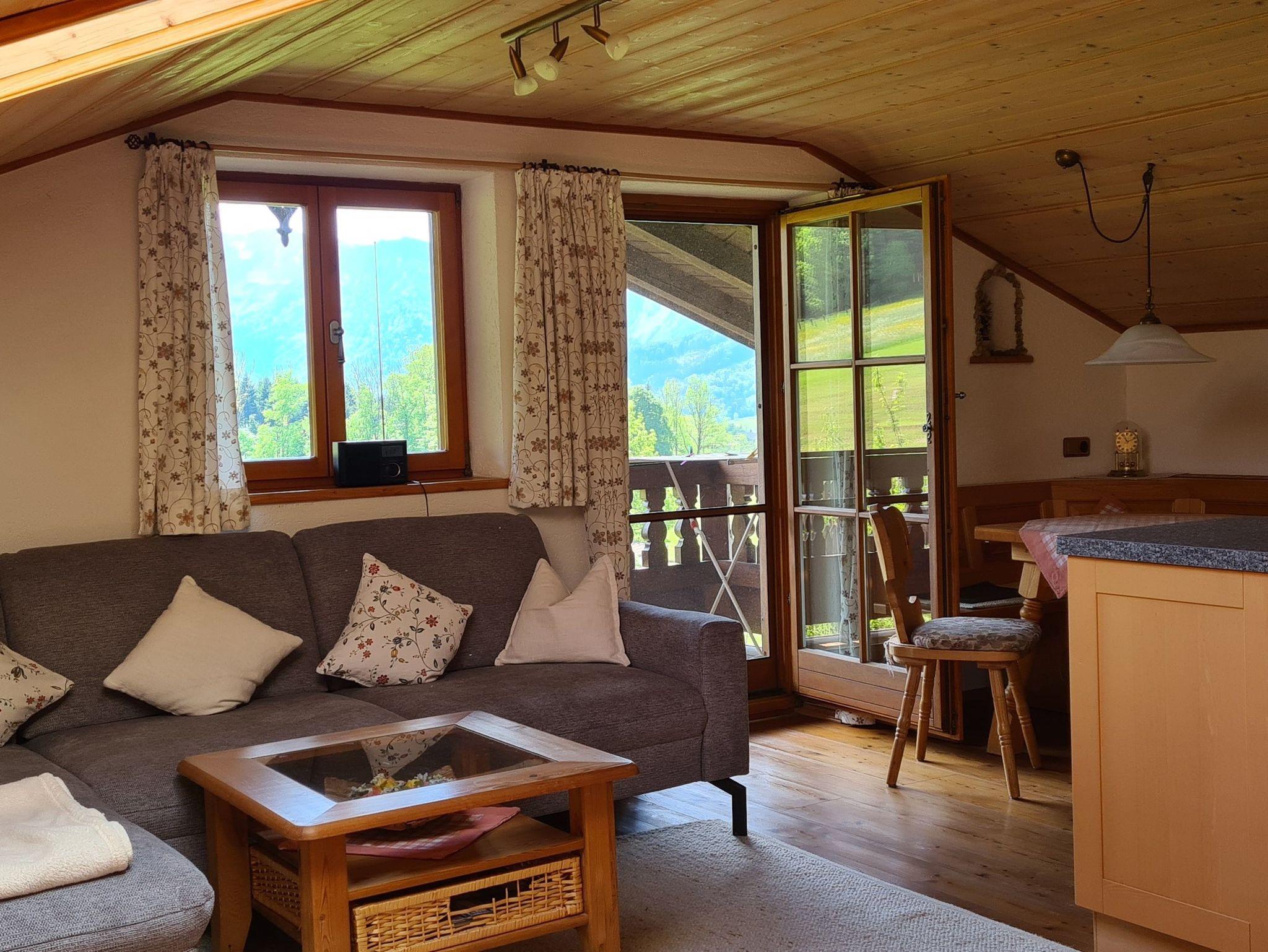 Unsere Ferienwohnung befindet sich im 2. Stock in einem seperaten Nebengebäude am Bauernhof und ist eine helle gemütliche Nichtraucherwohnung am Fuße des Breitensteins.