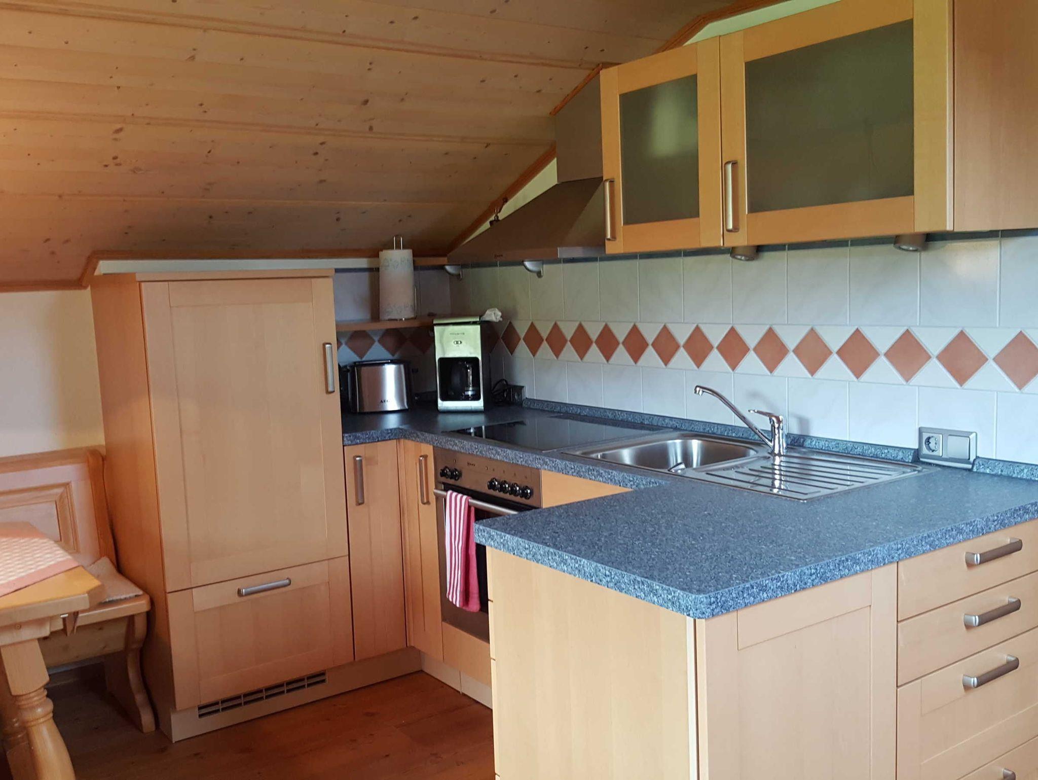 Eine komplett eingerichtete Wohnküche mit liebevollen Details laden ein zum Entspannen.