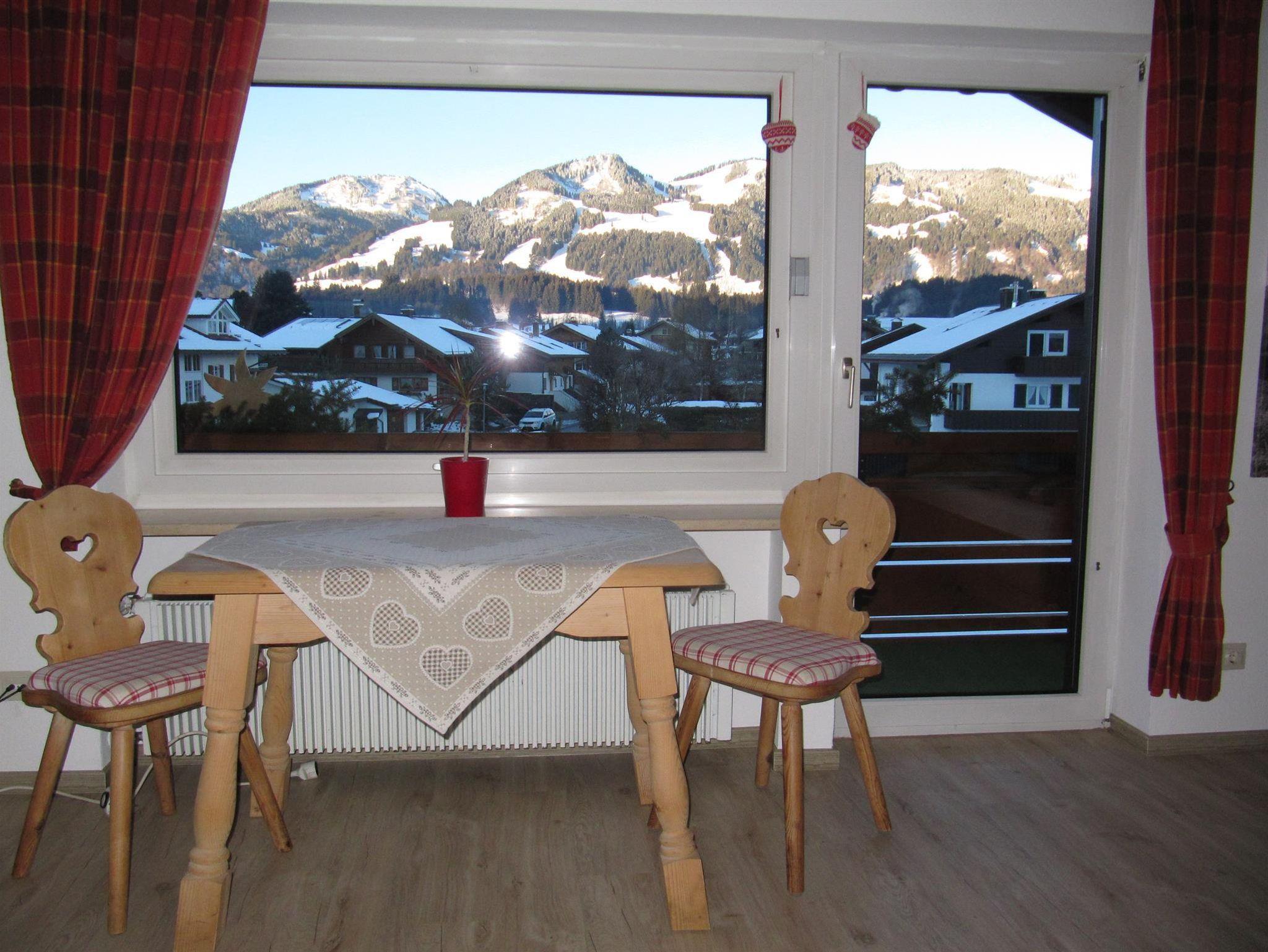 Ferienwohnung Weiherkopf (Nr. 3) 51 qm 1-Raum-Ferienwohnung für 2 Erw. + 1 Kind. Die Ferienwohnung besteht aus einem sehr großem Wohnschlafraum 28,qm, Lederwohnlandschaft neuer sep. Küche, neuem Bad mit barrierefreier Dusche, sowie einem schönen Westbalkon (SONNE SATT) mit Markise mit Sicht auf die Hörnergruppe. Kabelfernsehen/ 32 Programme. Radio/CD. Eigener PKW Stellplatz. Für die dritte Person wird ein Zustellbett zur Verfügung gestellt. In dieser Wohnung ist kein Hund erlaubt.