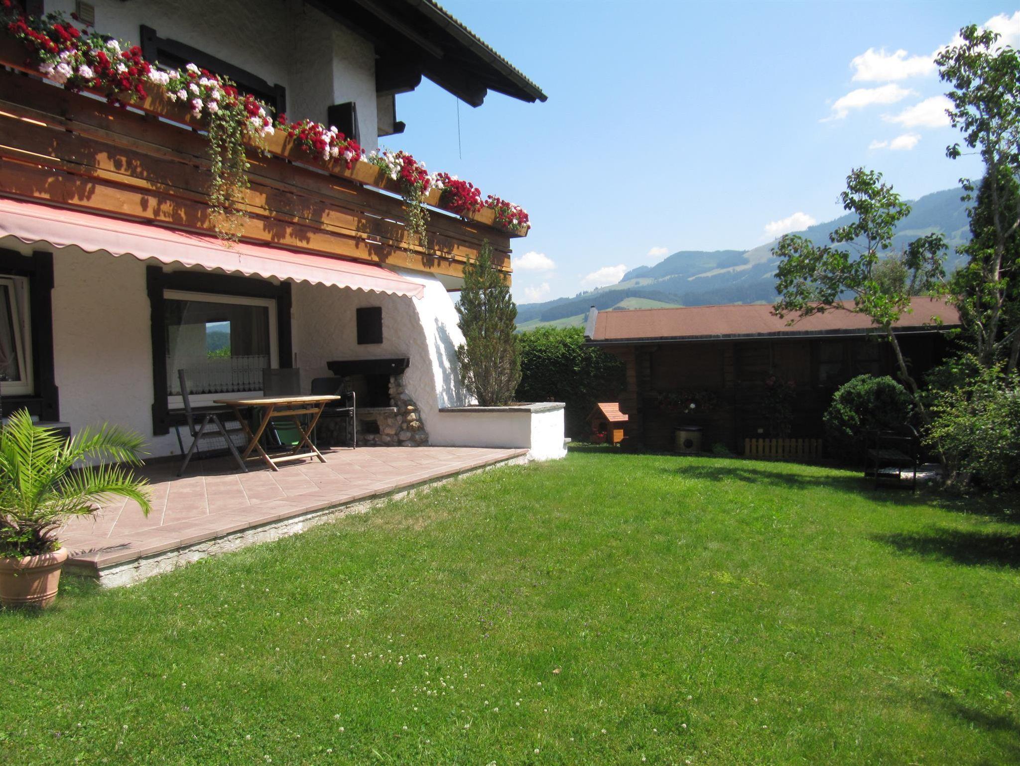 Renovierte EG-Wohnung mit separatem Schlafzimmer, Landhausdoppelbett mit aktuell neuen Daunenbetten, mit Süd- und Westterrasse und Garten , neuwertige separater Küche, neuen Bodenbelägen, neuer Bauerneckbank, Ecksofa und neuer großer Südterrasse, herrlicher Bergblick inclusive.
