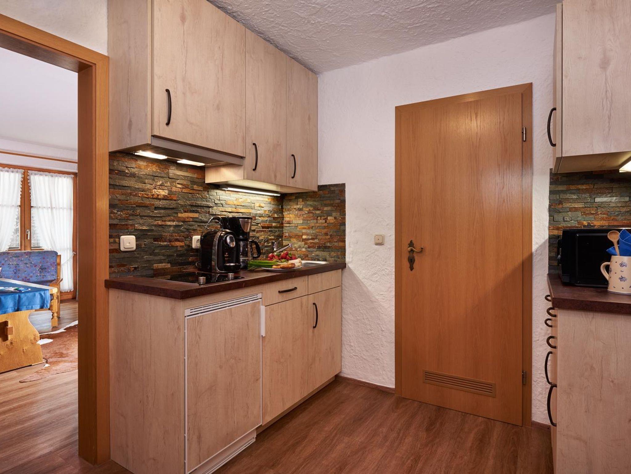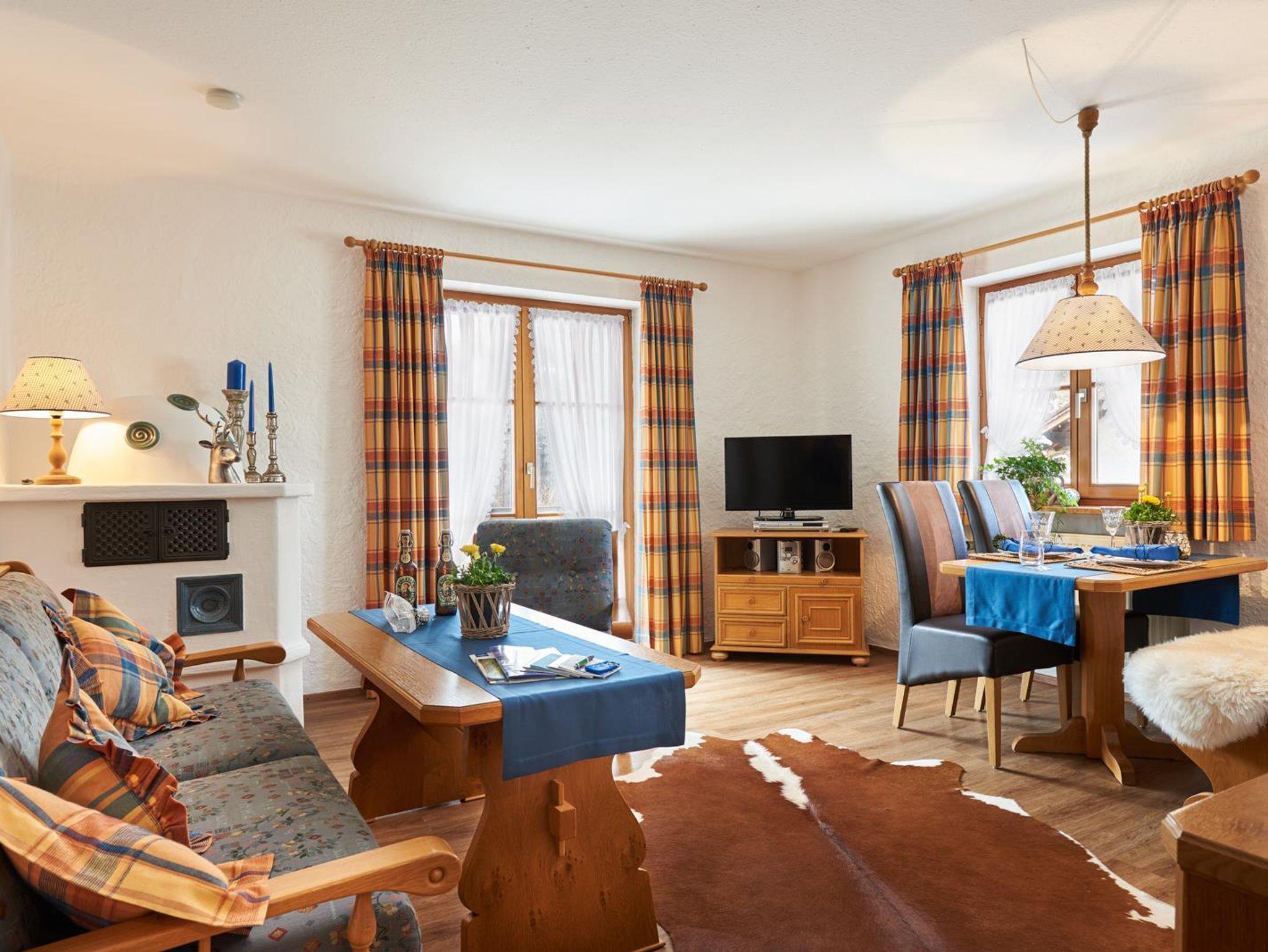 1. OG. für 2-4 Personen, Wohnraum mit Essecke, sep. komplett eingerichtete Küche, Kachelofen, Schlafzimmer, Dusche, WC, Farb-TV, Schlafmöglichkeit auch im Wohnraum, großer Süd- und Westbalkon (20m).
