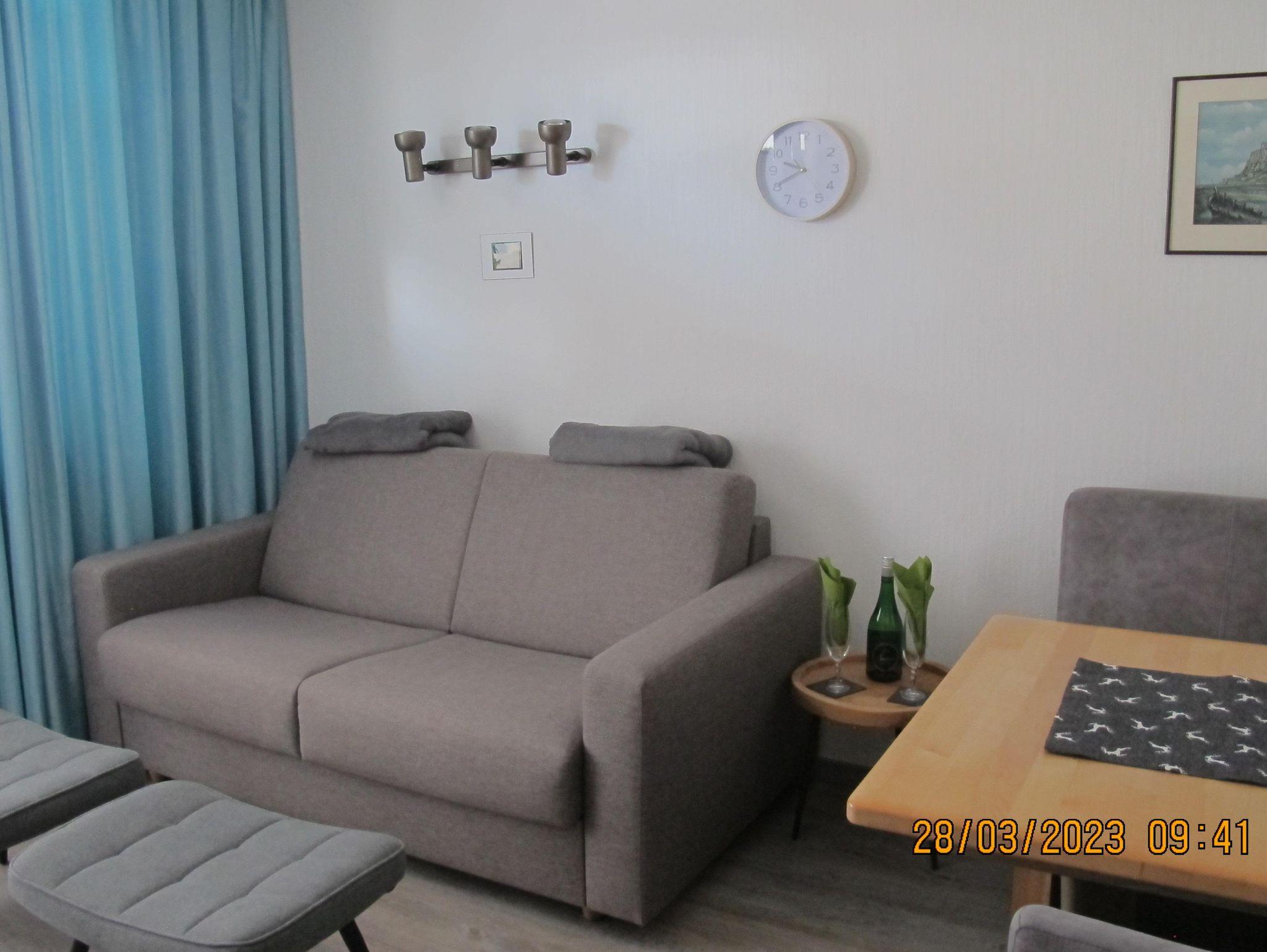 Das Wohn/Eßzimmer wurde aktuell durch ein neues,gemütliches Sitz/Schlafsofa sowie neuen Möbeln für die Eßecke verschönert.