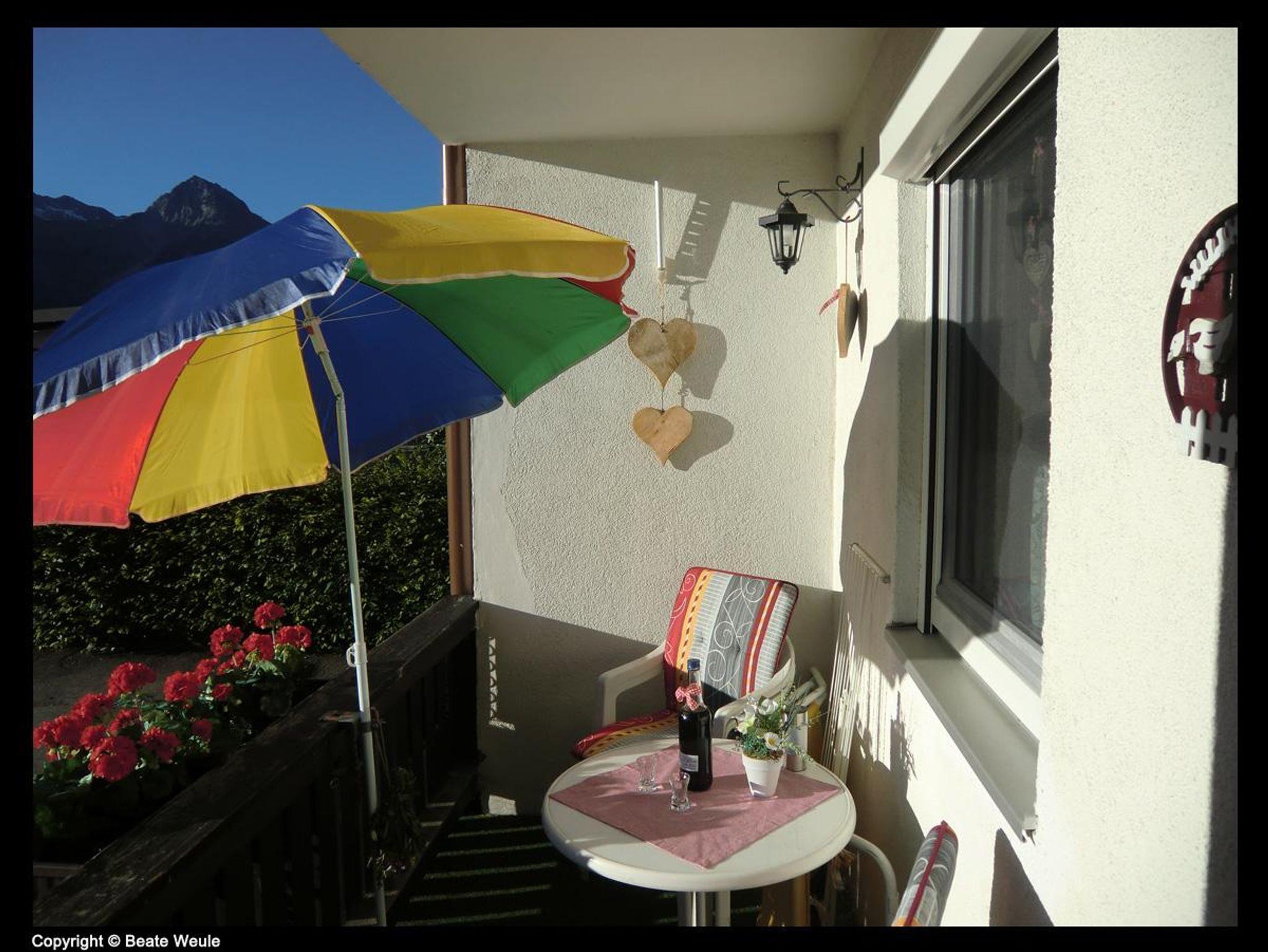 Wohn/Schlafraum mit Schrankbett, seperater Küche mit Essecke, Bad (DU/WC), Flur, Balkon (Blick auf Rubi-/Nebelhorn), Kabel-TV, Miniofen.