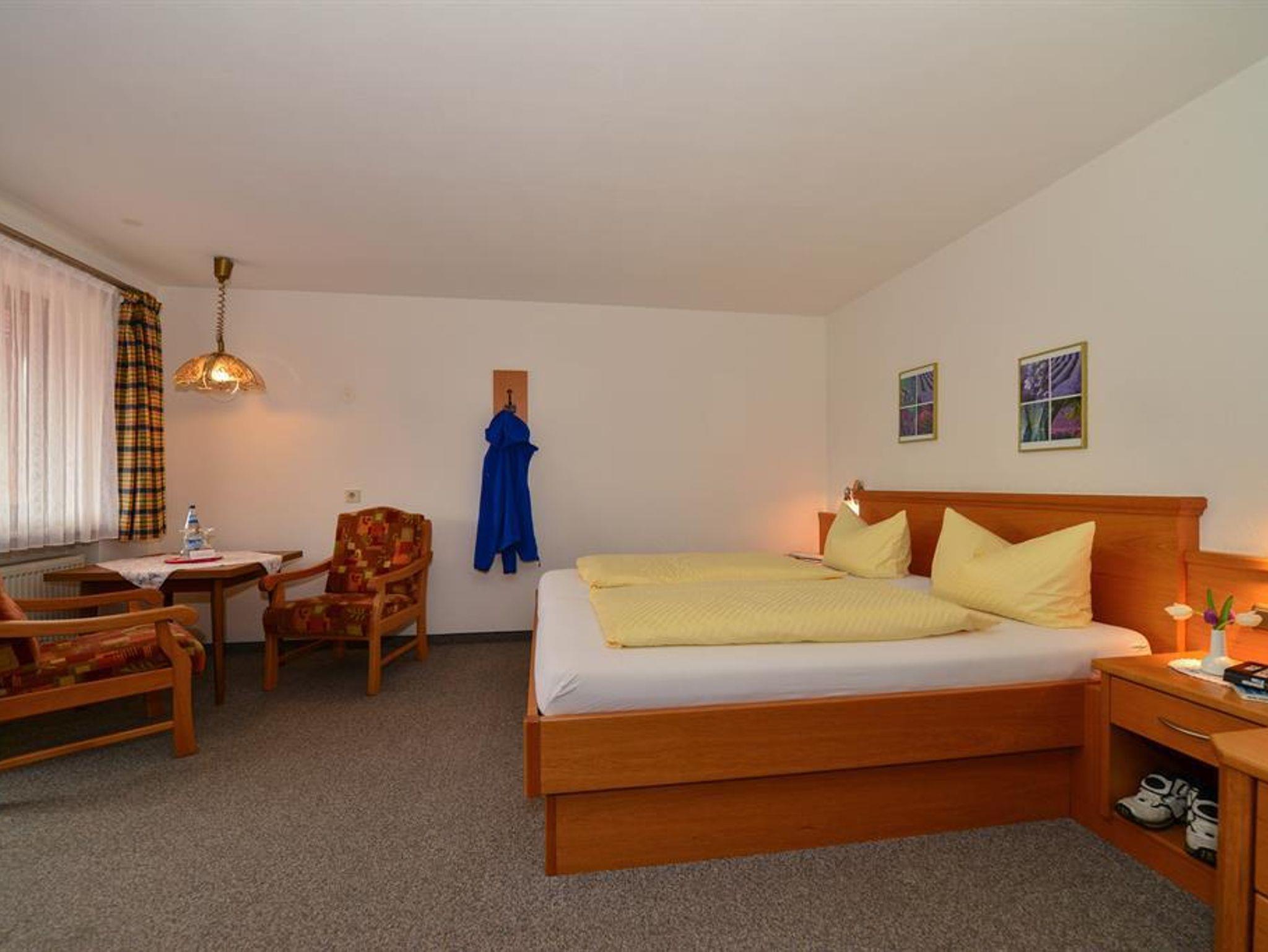 Geräumiges, neuwertig eingerichtetes Komfort-Doppelzimmer mit Blick nach Süden in die faszinierende Schönheit der Allgäuer Berge. Es verfügt über zwei Räume, davon ein Wohn-Schlafraum und ein Badezimmer mit Dusche/WC. Ausstattung: Balkon, Kühlschrank, Flachbildschirm, Telefon, kostenloses W-Lan und Zimmersafe.