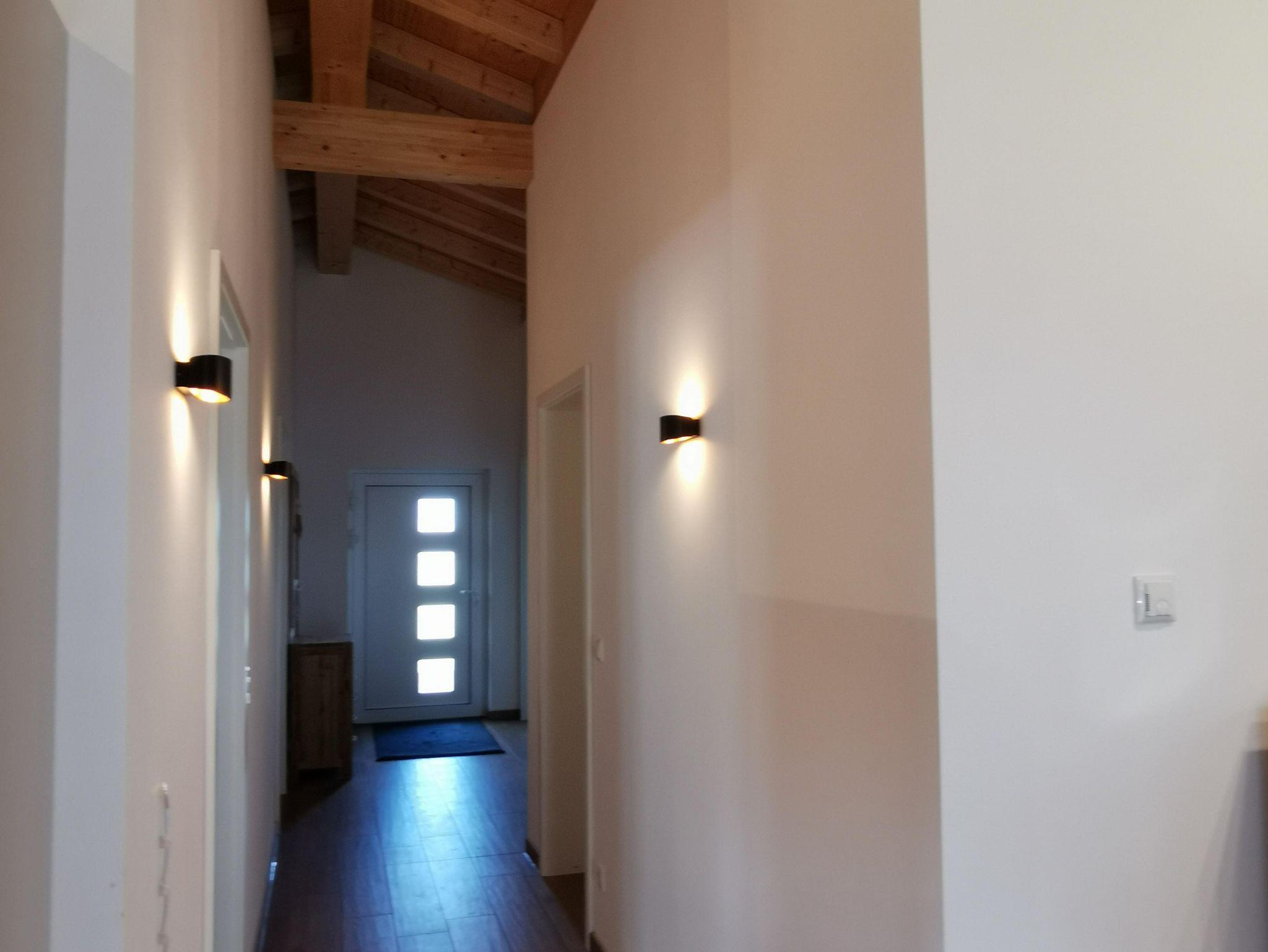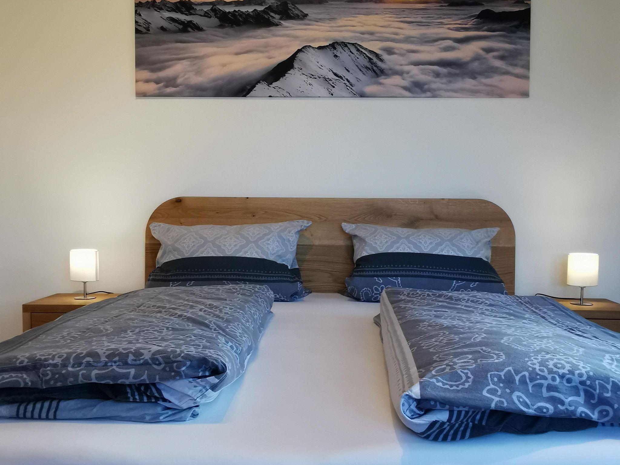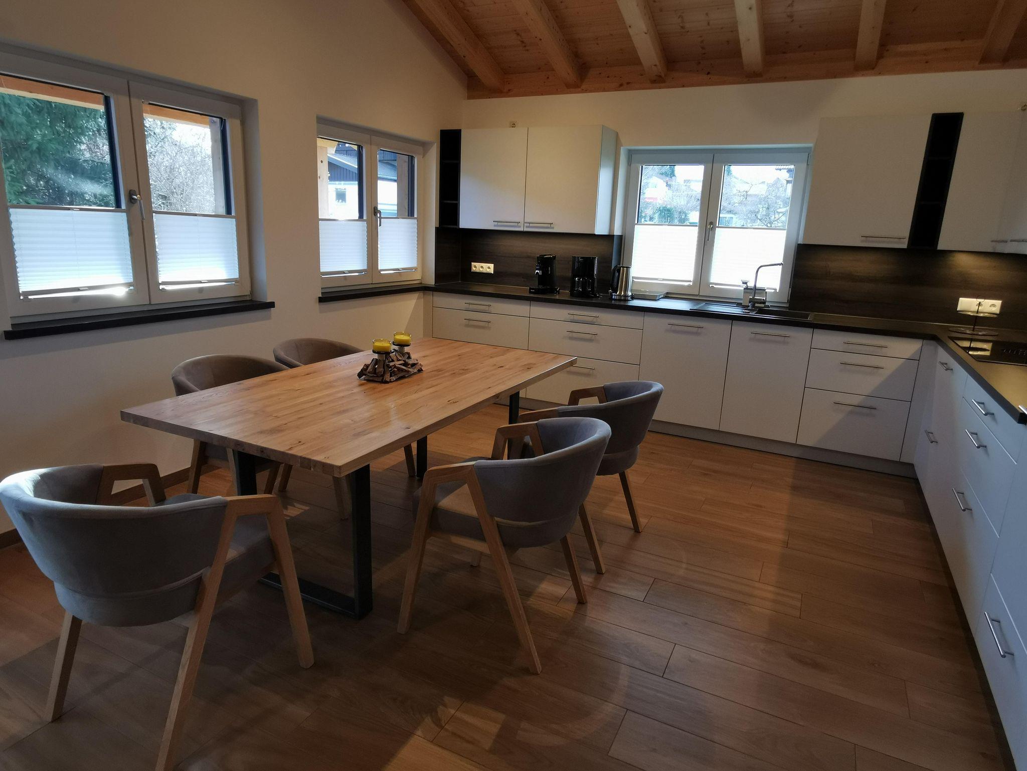 Modernes Chalet mit eigenem Eingang und Terrasse. Der offene Wohnbereich mit großer Küche und Wohnzimmer mit Zugang zur Terrasse Der Wohnzimmer Bereich bietet eine weitere Schlafmöglichkeit, wenn man die Schlafcouch ausklappt. Wohnbereich mit Sofa und 2 Sessel, Große Küche mit hochwertige Einbaugeräte Liebherr Kühlschrank mit 0 Grad Zone, Miele Backofend, Bora Induktionskochfeld und Miele Geschirrspülmaschine. Selbstverständlich mit Kaffeemaschine, Kaffee Padmaschine, Wasserkocher, Eierkocher und Heissluftfriteuse ausgestattet. Ein großes Bad mit Dusche, WC und Badewanne und ein seperates Gäste WC. Technikraum mit Abstellmöglichkeiten