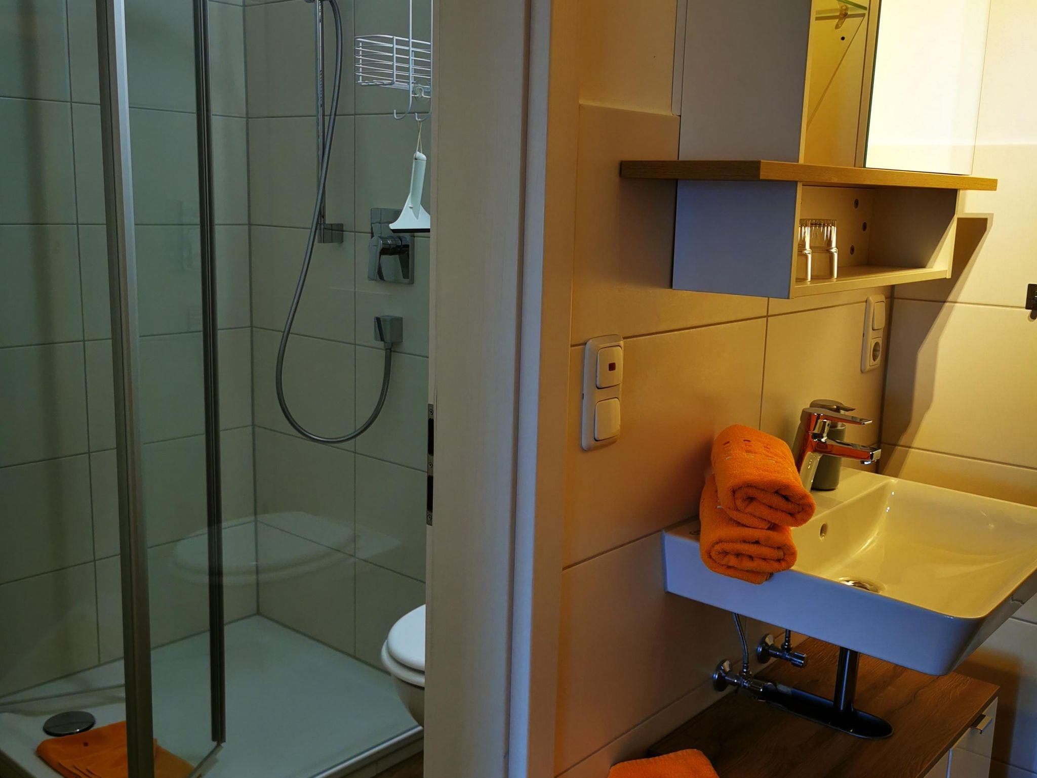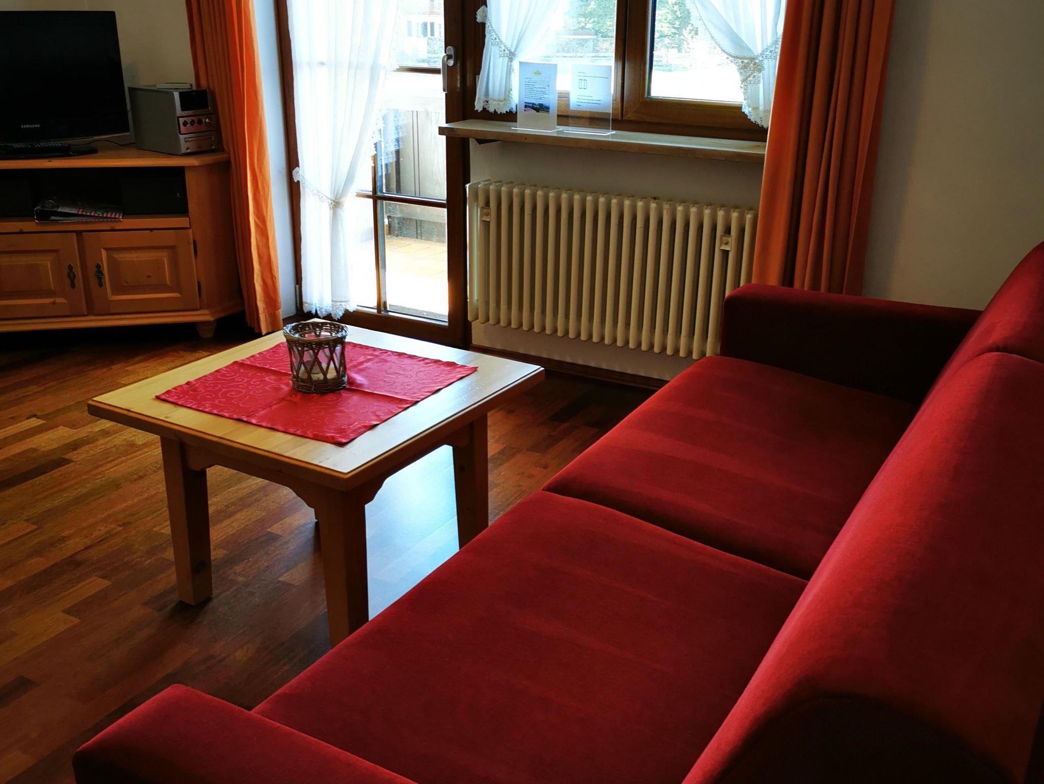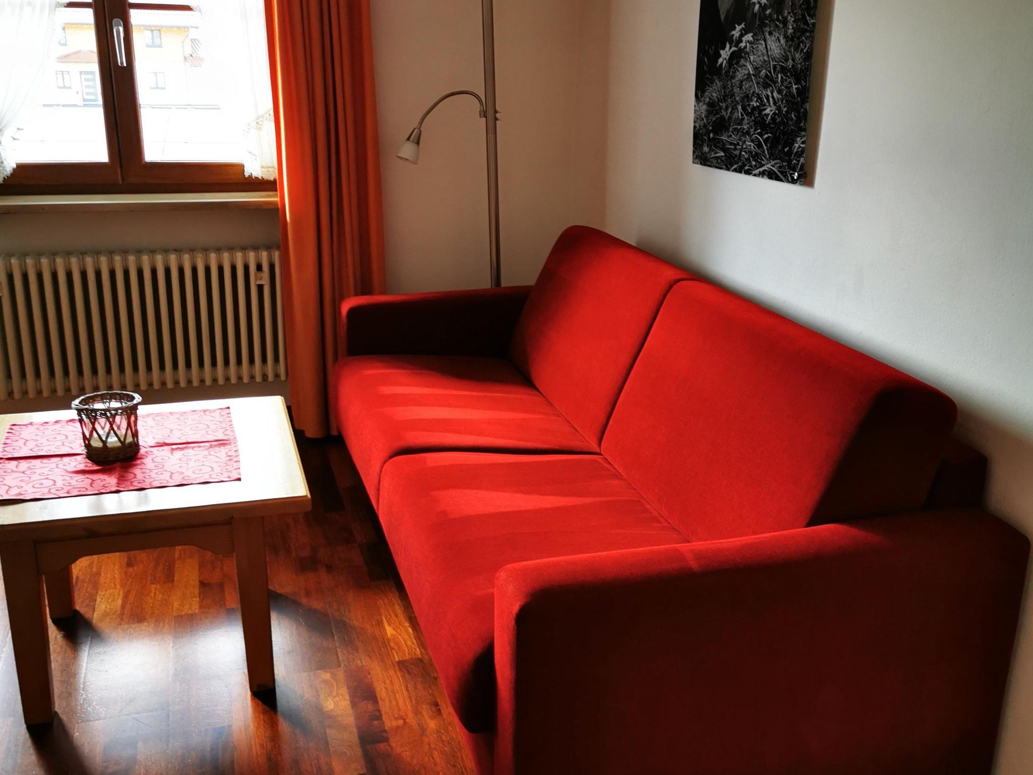 2 Raum Komfort-Wohnung mit Parkett, ca.40 qm im 1.Stock Süd-Balkon mit Bergblick. Kleine Diele mit Garderobe, Wohnraum mit gemütlicher Polstergarnitur und Essplatz im angenehmen Ambiente. SAT-TV Flachbildschirm und CD-Radio Stereoanlage. Küche komplett eingerichtet mit Backofen, Cerankochfeld, Spülmaschine, Mikrowelle, Kaffeemaschine, Senseo Kaffeepadmaschine, Toaster, Eierkocher und Wasserkocher. Separates Schlafzimmer, Bad mit Dusche+WC.