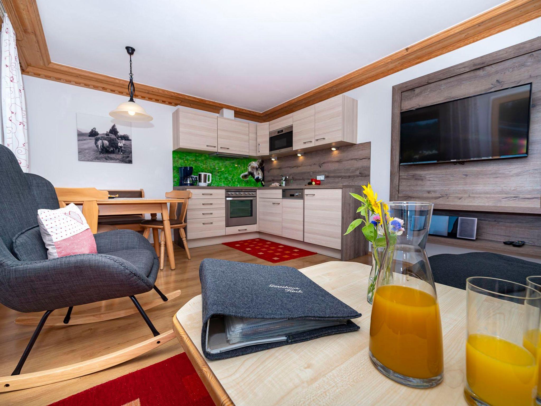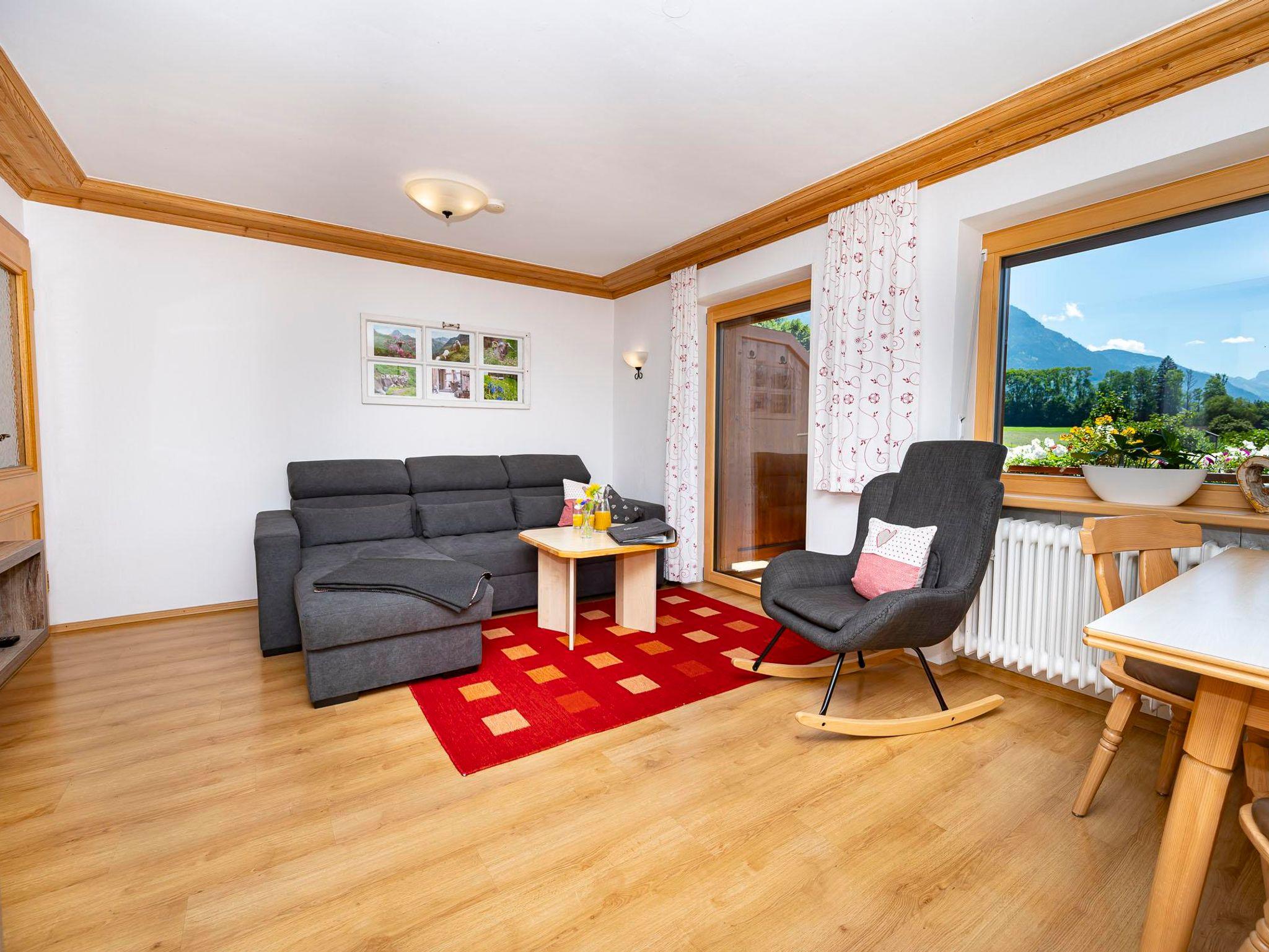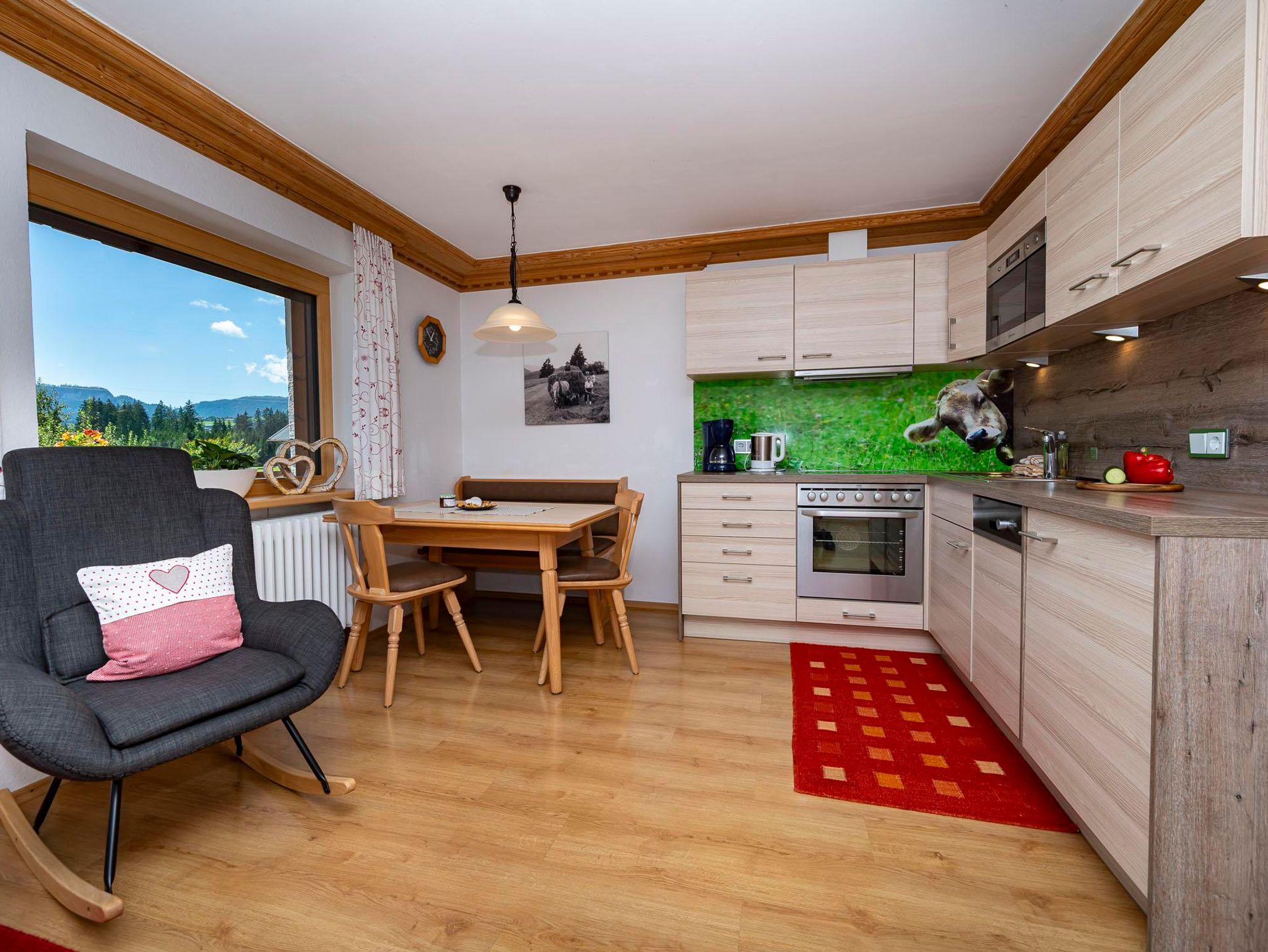 gemütliche, komfortable Ferienwohnung mit zwei getrennten Schlafräumen, 1x Doppelbett, 1x 2 Einzelbetten, Südbalkon mit herrlicher Bergsicht, Wohnzimmer mit Essecke und Couchgarnitur, SAT-TV, komplette Küche mit Spülmaschine, Kühlschrank mit Gefrierfach, Backofen, Mikro, Kaffeemaschine, Toaster, Wasser- und Eierkocher, Badezimmer mit Du/WC, Handtücher, Geschirrtücher, Bettwäsche und Föhn inklusive.