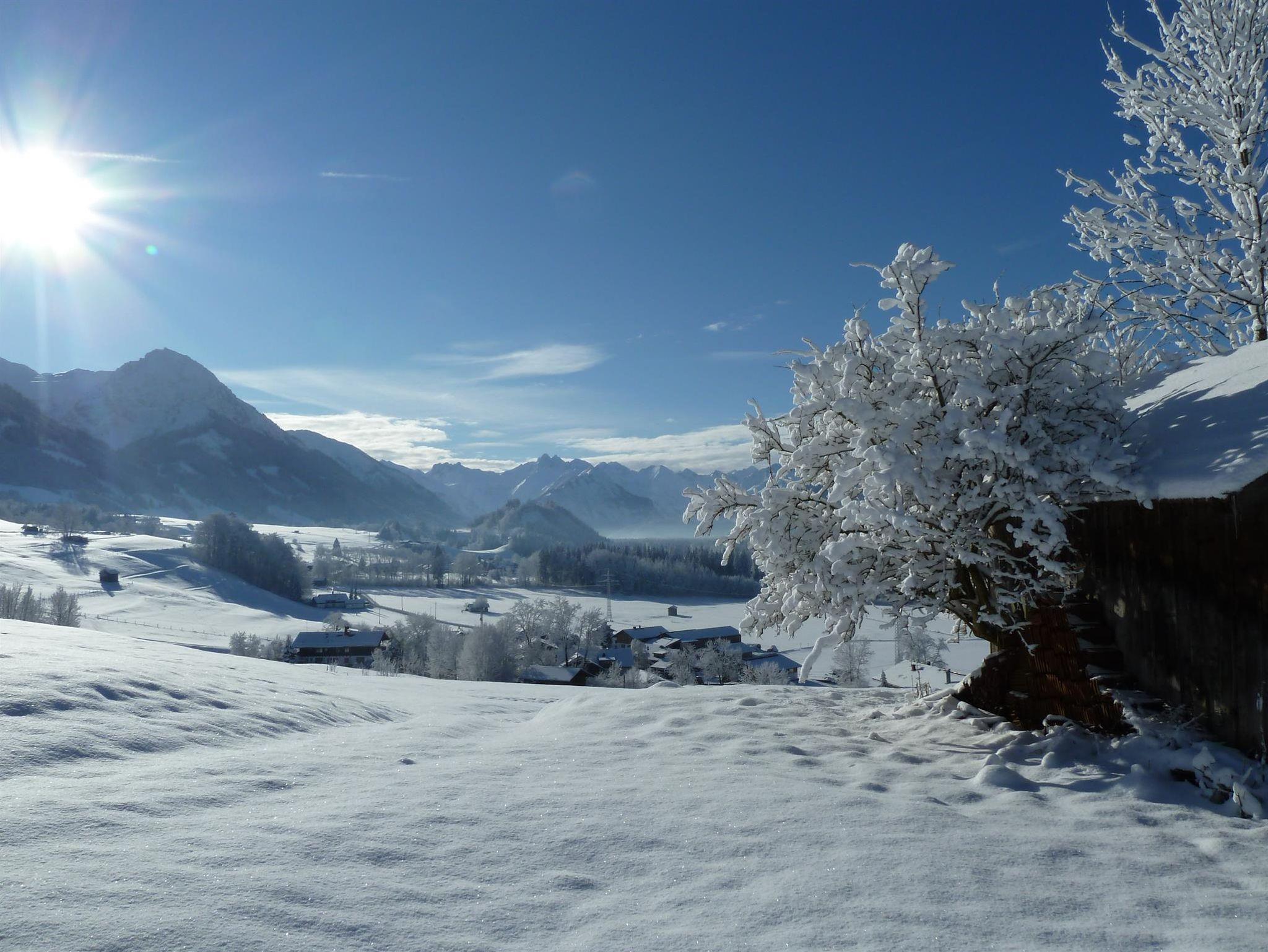 Unser Haus liegt im Fischinger Ortsteil Unterthalhofen in ruhiger, sonniger Lage mit herrlichem Blick auf die Allgäuer Berge.