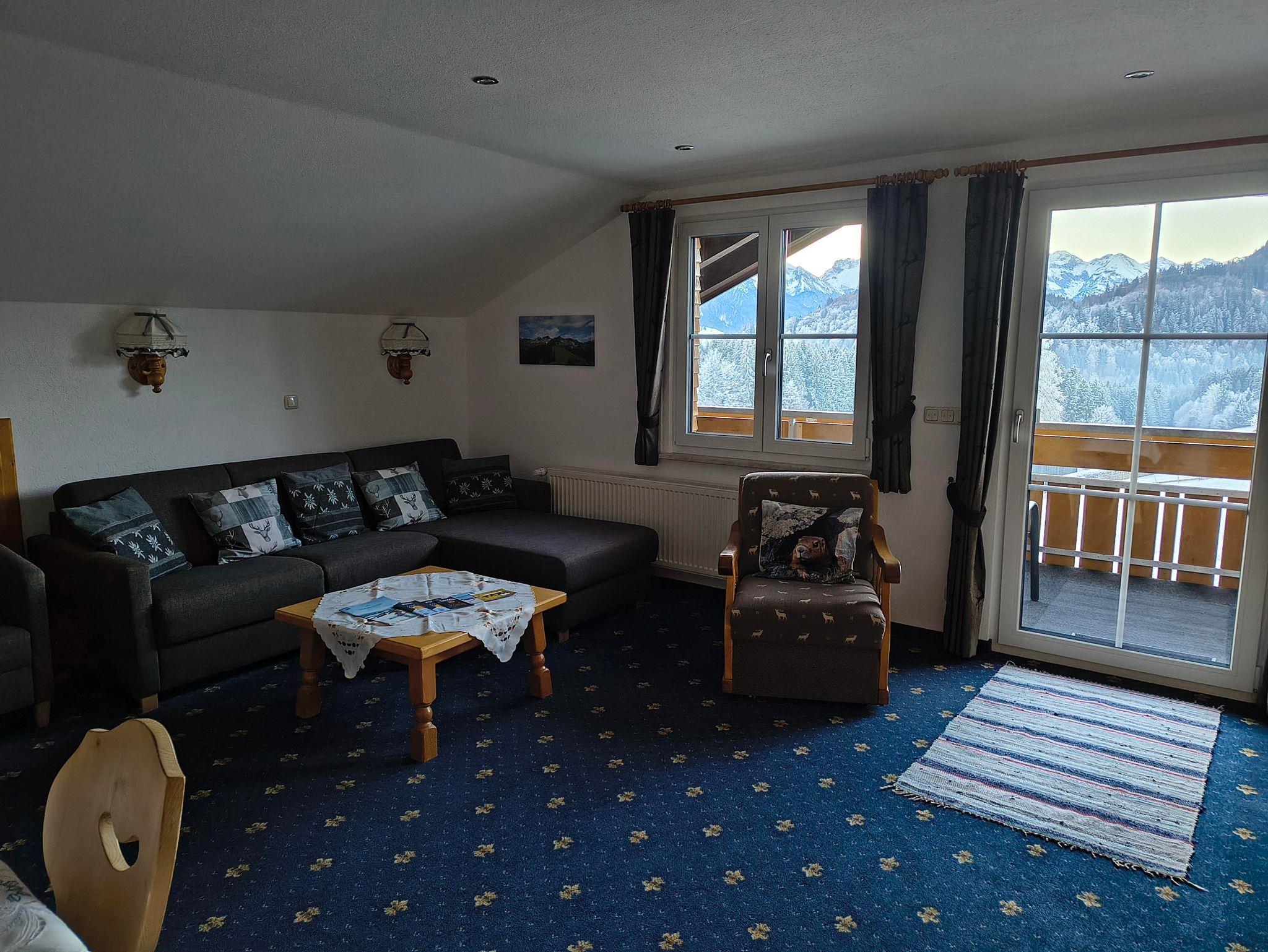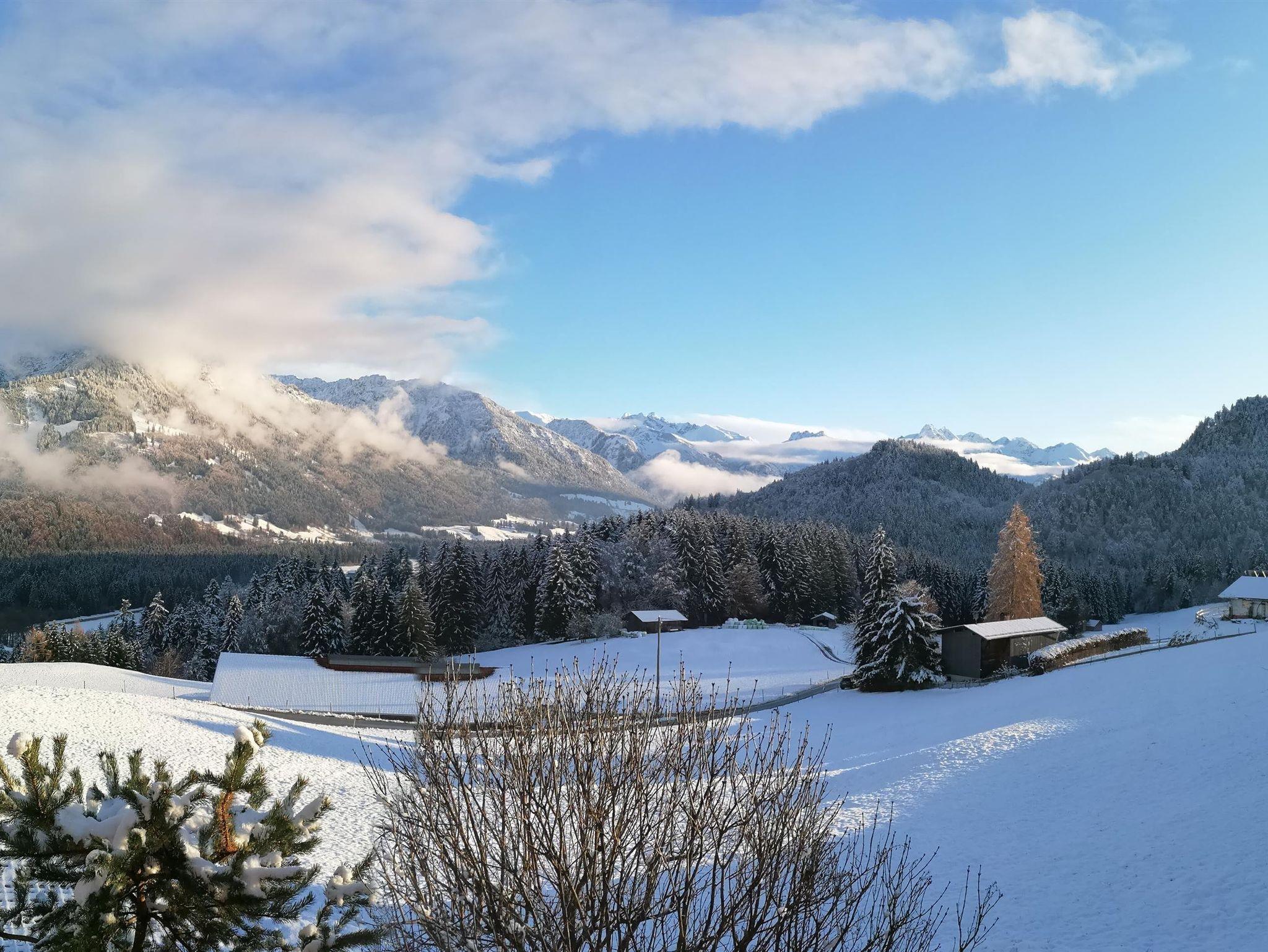 Unser Haus liegt auf fast 900m in freier, unverbauter und ruhiger Lage mit herrlicher Aussicht auf die Allgäuer Berge.
