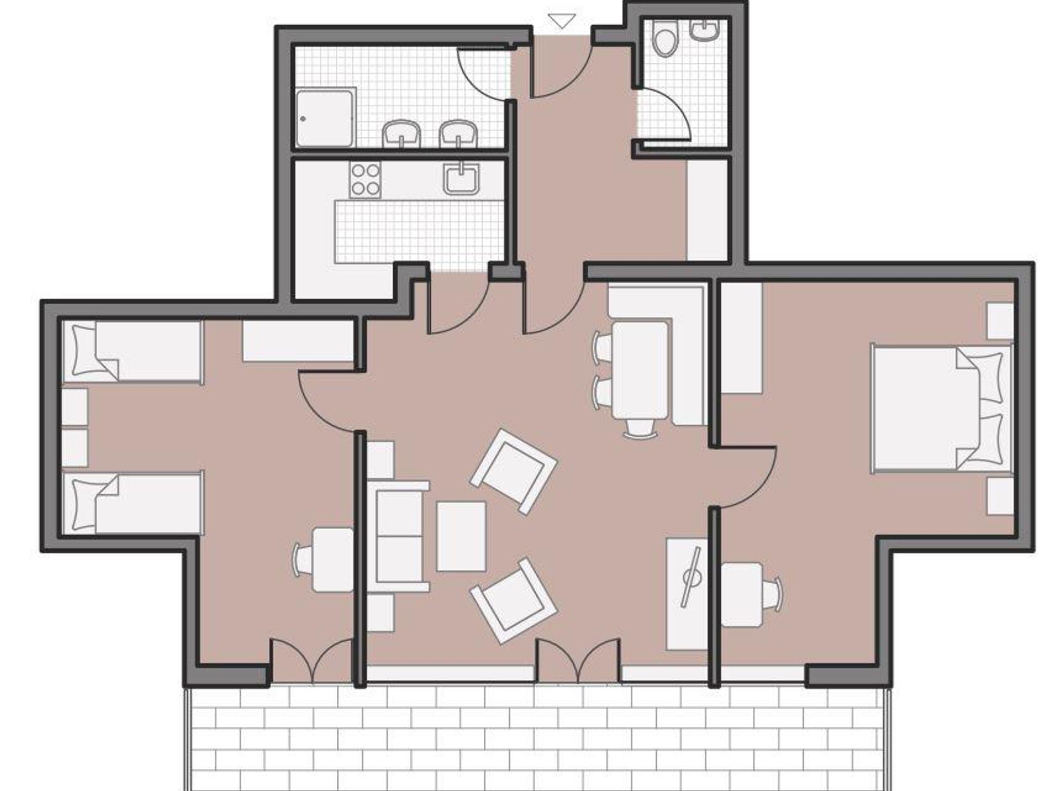 Große 3-Zimmerwohnung (88 qm) mit Wohnzimmer, zwei Doppelzimmer (offene Bettenden und eines mit getrennten Betten), separater Küche mit Spülmaschine und Mikrowelle, Dusche mit Doppelwaschbecken und separatem WC, Flachbild-TV, Radio und Südbalkon mit grandiosem Blick auf die Oberstdorfer Berge.