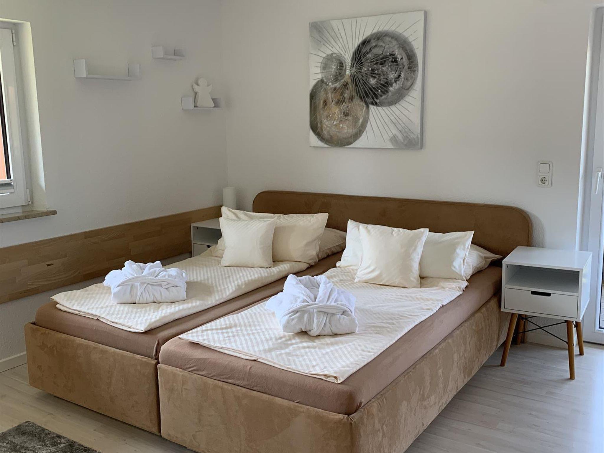 Unsere modern mit viel Ambiente ausgestattete 3-Sterne-Ferienwohnung im Dachgeschoss wurde im August 2011 fertig. Ideal für junge oder jung gebliebene Gäste. Großzügige Einraumwohnung mit Blick in die Berge. Im modernen Bett (200cmx200cm) wecken Sie die ersten Sonnenstrahlen. Gemütliche Sitzgelegenen, große Couch mit Ottomane mit Blick in die Berge. 2 Flat-Screen TV, Dusche, WC, Küche.
