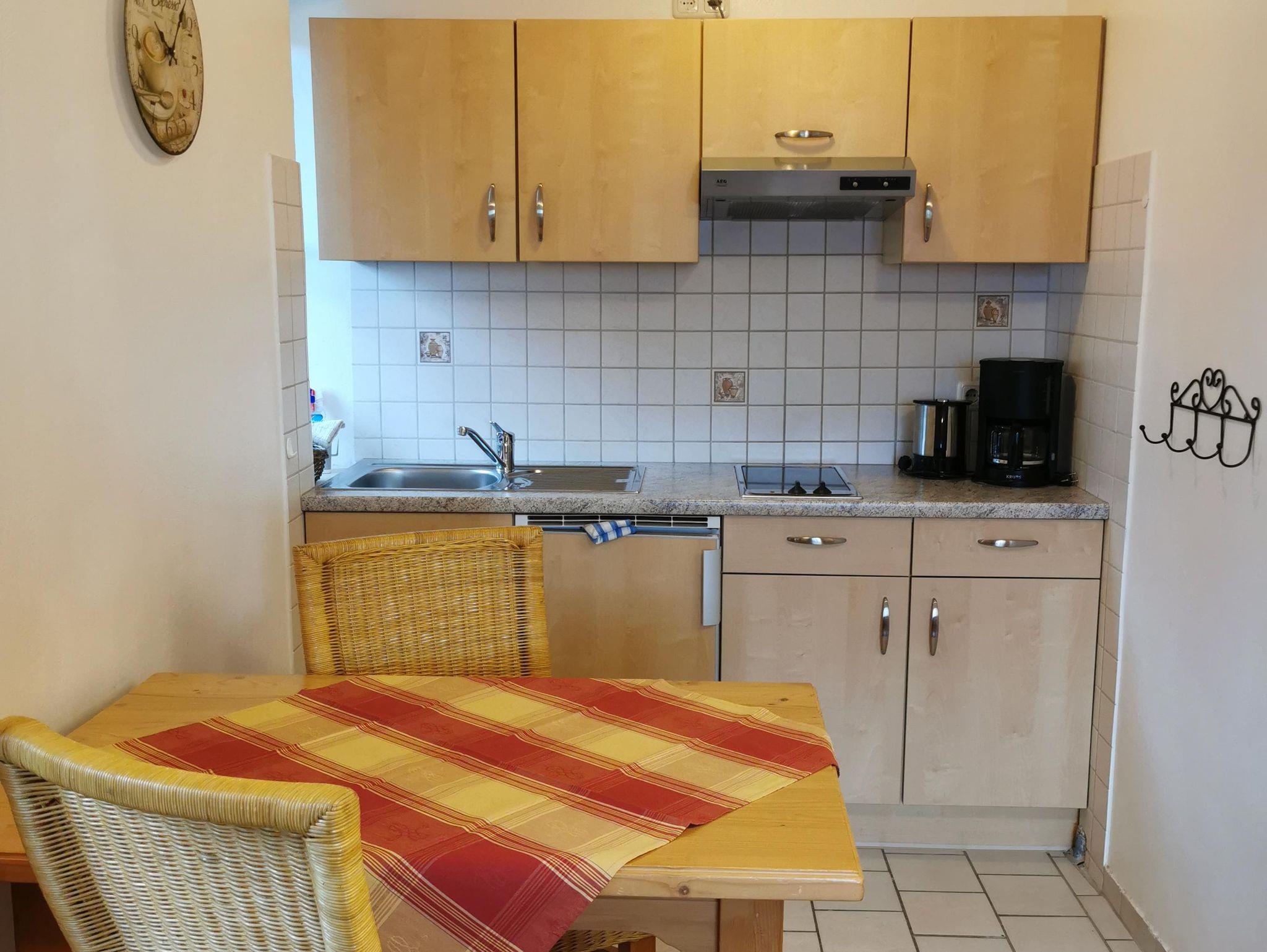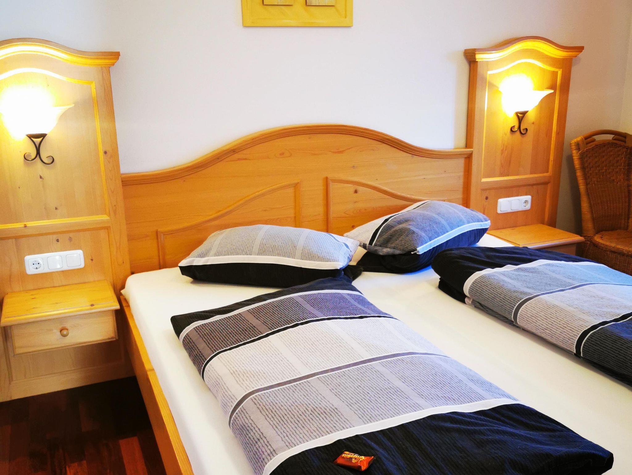 2 Raum Komfort-Wohnung mit Parkett, ca.35 qm im 1.Stock Ost-Balkon mit Bergblick. Kleine Diele mit Garderobe, Wohnraum mit gemütlicher Polstergarnitur und Essplatz im alpenländischen Flair. SAT-TV Flachbildschirm und CD-Radio Stereoanlage. Küche komplett eingerichtet mit Mikrowelle, Kaffeemaschine, Senseo Kaffeepadmaschine, Toaster, Eierkocher und Wasserkocher. Separates Schlafzimmer, Bad mit Dusche+WC.