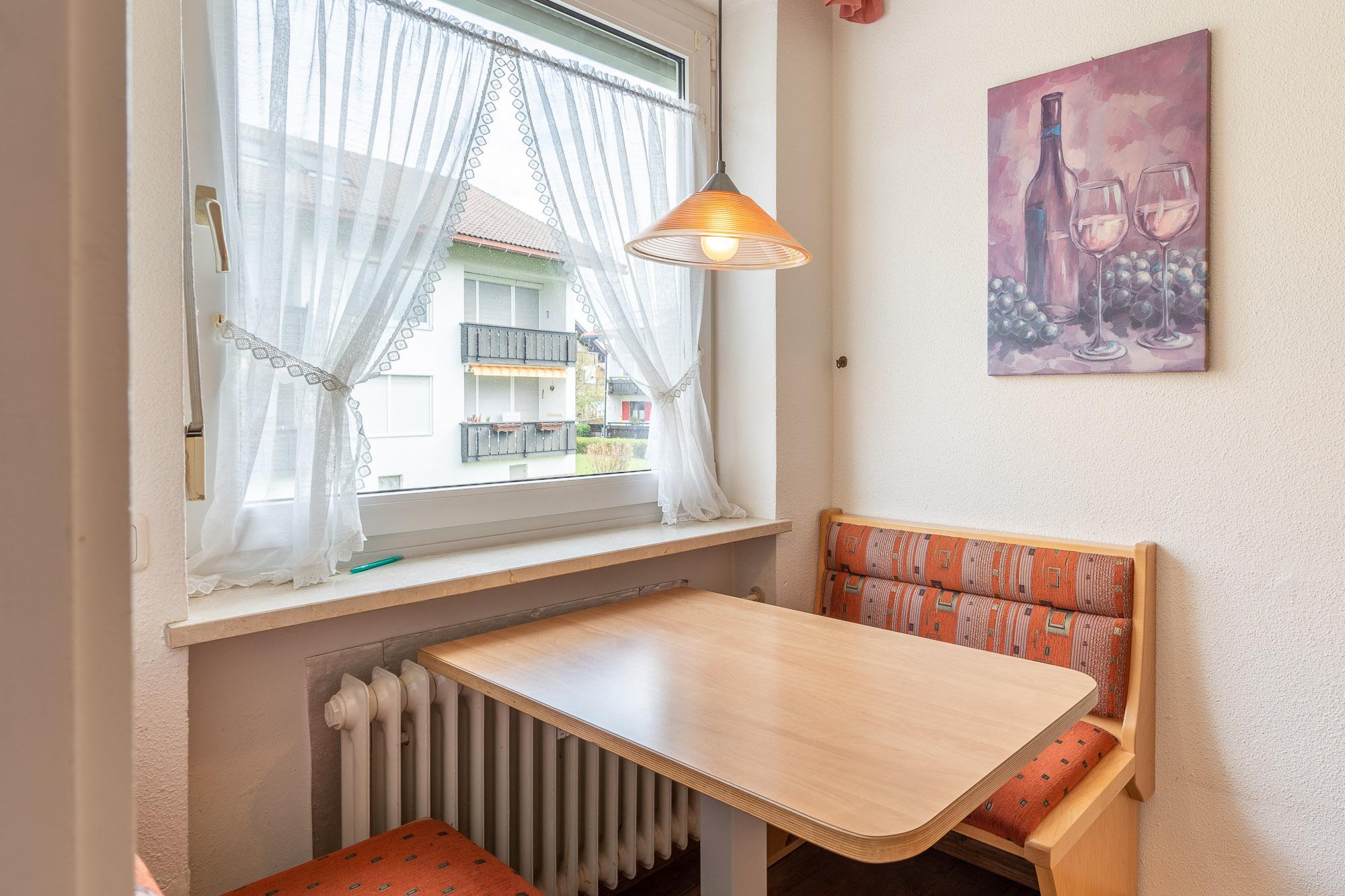 Die zwei Zimmer Wohnung befindet sich im Erdgeschoss ( Hochparterre) des Ferienhauses Grünten.