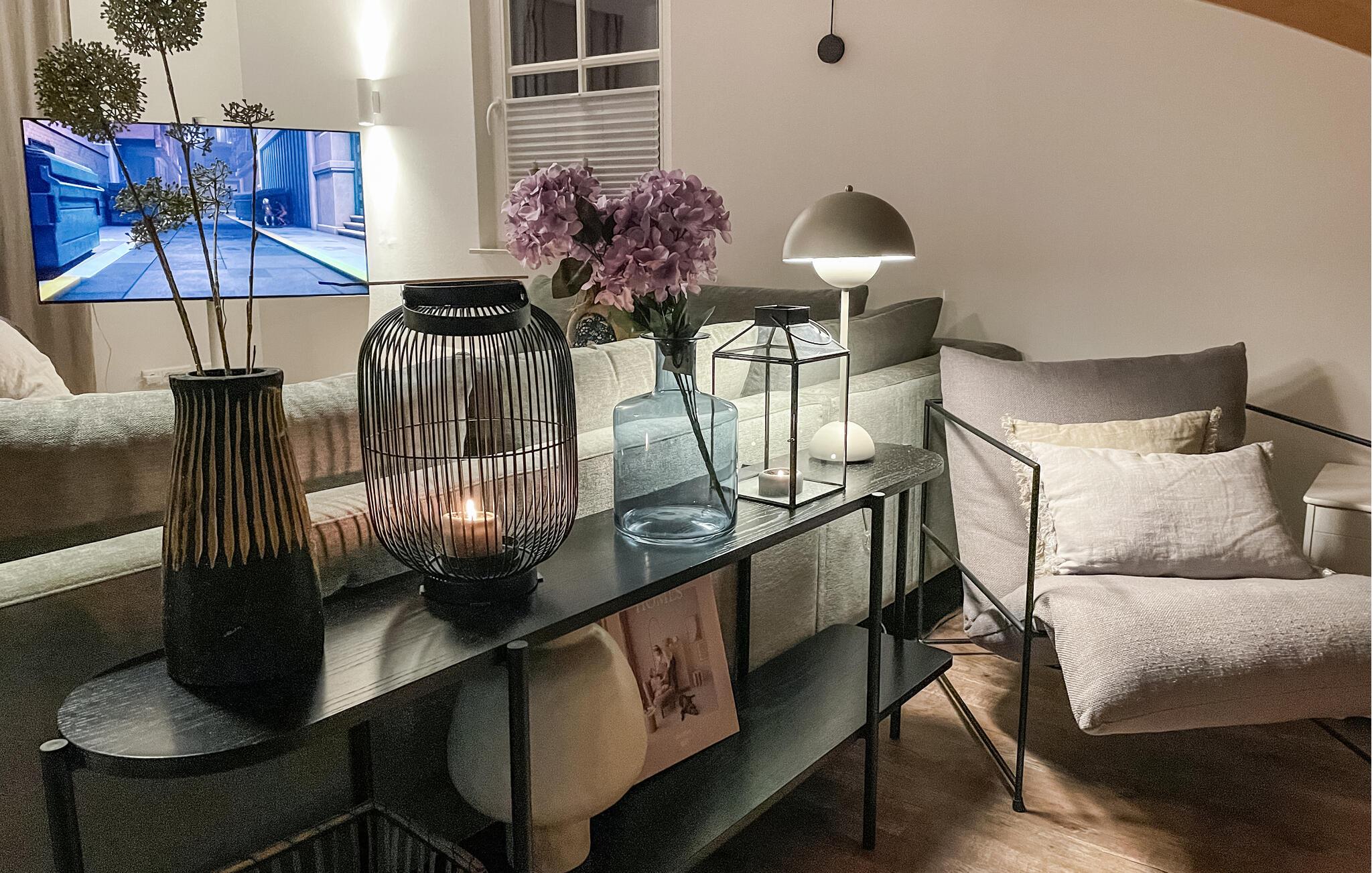 Feriehuset byder på høj komfort og en behagelig balance mellem moderne skandinavisk design og traditionel charme, som understreges af det smukke stråtag. Boligen ligger ud til store fyrretræer og gennemstrømmes af lys, så her får I gode rammer til at slappe af og glemme alt om den travle hverdag. Stråtaget bidrager til, at huset har et meget behageligt indeklima.