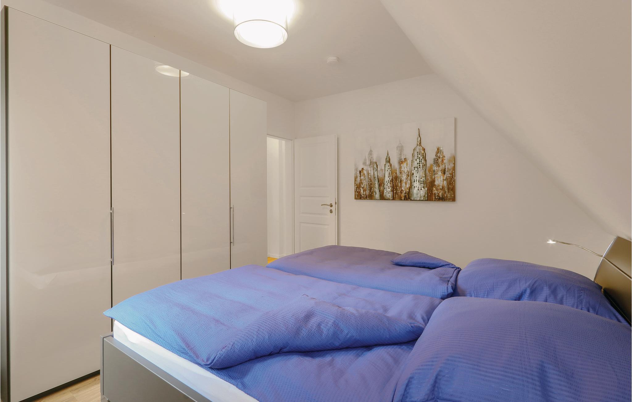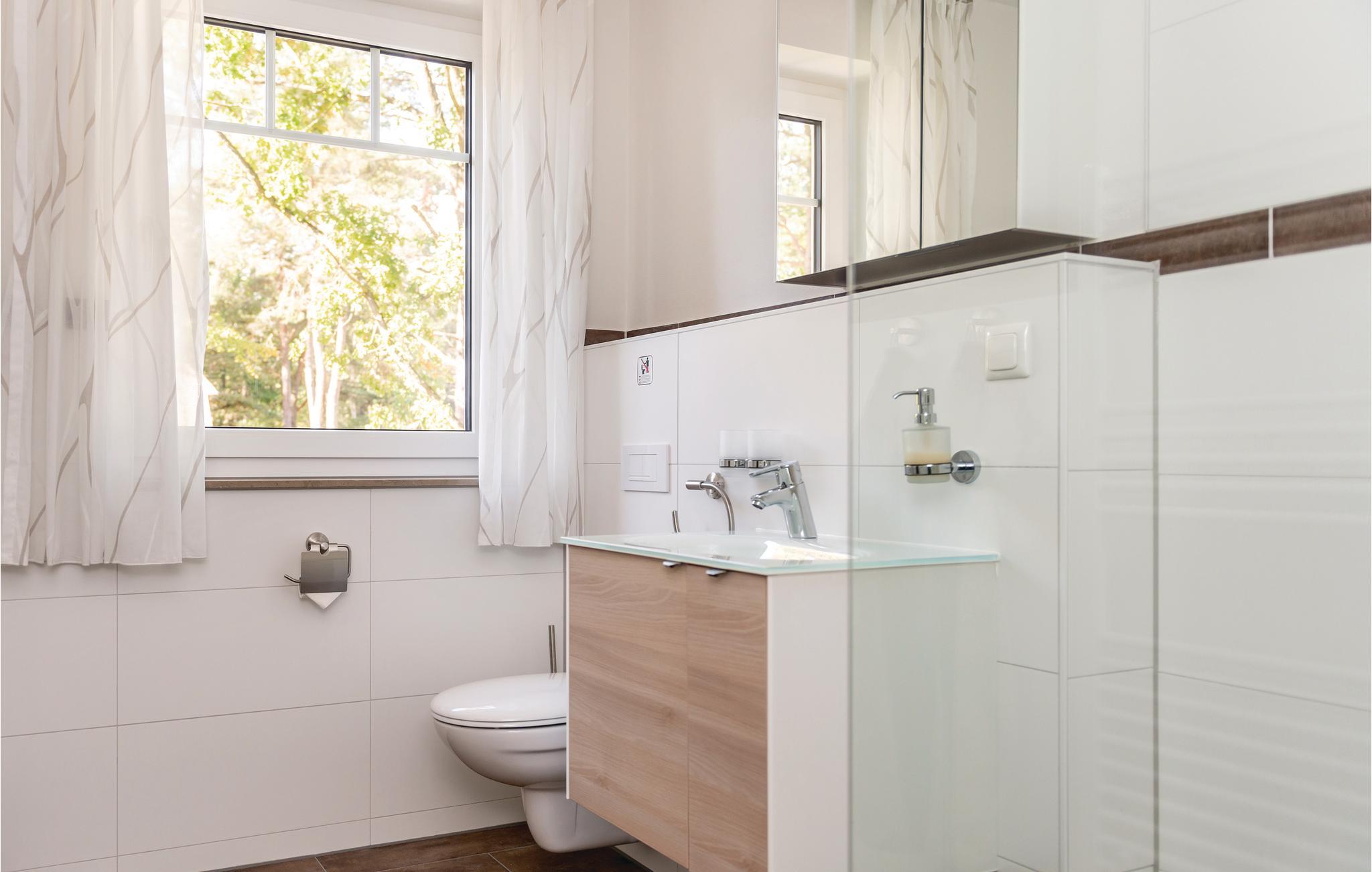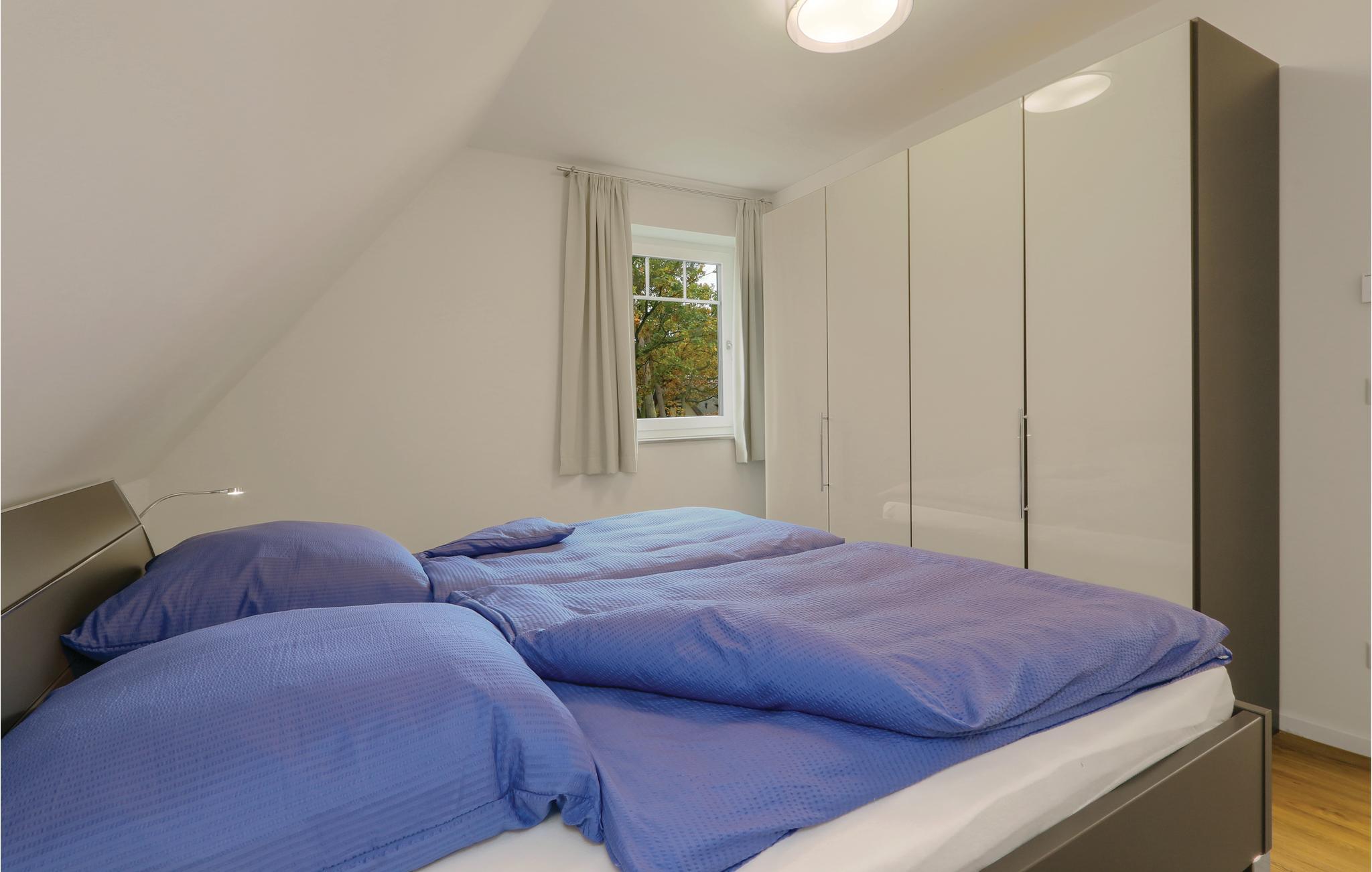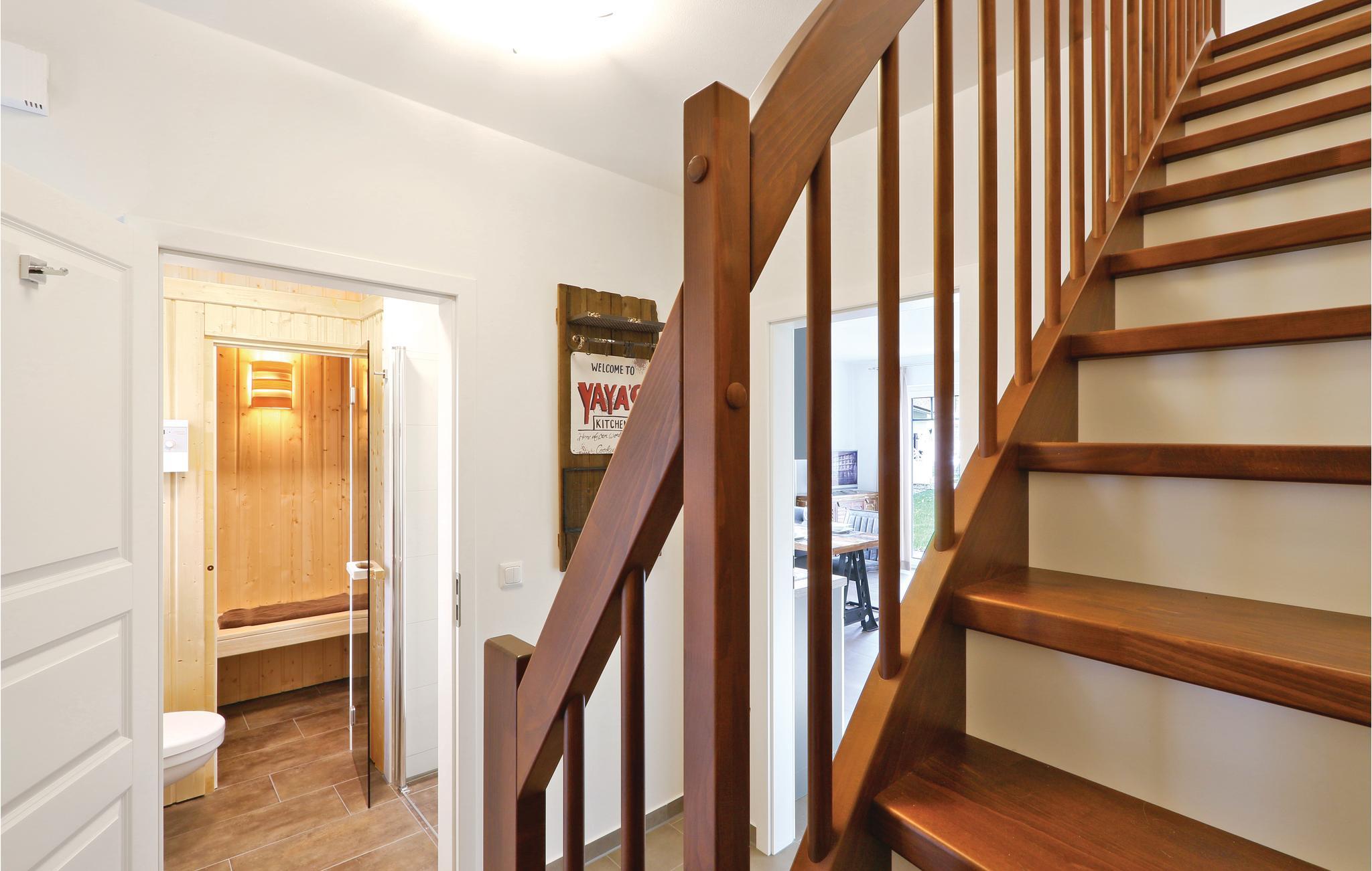 I dette halvdel af et dobbelthus af høj kvalitet bor I på to etager. Fra køkkenalrummet kommer I til terrassen, hvor der kan nydes de mange solskinstimer. Havemøbler står til rådighed. På de koldere dage kan I finde varmen og nydelse i saunaen. Takket være de to separate badeværelser kan I sagtens holde ferie her med to par og opretholde en vis form for privatsfære. Badekarret i det store badeværelse er yderligere udstyret med en regnvandsbruser.