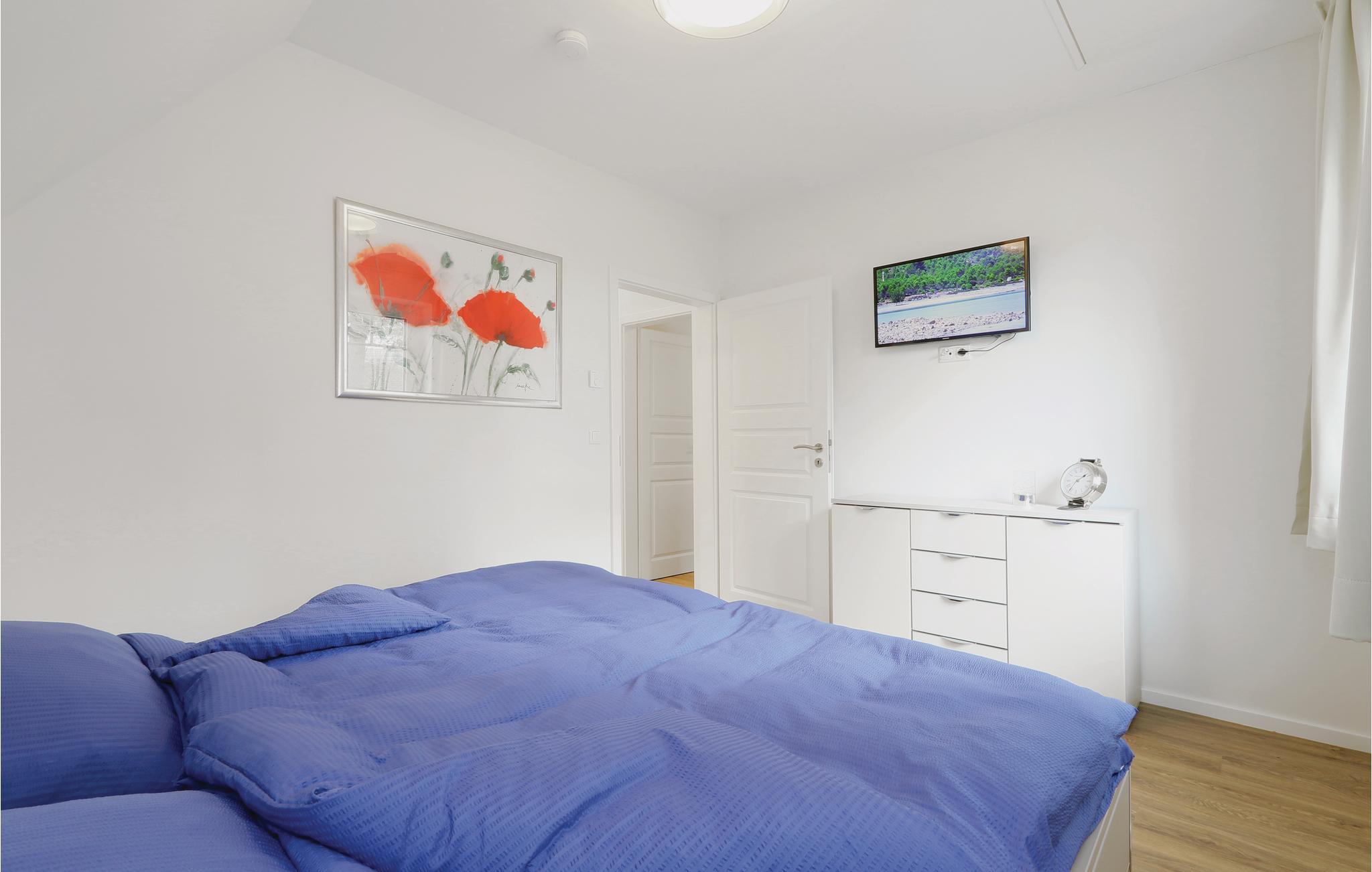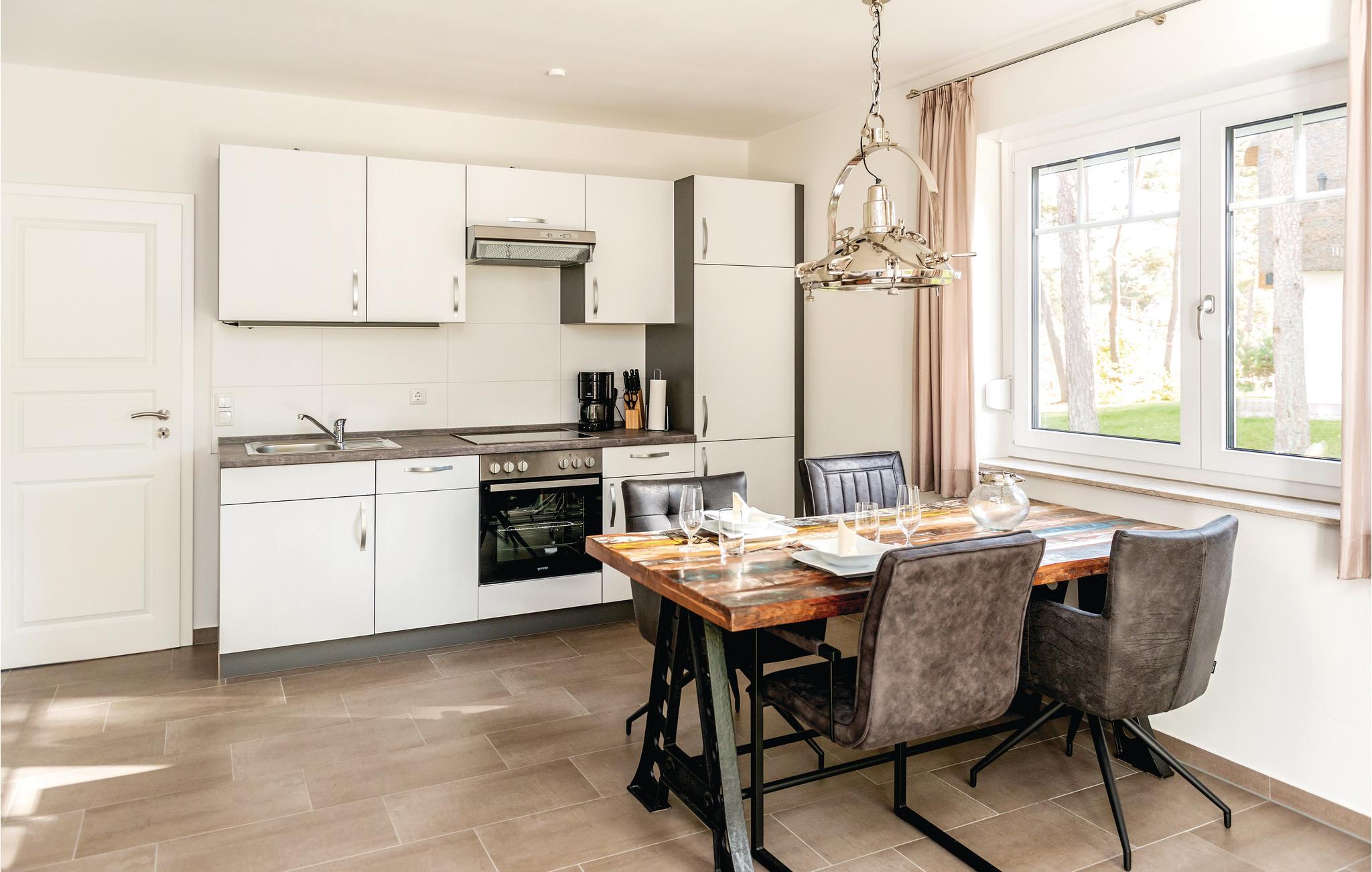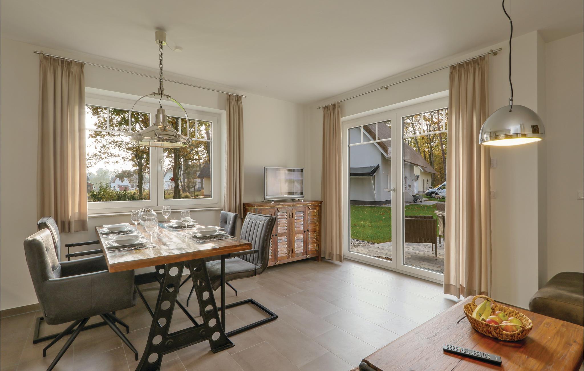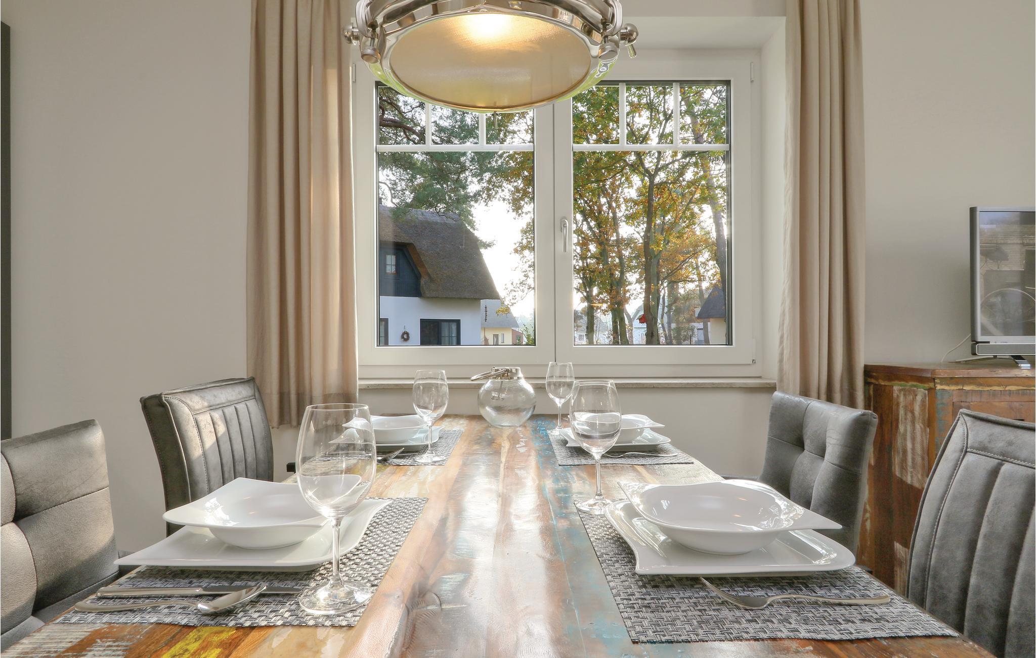 I dette halvdel af et dobbelthus af høj kvalitet bor I på to etager. Fra køkkenalrummet kommer I til terrassen, hvor der kan nydes de mange solskinstimer. Havemøbler står til rådighed. På de koldere dage kan I finde varmen og nydelse i saunaen. Takket være de to separate badeværelser kan I sagtens holde ferie her med to par og opretholde en vis form for privatsfære. Badekarret i det store badeværelse er yderligere udstyret med en regnvandsbruser.