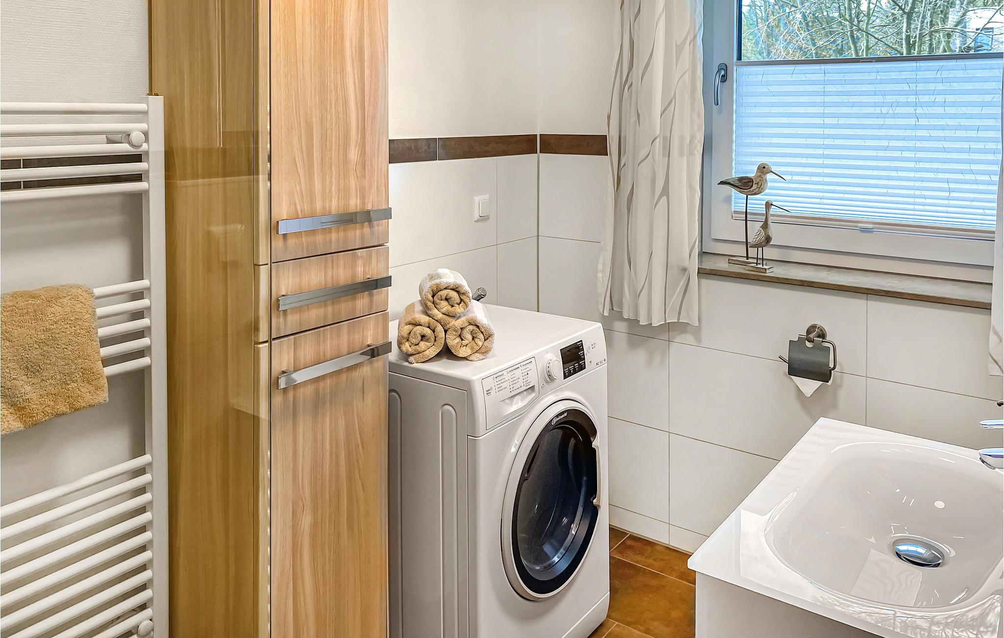 Vaskemaskine, tørretumbler, strygejern og vasketøjskurv er tilgængelige.