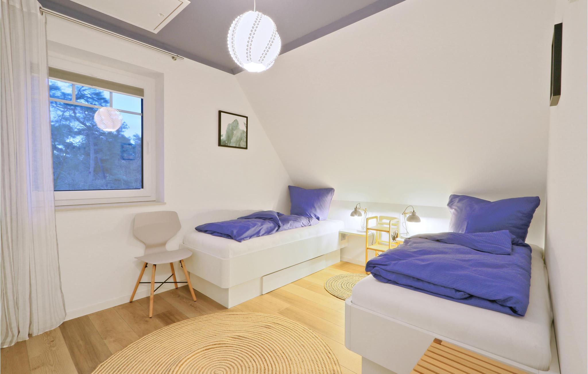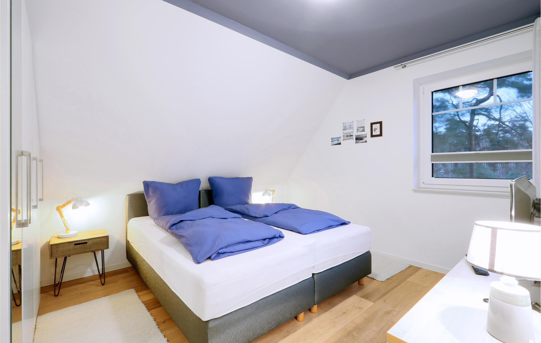 Begge soveværelser har dobbeltseng. Sengene i soveværelse nr 2 kan trækkes fra hinanden. Desuden er der to sovepladser i sovesofaen i opholdsstuen.