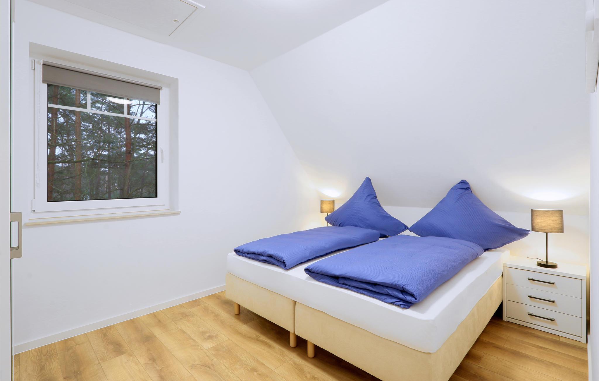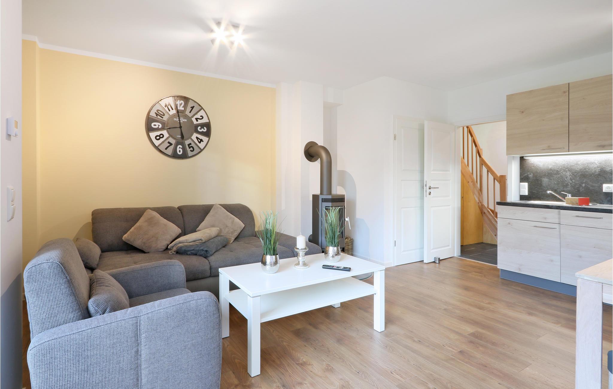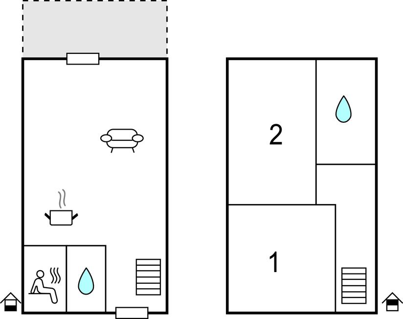Det veludstyrede halve dobbelthus er fordelt over to etager med en moderne og venlig indretning. Fra det kombinerede stue-/køkkenområde går I ud på terrassen, hvor I kan nyde de mange solrige timer under ferien. En grill til dejlige grillaftener står til jeres rådighed. På kølige dage kan I gøre brug af saunaen og få varmen eller sætte jer foran brændeovnen. I det ene af de to soveværelser findes en dobbeltseng, i det andet findes to enkeltsenge.