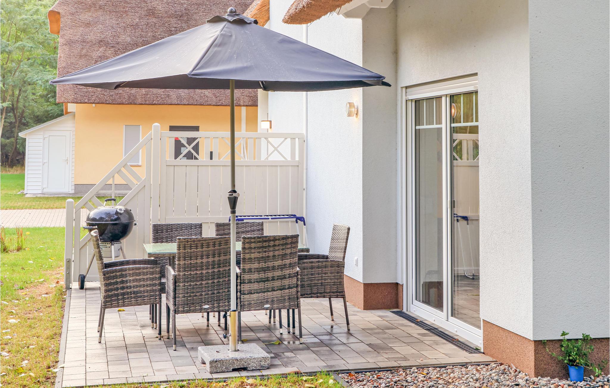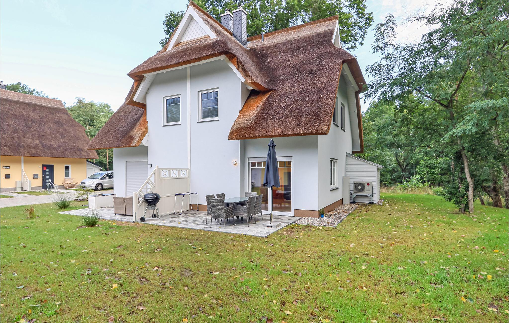 På solskinsøen Usedom ligger Zirchow, en lille, idyllisk havneby, hvor disse stråtækte feriehuse står. Ferieparken ved Stettiner byder på gode huse til hele familien.