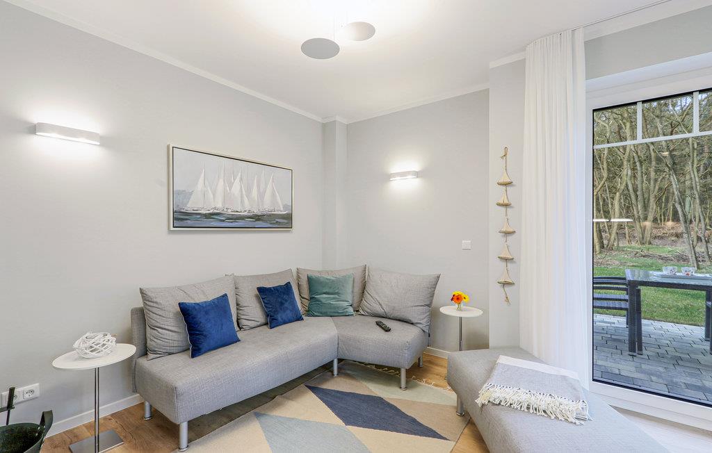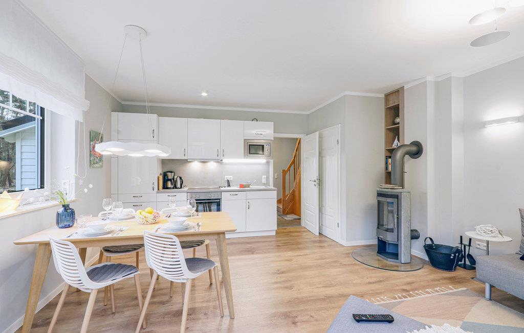 Denne godt indrettede halvdel af et dobbelthus strækker sig over to etager og er moderne og indbydende indrettet. Fra den kombinerede stue- og spisestue er der udgang til en terrasse, hvor I kan nyde Usedoms mange solskinstimer.