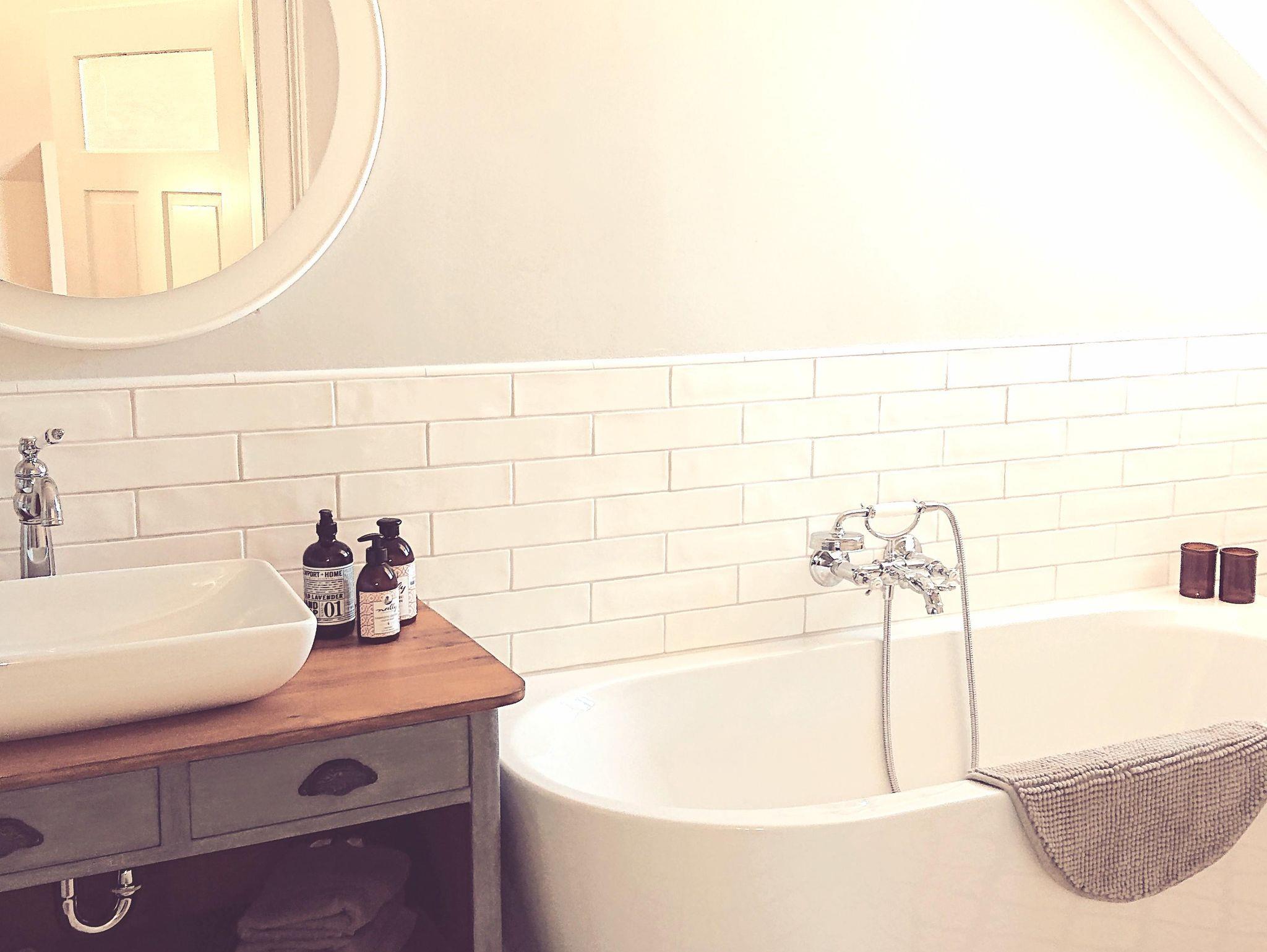 Das Bad besitzt ein WC, eine Dusche und eine Badewanne.