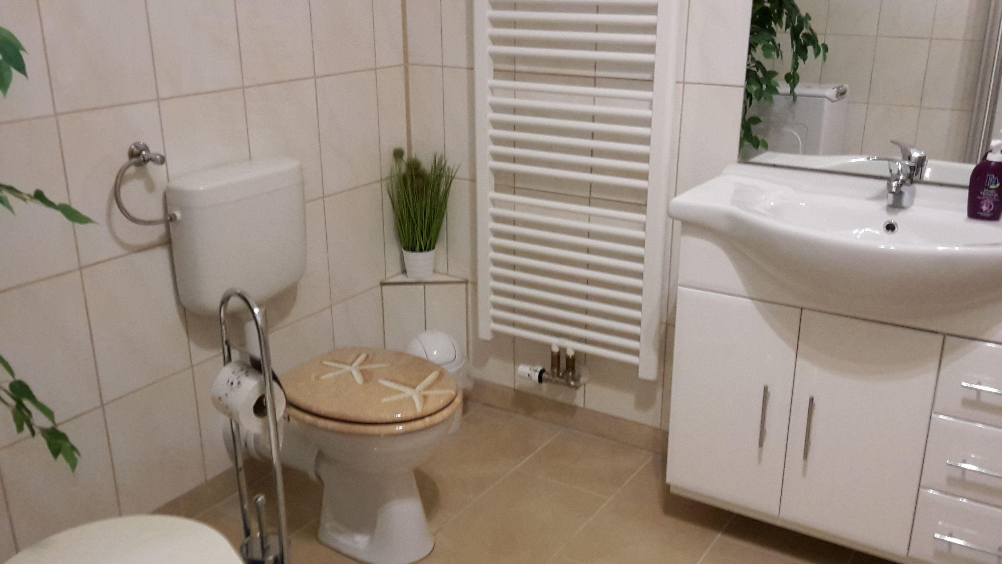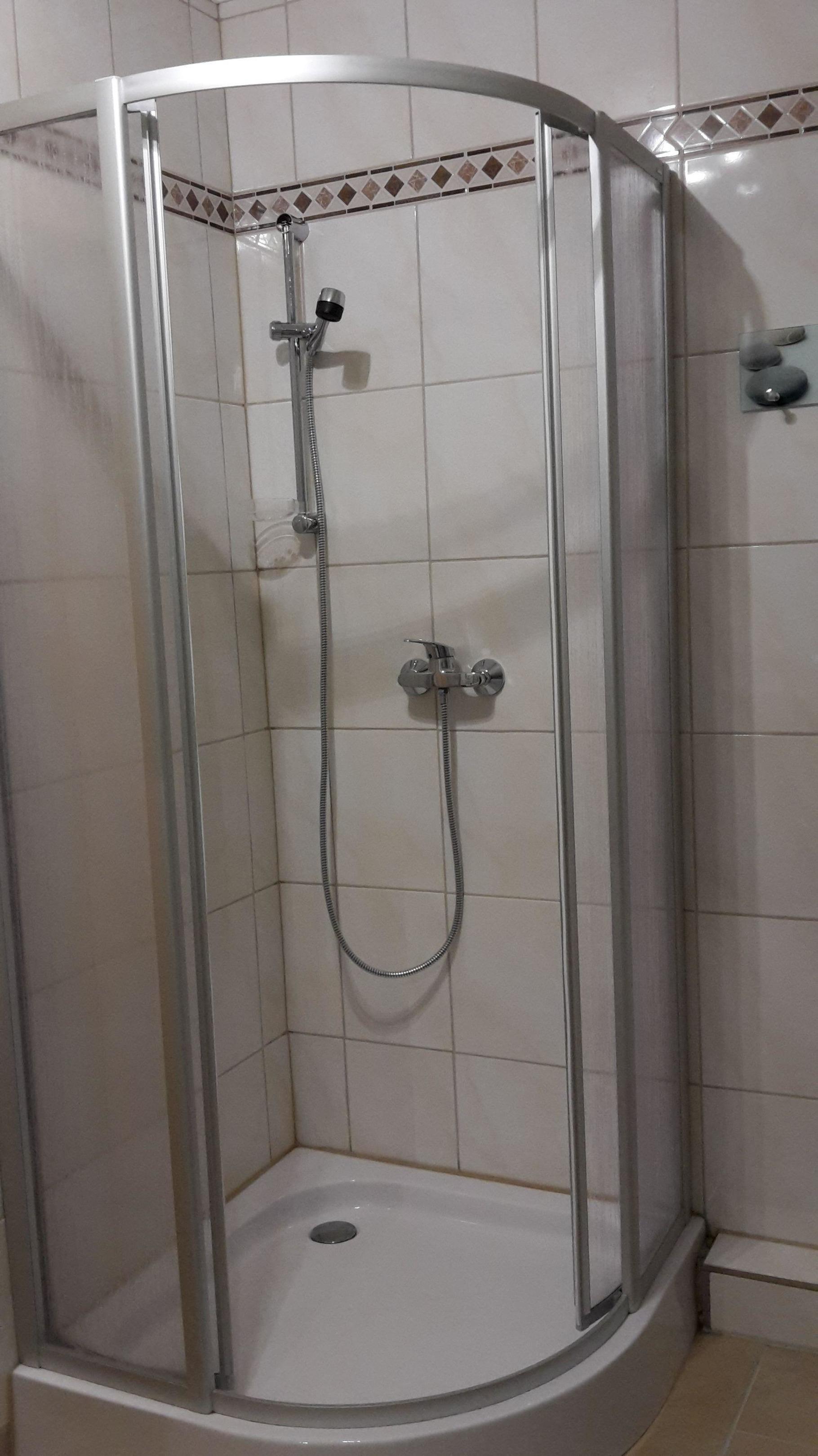 Das Bad verfügt über eine Dusche.
