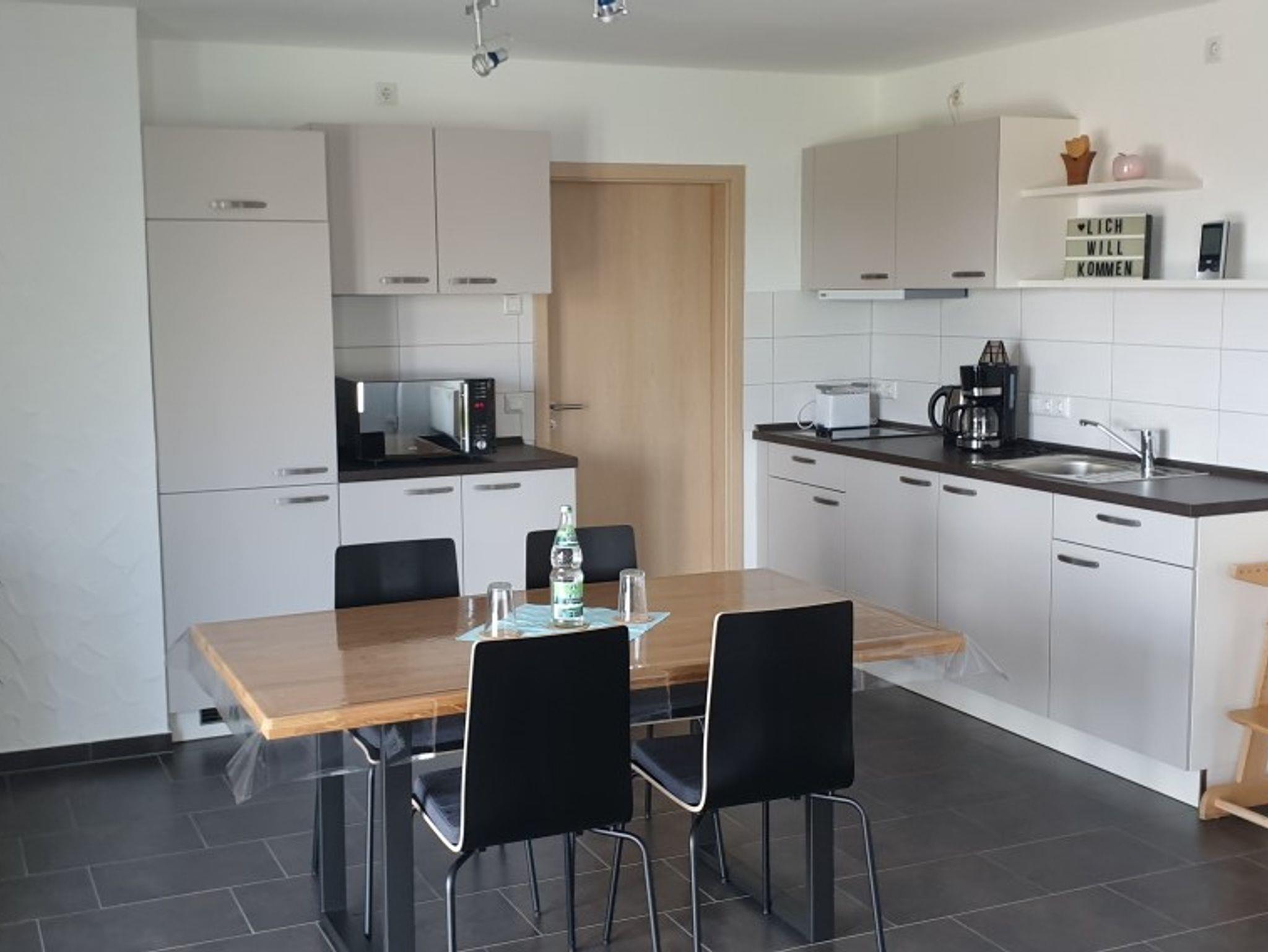 Die Ferienwohnung wurde XXXXXX ausgebaut und neu eingerichtet. Von der Wohnung aus genießen Sie den idyllischen Blick über das Streutal. Die modern ausgestattete Ferienwohnung ,,Rhönstyle“ (60m²) verfügt über ein geräumiges Doppelzimmer, einen gemütlichen, großen Wohn- und Essbereich mit einer Couch inklusive Schlaffunktion für einen Jugendlichen ab 14 Jahre, Erwachsenen oder 1 Kind (bis einschl. 13 Jahre). Eine großzügige Terrasse ca. 50m², ein großes modernes Bad mit Dusche, Badewanne und WC sowie die neu eingerichtete Küche bieten Ihnen eine komfortable Möglichkeit für ihren Urlaub.