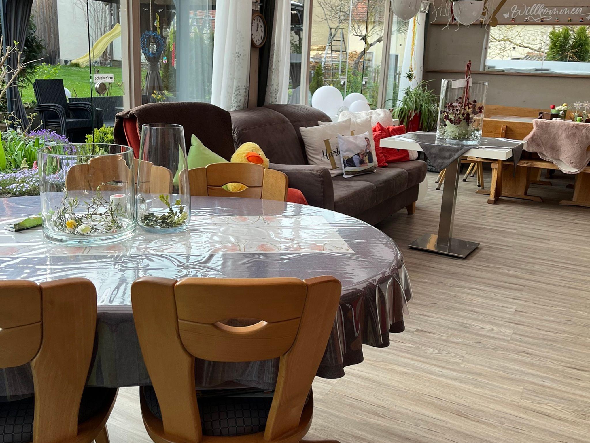 Mitten im Herzen Deutschlands liegt Fladungen, die nördlichste Stadt Bayerns. Hier finden Sie in ruhiger Ortsrandlage unser Haus. In dieser zauberhaften Umgebung warten eine Ferienwohnung und mehrere Zimmer auf Sie, alle sind behaglich groß und mit viel Liebe eingerichtet.? Lassen Sie den Alltag hinter sich und tauchen ein in die vielfältigen Möglichkeiten in der bayerischen Rhön. Von unserer Pension erreichen Sie in wenigen Gehminuten den Stadtkern von Fladungen. Mit Komfort und Ambiente sorgen wir dafür, dass Ihr Aufenthalt bei uns ab der ersten Minute erholsam und zu einer bleibenden schönen Erinnerung wird. In der Nachbarschaft finden Sie ein Freibad und eine Tennisanlage. Unser Haus hat das ganze Jahr für Sie geöffnet! Sie werden eine einmalige, ursprüngliche, herbe Kulturlandschaft kennen lernen, die Sie nirgendwo in Deutschland finden! Hier gibt es tolle Ausflugsziele rund um das Gästehaus Jutta, z. B. das Freilandmuseum mit Rhön-Zügle, in kürze das Rhönmuseum, die Wasserkuppe, den Kreuzberg, Hochmoore, bunte Blumenwiesen, tiefgrüne Matten, im Winter mit Eis und Schnee bedeckt zum Rodeln und Skilaufen und viel gesunde Luft, einfach zum Durchatmen.? Unser gemütlicher Frühstücks- und Aufenthaltsraum. Ihr Tag beginnt mit einem abwechslungsreichen Frühstücksangebot mit Hofeigenen Produkten (hausgemachten Wurstspezialitäten, selbstgebackenem Brot und Kuchen, sowie selbst hergestellte Fruchtaufstrichen und vieles mehr). Frühstücks- und Aufenthaltsraum mit Speisemöglichkeit. Die Sauna bleibt bis auf weiteres geschlossen